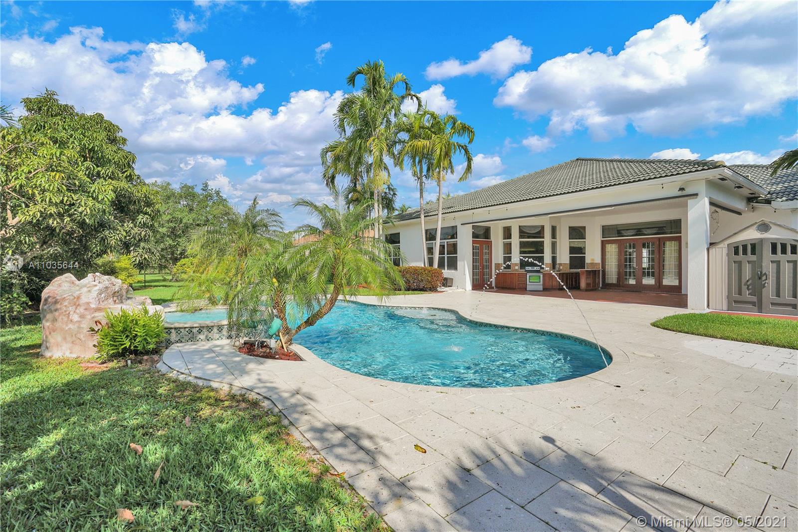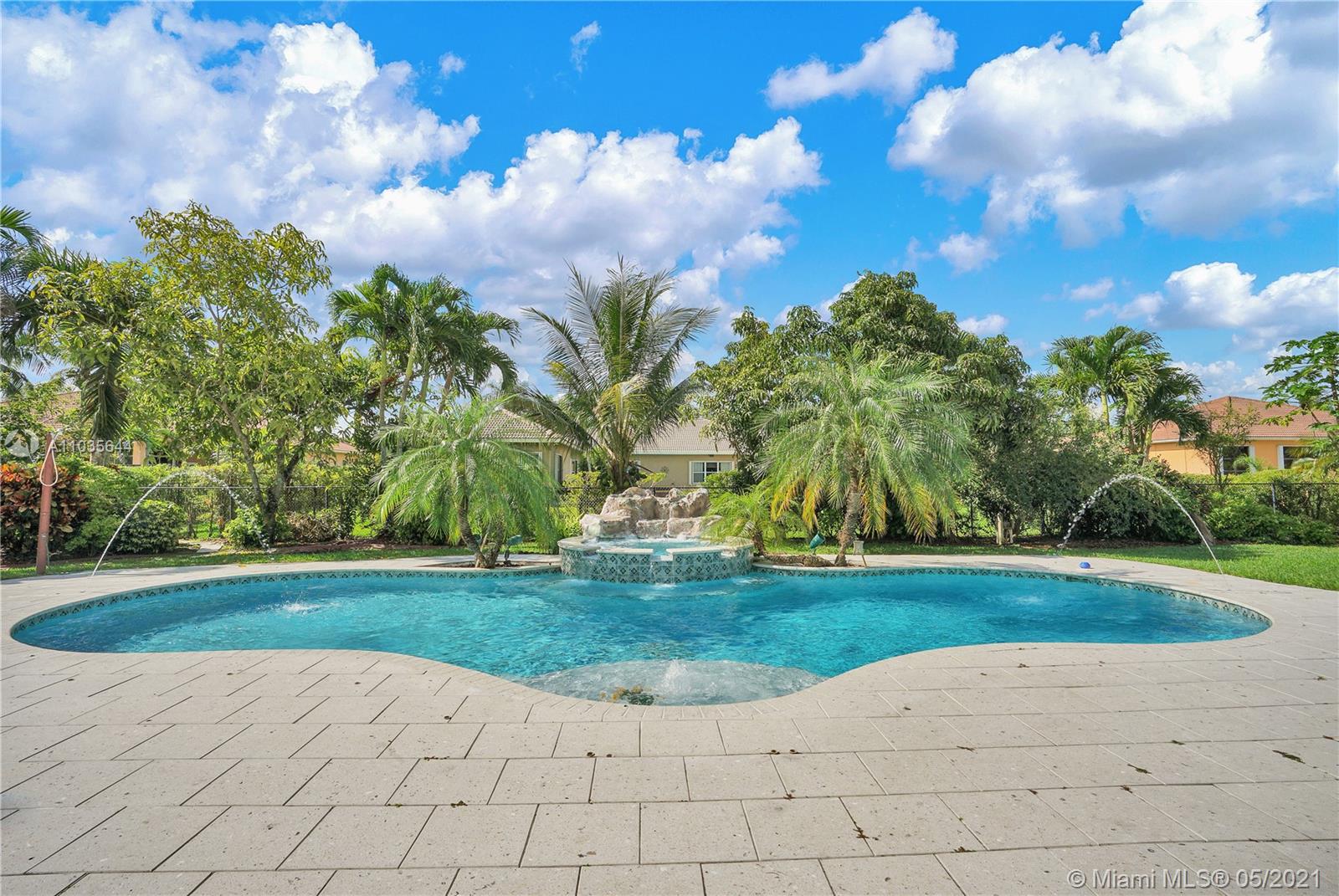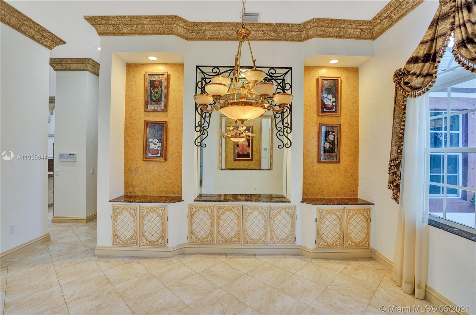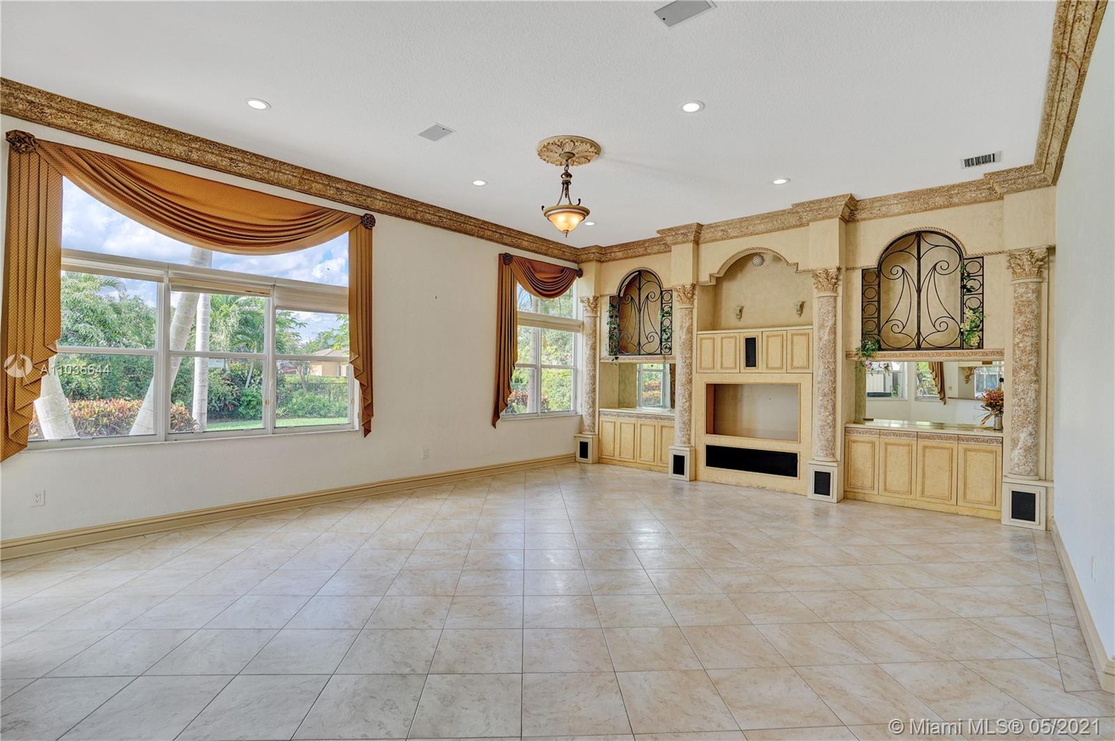 EXQUISITE ARCHITECTURAL DETAILS ABOUND IN THIS STUNNING 5/5 Plus Den. Imported Crown Molding and interior decoration, very New 3 ACs, New WIFI enabled Garage door, Outside Cameras, Pool with SPA, water fall, bubblers & water jets. Newly Painted Grant foyer Entry, Granite Built-Ins Formal Dining Room, Extraordinary custom Wall to Wall Entertainment Center, Large Granite Wet Bar, Wine Rack, Beautiful Kitchen with Double Oven, Preparation Island, Walk-In Shelved Pantry. Custom Built-in Office Room with Granite. Master Suite Features Sitting Area, Tray Ceiling, Spa-Like Master Bath, Newly Painted inside & Outside. Master bedroom has wood accent walls. Outside Large Kitchen with Marine wood. Award Winning Landscape. Walk-way all around the house. Tropical Fruit Trees all around the house.