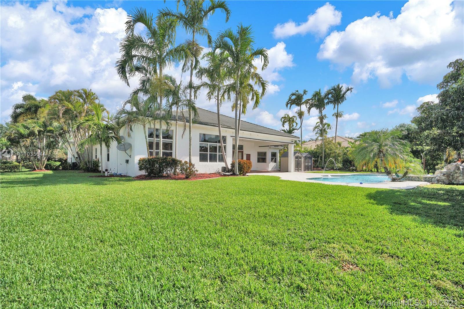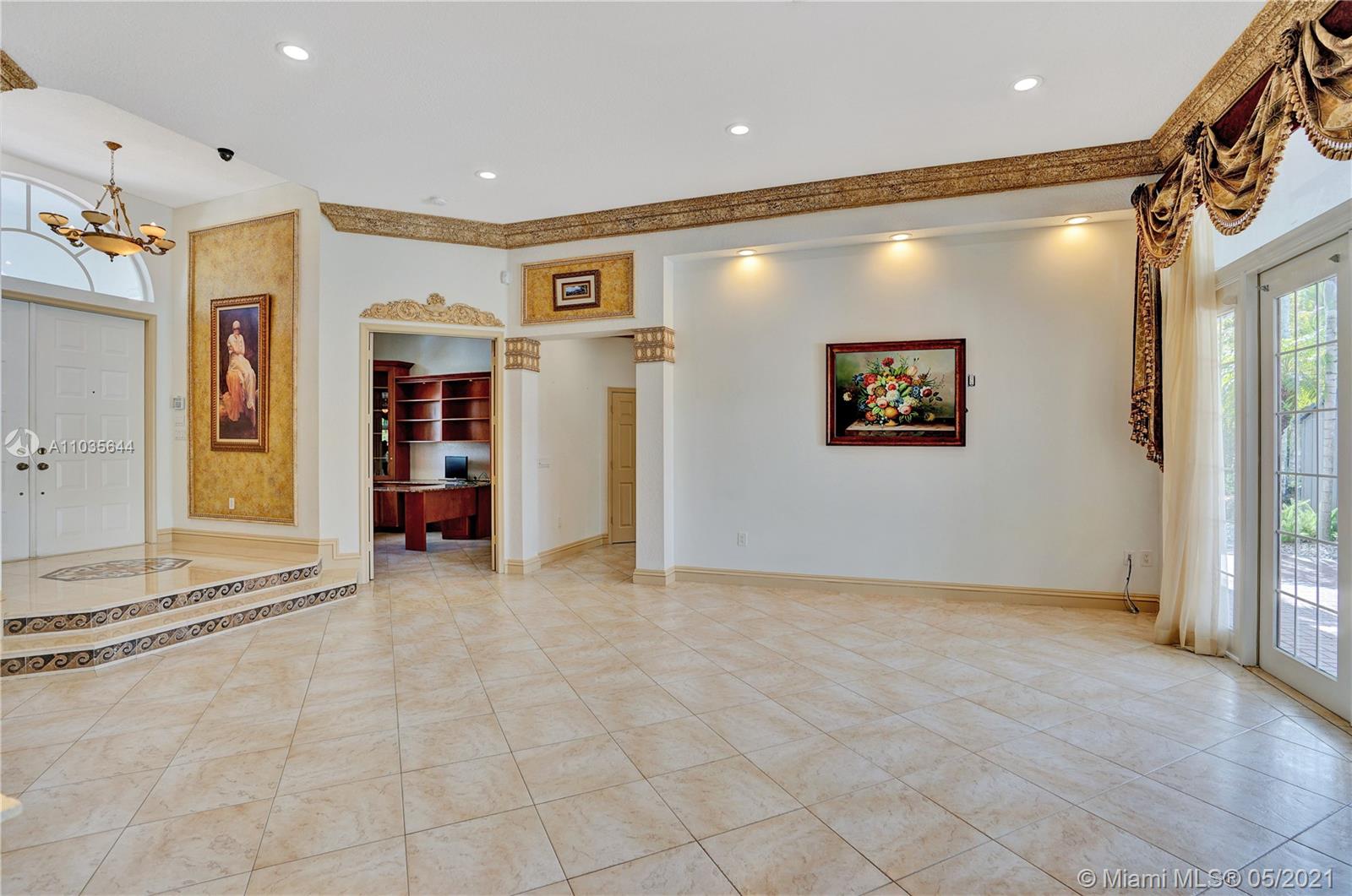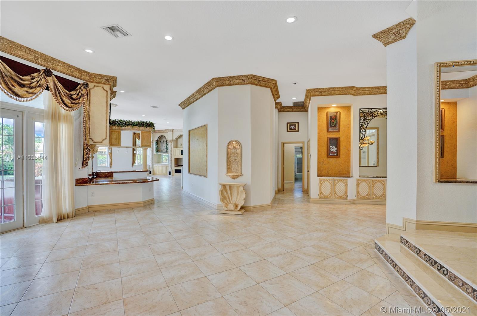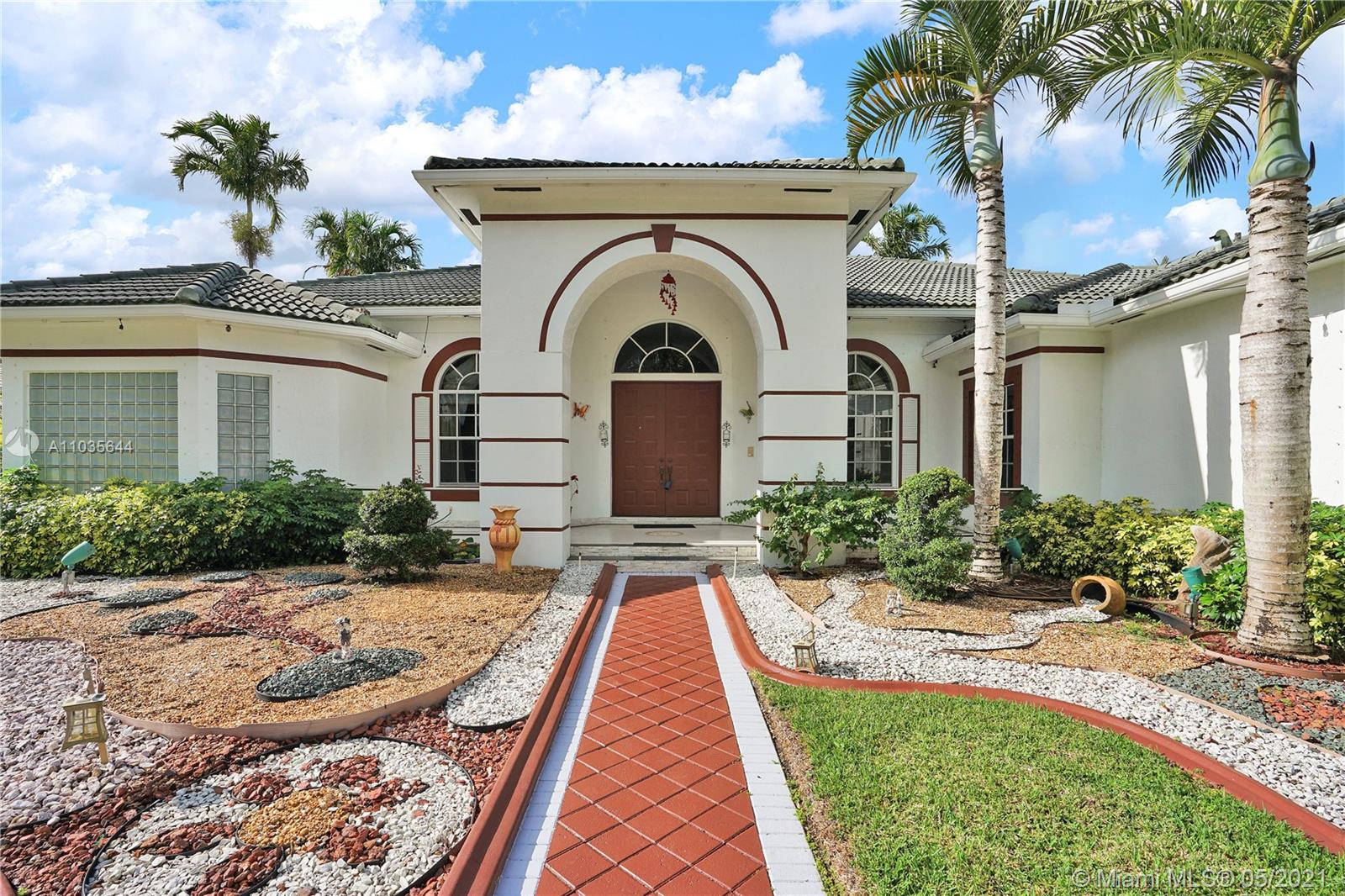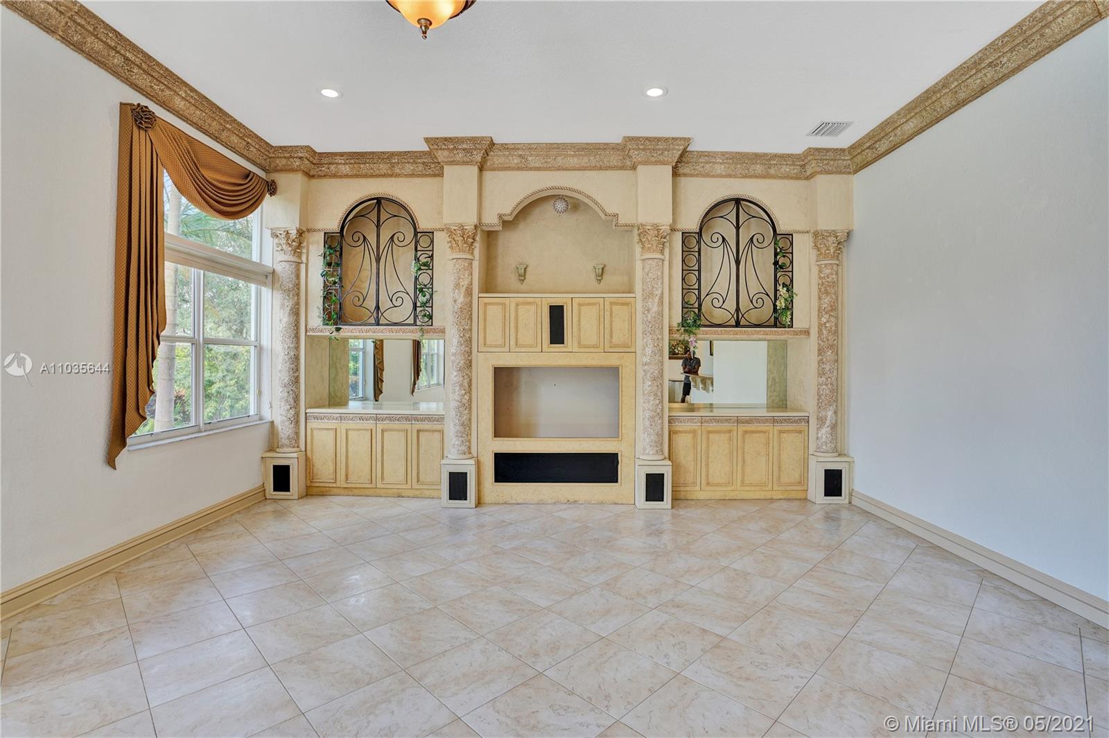 EXQUISITE ARCHITECTURAL DETAILS ABOUND IN THIS STUNNING 5/5 Plus Den. Imported Crown Molding and interior decoration, very New 3 ACs, New WIFI enabled Garage door, Outside Cameras, Pool with SPA, water fall, bubblers & water jets. Newly Painted Grant foyer Entry, Granite Built-Ins Formal Dining Room, Extraordinary custom Wall to Wall Entertainment Center, Large Granite Wet Bar, Wine Rack, Beautiful Kitchen with Double Oven, Preparation Island, Walk-In Shelved Pantry. Custom Built-in Office Room with Granite. Master Suite Features Sitting Area, Tray Ceiling, Spa-Like Master Bath, Newly Painted inside & Outside. Master bedroom has wood accent walls. Outside Large Kitchen with Marine wood. Award Winning Landscape. Walk-way all around the house. Tropical Fruit Trees all around the house.