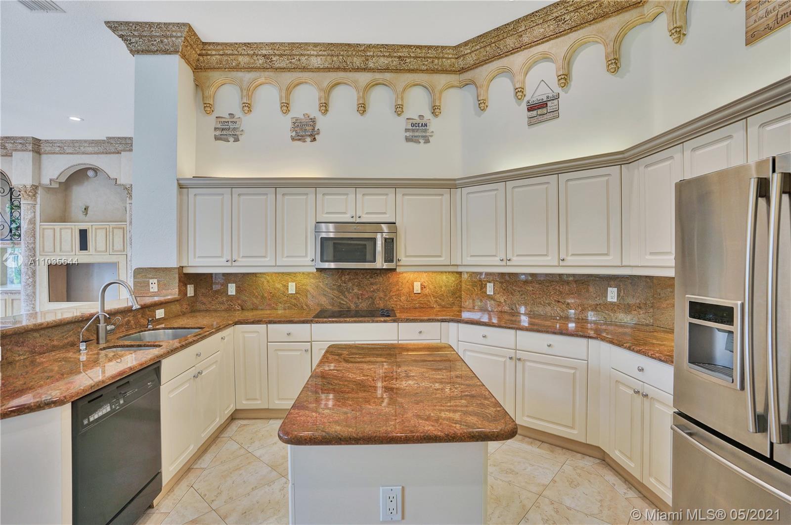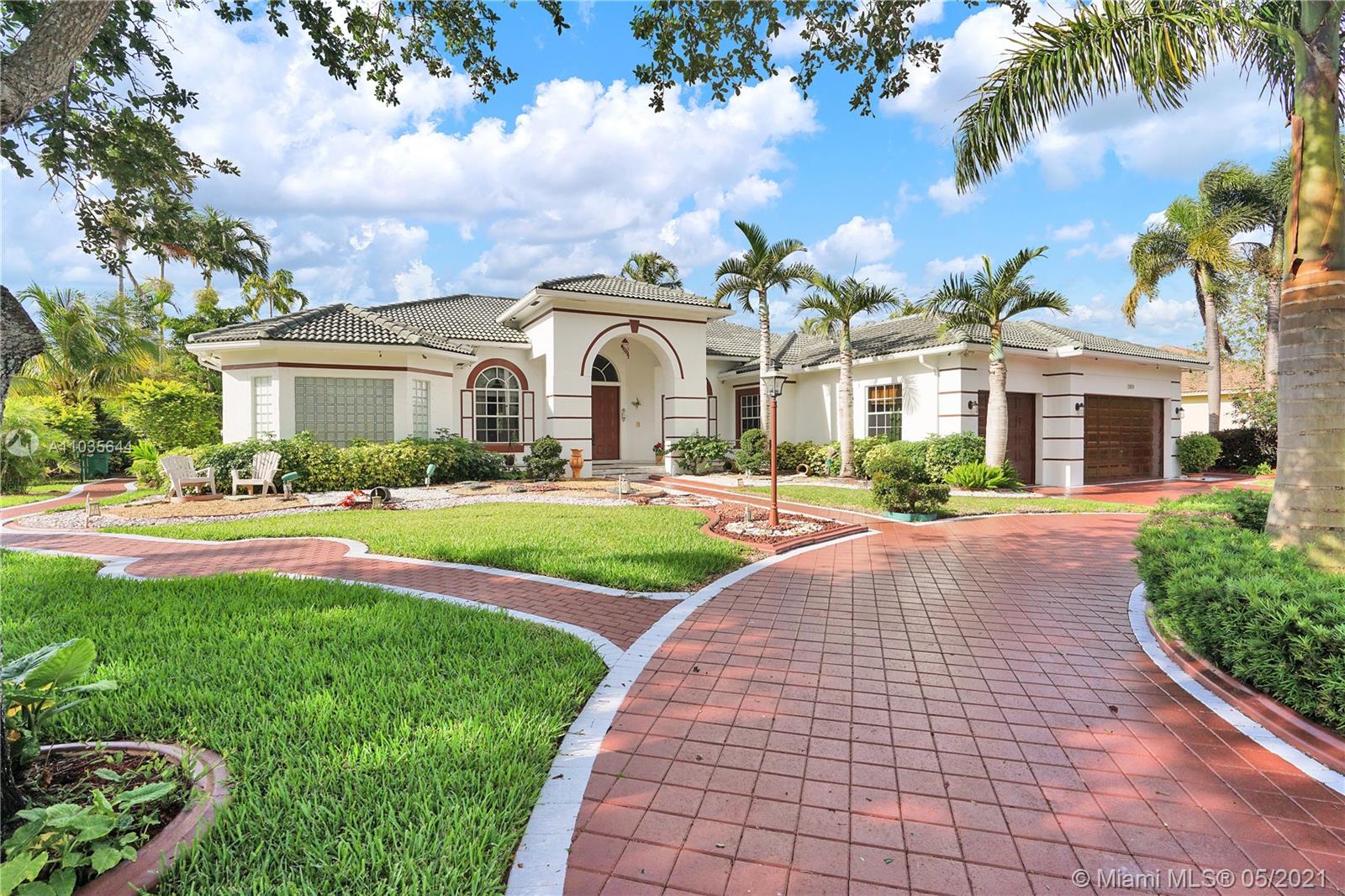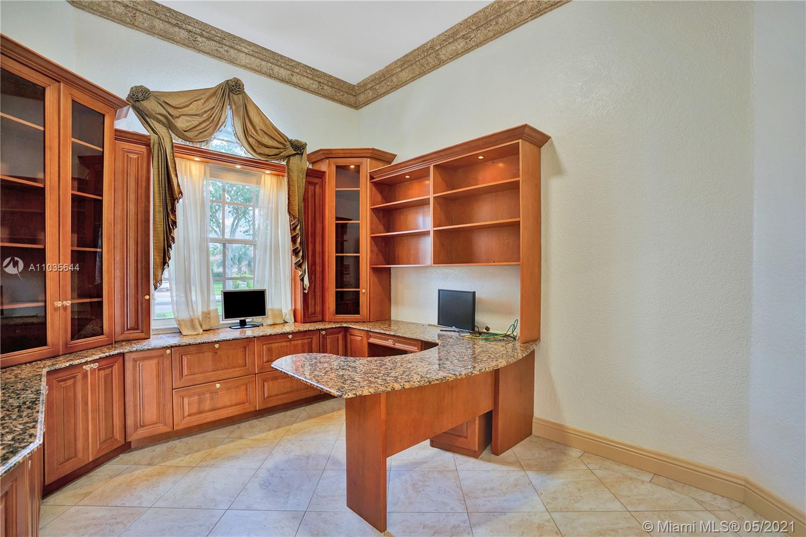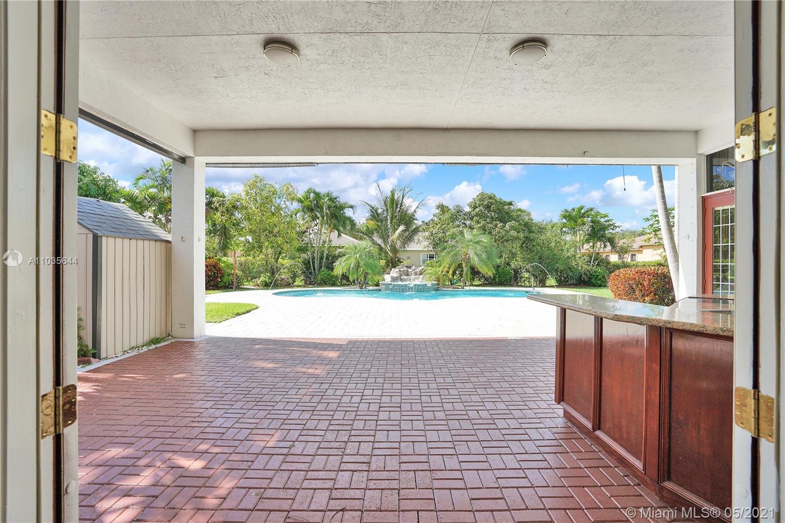 EXQUISITE ARCHITECTURAL DETAILS ABOUND IN THIS STUNNING 5/5 Plus Den. Imported Crown Molding and interior decoration, very New 3 ACs, New WIFI enabled Garage door, Outside Cameras, Pool with SPA, water fall, bubblers & water jets. Newly Painted Grant foyer Entry, Granite Built-Ins Formal Dining Room, Extraordinary custom Wall to Wall Entertainment Center, Large Granite Wet Bar, Wine Rack, Beautiful Kitchen with Double Oven, Preparation Island, Walk-In Shelved Pantry. Custom Built-in Office Room with Granite. Master Suite Features Sitting Area, Tray Ceiling, Spa-Like Master Bath, Newly Painted inside & Outside. Master bedroom has wood accent walls. Outside Large Kitchen with Marine wood. Award Winning Landscape. Walk-way all around the house. Tropical Fruit Trees all around the house.