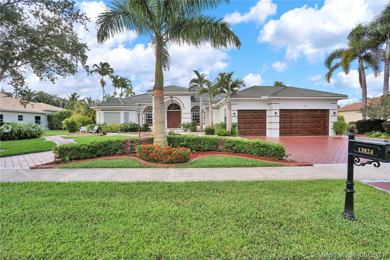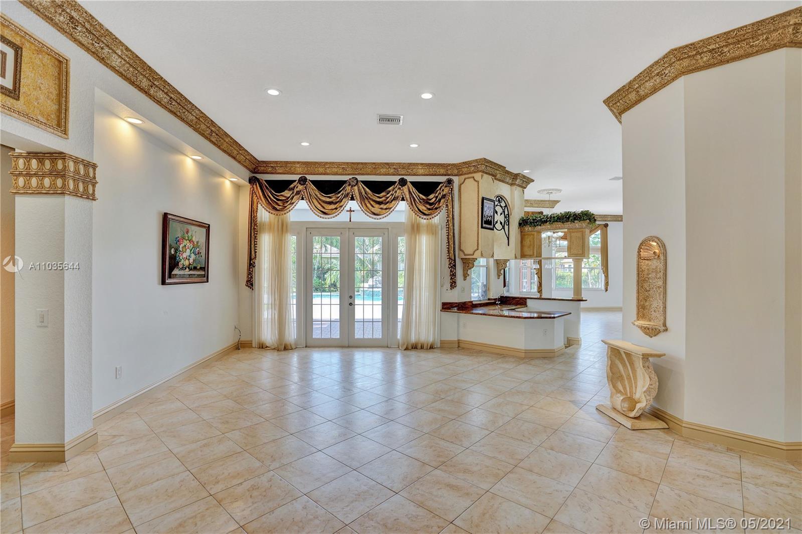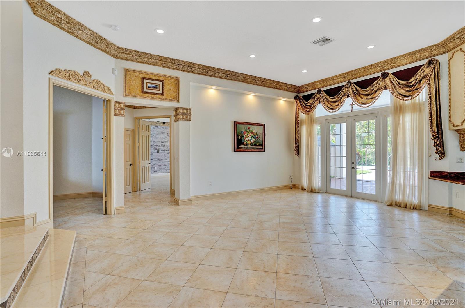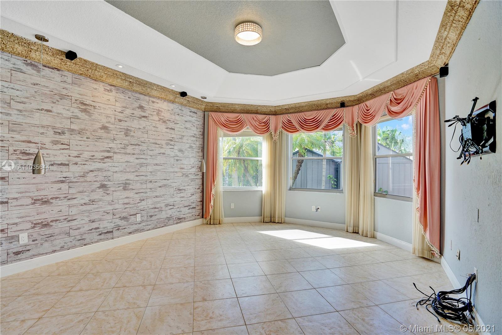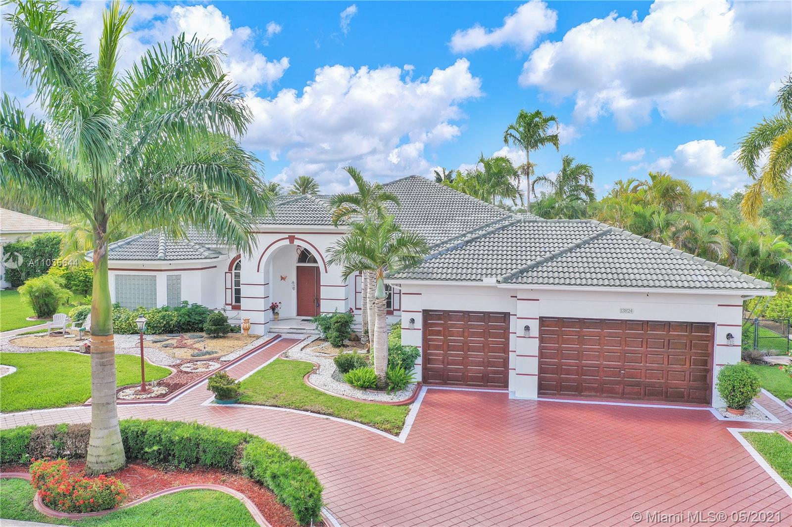EXQUISITE ARCHITECTURAL DETAILS ABOUND IN THIS STUNNING 5/5 Plus Den. Imported Crown Molding and interior decoration, very New 3 ACs, New WIFI enabled Garage door, Outside Cameras, Pool with SPA, water fall, bubblers & water jets. Newly Painted Grant foyer Entry, Granite Built-Ins Formal Dining Room, Extraordinary custom Wall to Wall Entertainment Center, Large Granite Wet Bar, Wine Rack, Beautiful Kitchen with Double Oven, Preparation Island, Walk-In Shelved Pantry. Custom Built-in Office Room with Granite. Master Suite Features Sitting Area, Tray Ceiling, Spa-Like Master Bath, Newly Painted inside & Outside. Master bedroom has wood accent walls. Outside Large Kitchen with Marine wood. Award Winning Landscape. Walk-way all around the house. Tropical Fruit Trees all around the house.