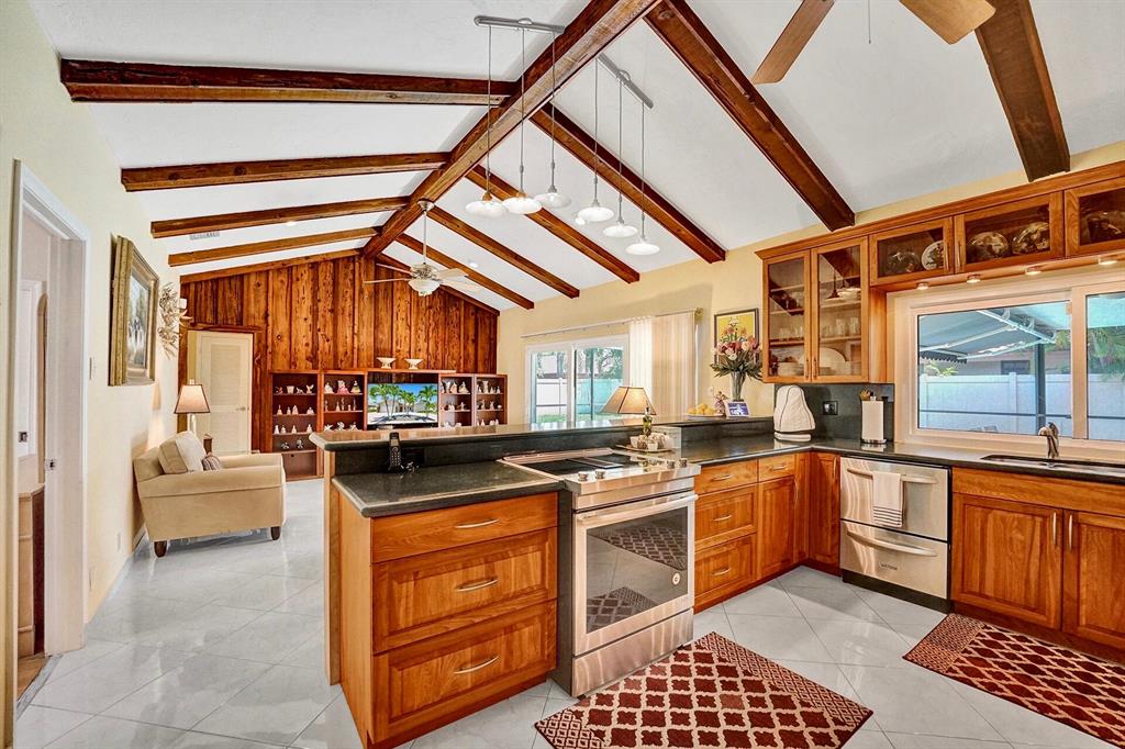 GET IT BEFORE IT'S GONE! Charming 4 bedroom, 3 bathroom pool home located in Palm Beach Farms in East Boca Raton- NO HOA! Enjoy over 2500 sq ft of hardwood and tiled floors, soaring ceilings in the family room and kitchen with beautiful exposed wood beams, spacious bedrooms- including an attached inlaws quarters, updated bathrooms AND full impact windows and sliders! The beautiful outdoor living space includes a screened-in patio with upgraded pavers, a large freeform solar heated pool, covered patio in addition to patio space with a retractable awning. This almost 1/4 acre lot has a fenced in backyard featuring a vinyl fence, a large avocado tree, and additional property behind the fence.This home has plenty of parking with a large circular driveway in addition to a 2 car garage.