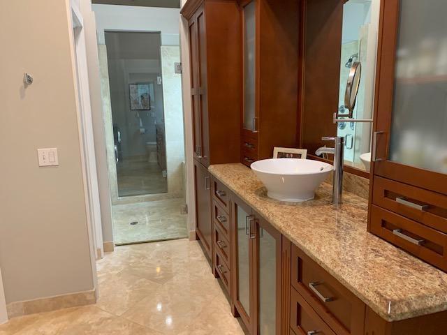 This beautifully maintained and updated home is located in Coral Spring's most sought after gated community - Eagle Trace. From the moment you step through the front door you enter the elegantly appointed 4-bedroom home with a spacious living area with soaring high ceilings, formal living room, dining room, laundry room and bonus family room. The home has an open floor plan, which gives it a large feel with lots of natural light. The master bedroom is large with a generously-sized separate his and hers walk-in closet, separate Jack and Jill bathrooms with custom cabinets and granite countertops, and an oversized travertine walk-in shower and bench.