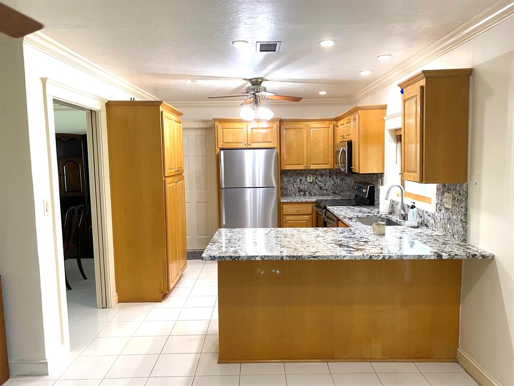 Beautifully redone classic ranch brick home. South facing and large bay windows allow for natural light throughout the entire house! The interior has solid wood doors and crown molding in every room! Flooring is tile, marble and vinyl wood plank. Kitchen has solid wood cabinetry and brand new granite counter tops with sit up counter. Brand new stainless steel appliances and built out laundry room with a lot of storage space for extra pantry and more!! This home also has a very large private back yard that has plenty of shade and endless possibilities! Beautiful island and park right across the street! Shopping, restaurants, grocery stores, schools and several parks nearby! Fabulous location!! Please call for showing.