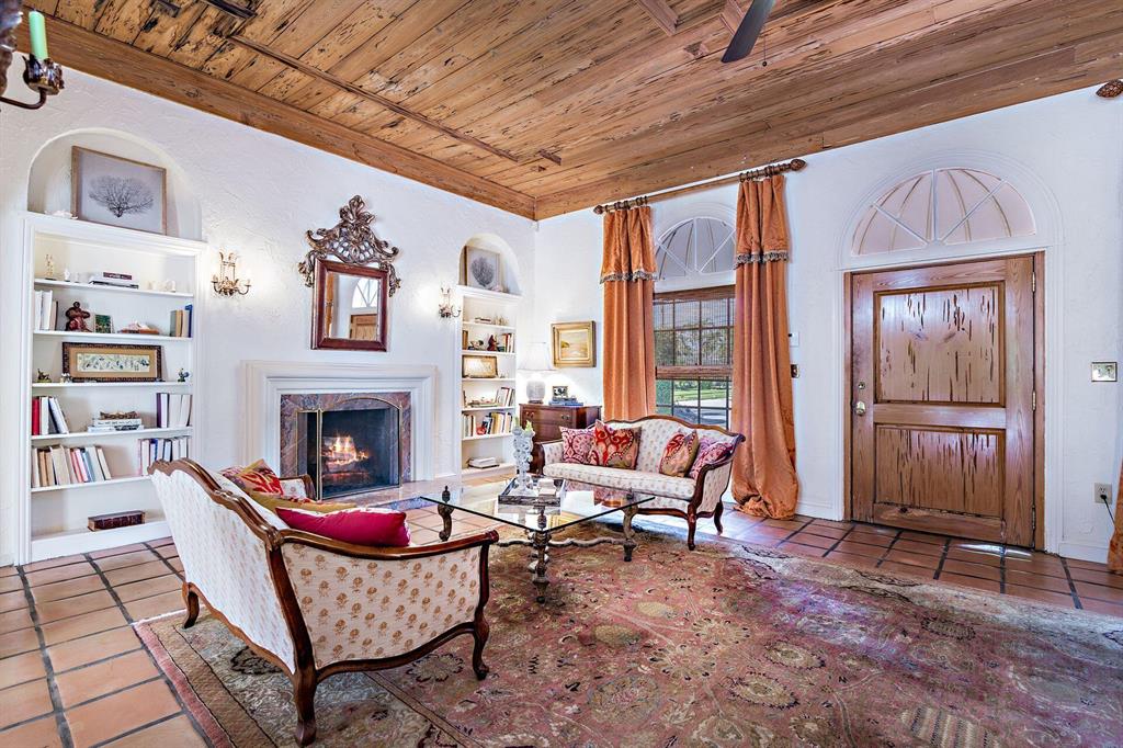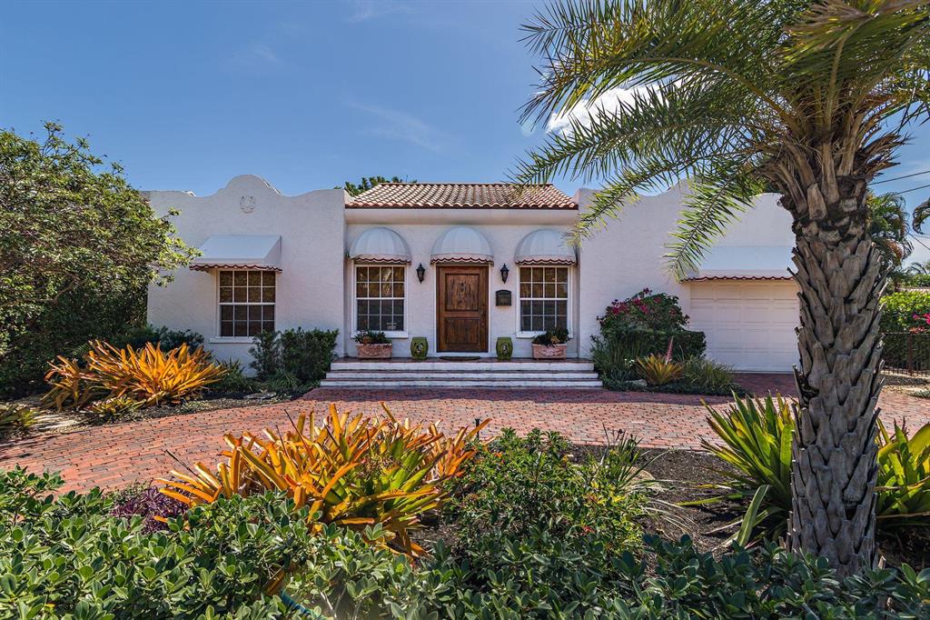 Stately Mediterranean South of Southern! This gorgeous 3BR/2BTH pool home with garage will amaze you with its soaring 11 ft. ceilings & true Florida ambience. Curved brick driveway leads to the raised entry enhanced with tile steps & pecky cypress door. The interior spaces are elegantly designed with an open floor plan, formal living room with pecky cypress ceiling & fireplace, formal dining with French Doors opening to large covered patio overlooking the lushly planted garden, fountain, stunning pool & patio area. Separate family/tv room, eat-in kitchen with new appliances & island with gas cooktop & butcher block counter. Large master bedroom with French doors to patio plus 2 guest bedrooms. The back yard feels like a private resort with pool & lots of mature tropical palm trees!