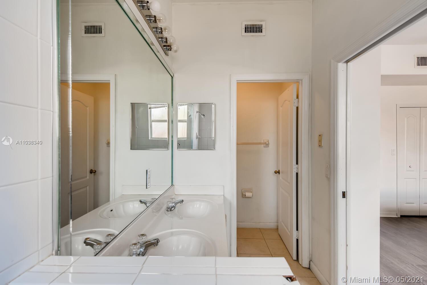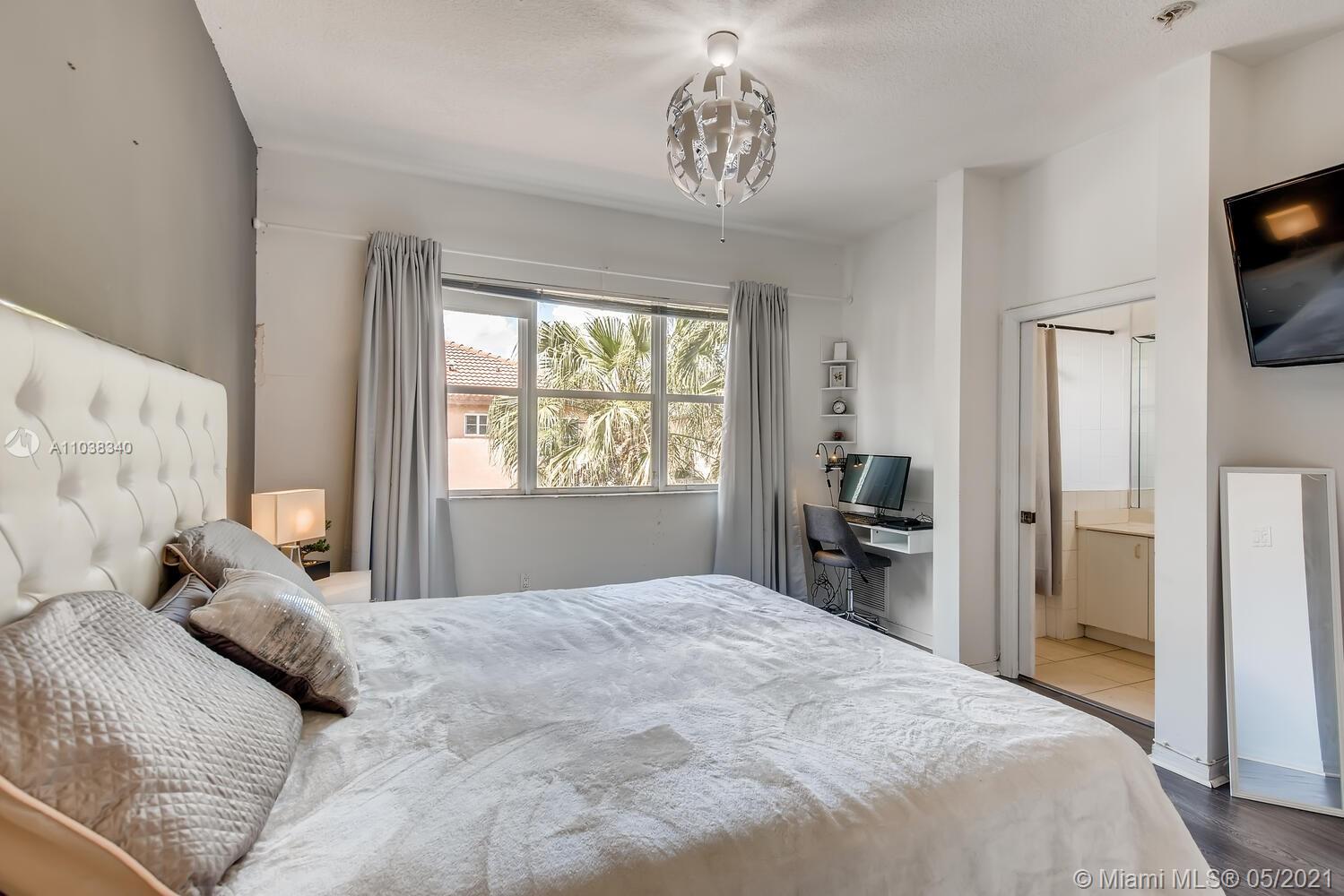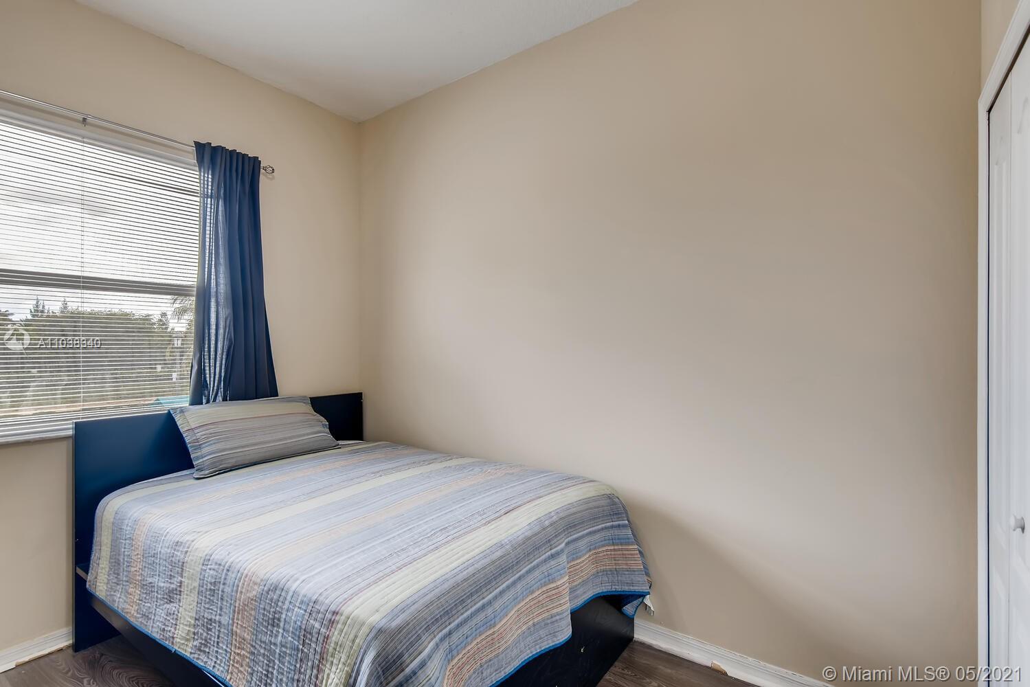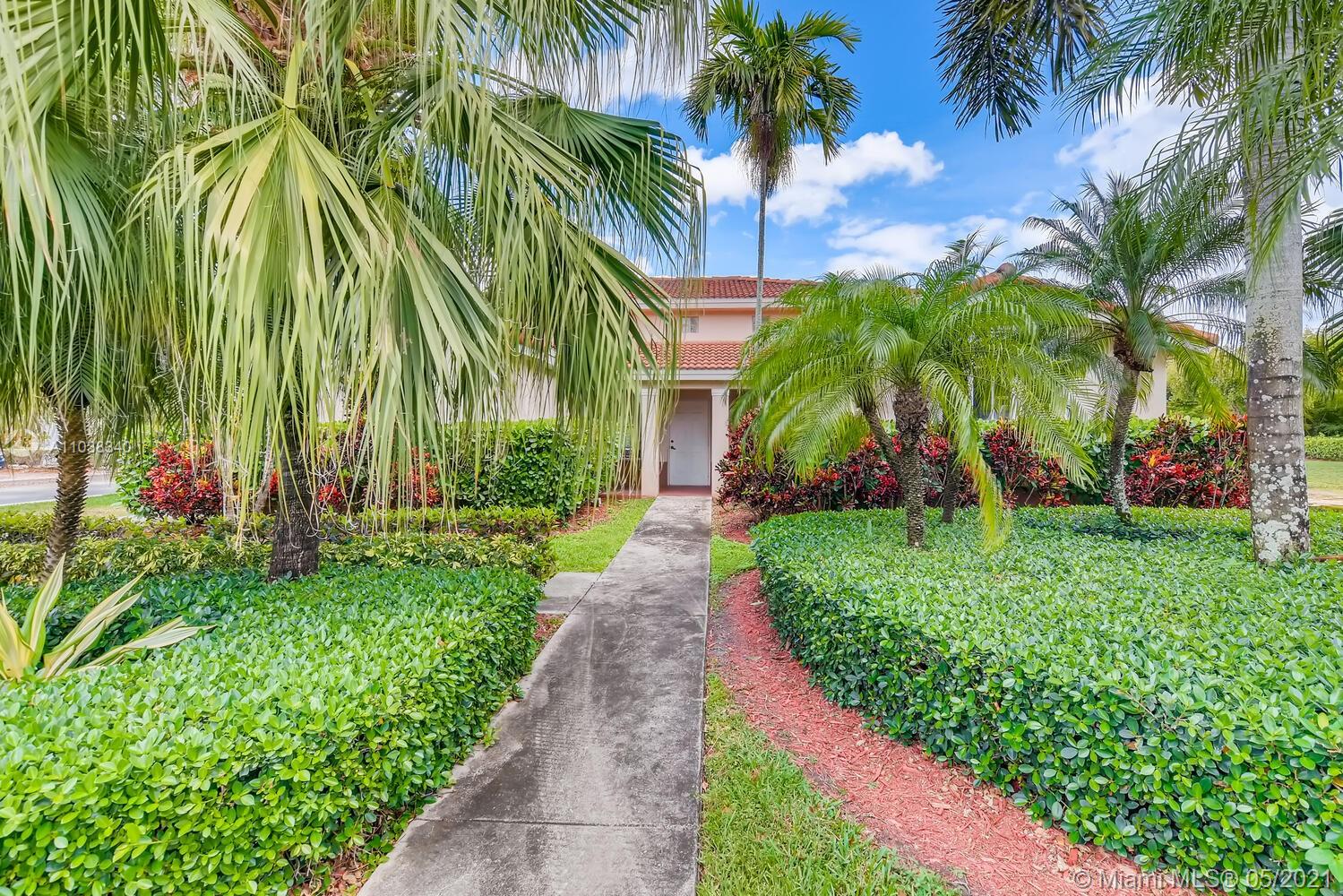 Lush greenery and a gated front porch add great curb appeal, while gray wood toned floors and natural light create a bright and inviting interior. Sliding glass doors create a seamless indoor/outdoor space between the living room, featuring a tray ceiling and stylish accent wall, and the fenced-in backyard, complete with a paver patio, pergola covered turf lawn, and tropical landscaping. In the kitchen, black countertops nicely contrast the white cabinets and appliances, and recessed and under cabinet light reflect off the glass tile backsplash. A bar pass-through makes serving to the pendant lit dining area a breeze, while a downstairs powder room is convenient for guests. Wind down in any one of the upstairs bedrooms; the primary has an ensuite bath, with a dual sink vanity.