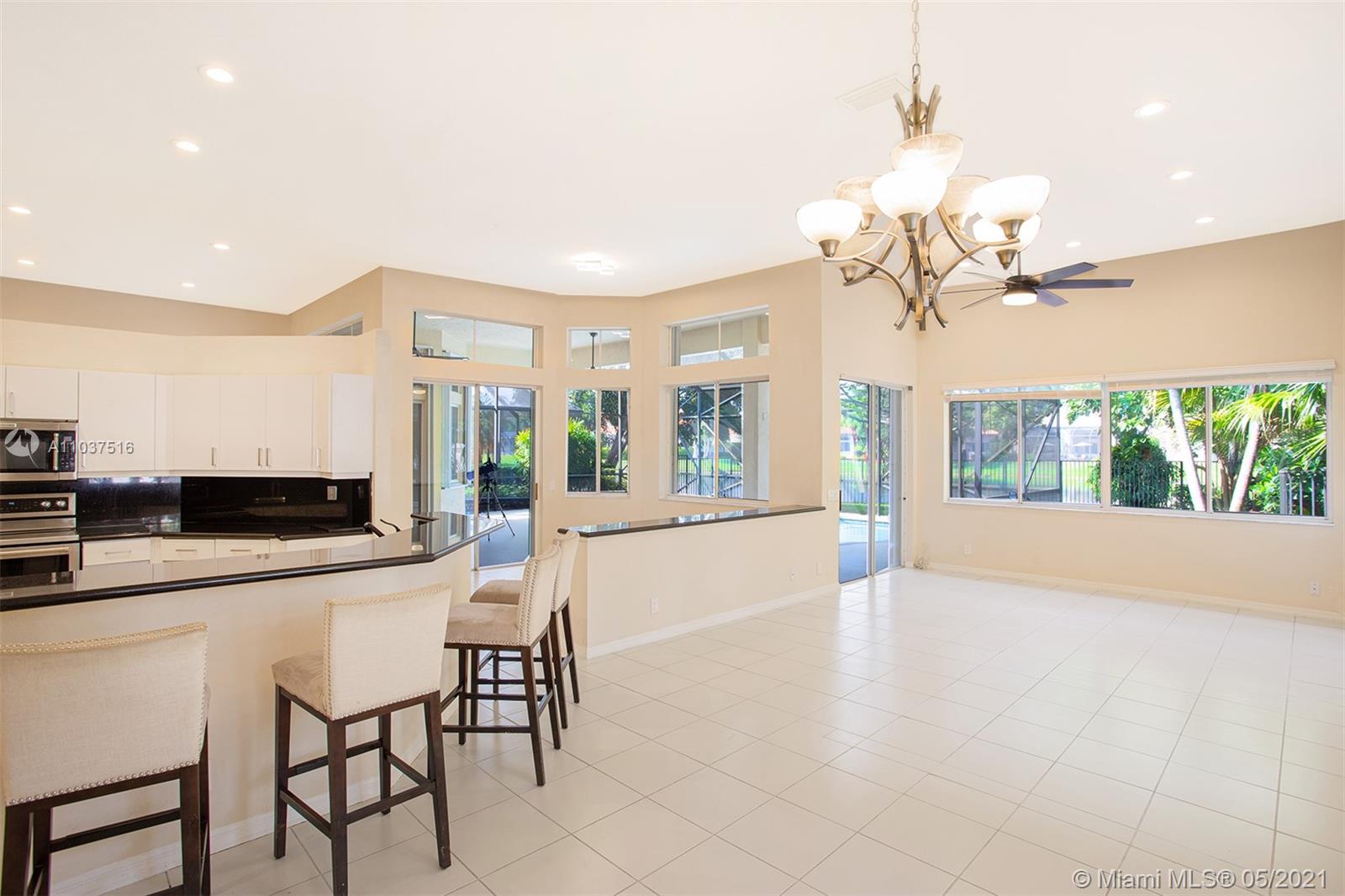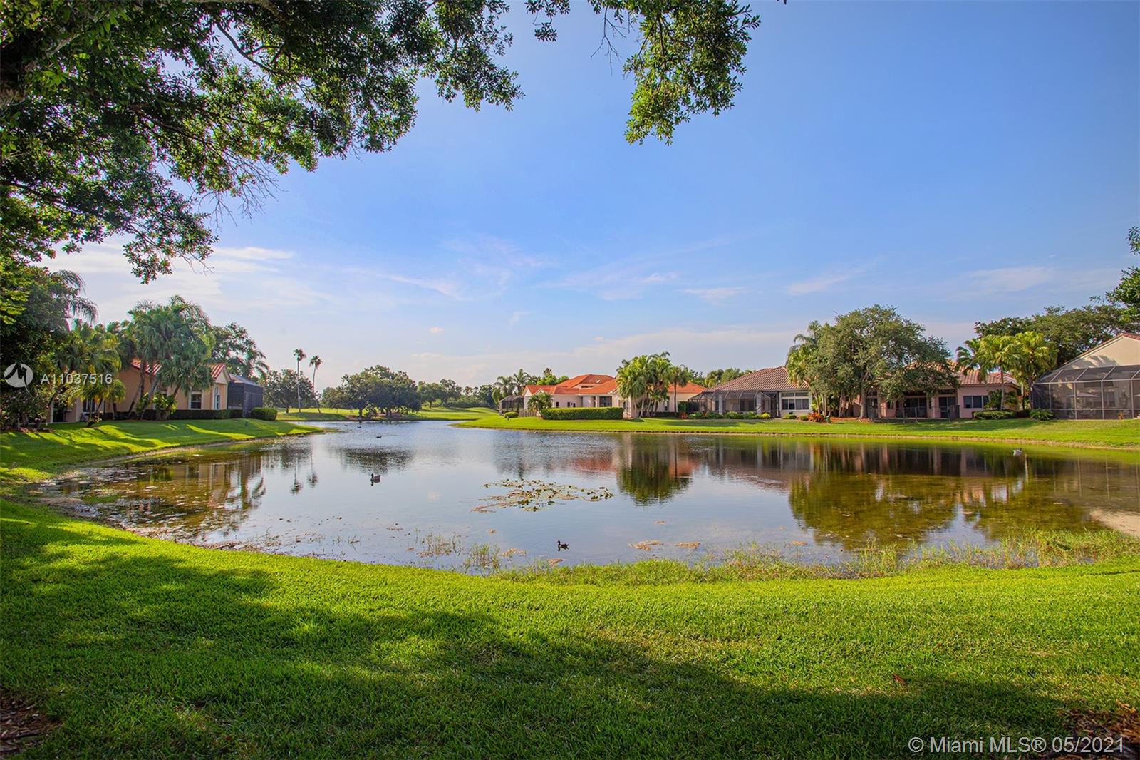 Beautiful water view home on desirable Weston Hills Country Club. Situated on one of the largest corner lots of a cul-de-sac street, with water and golf views from the gorgeous screened private pool. High ceilings, spacious and bright living areas, large bedrooms with wooden floors, remodeled kitchen with SS appliances and granite counter tops. The roof, gutters and exterior paint are less than a year old. Accordion shutters, extended paved BBQ grilling area and beautiful landscaping. Prestigious and well maintained community with low HOA. A must see!!! Easy to Show.