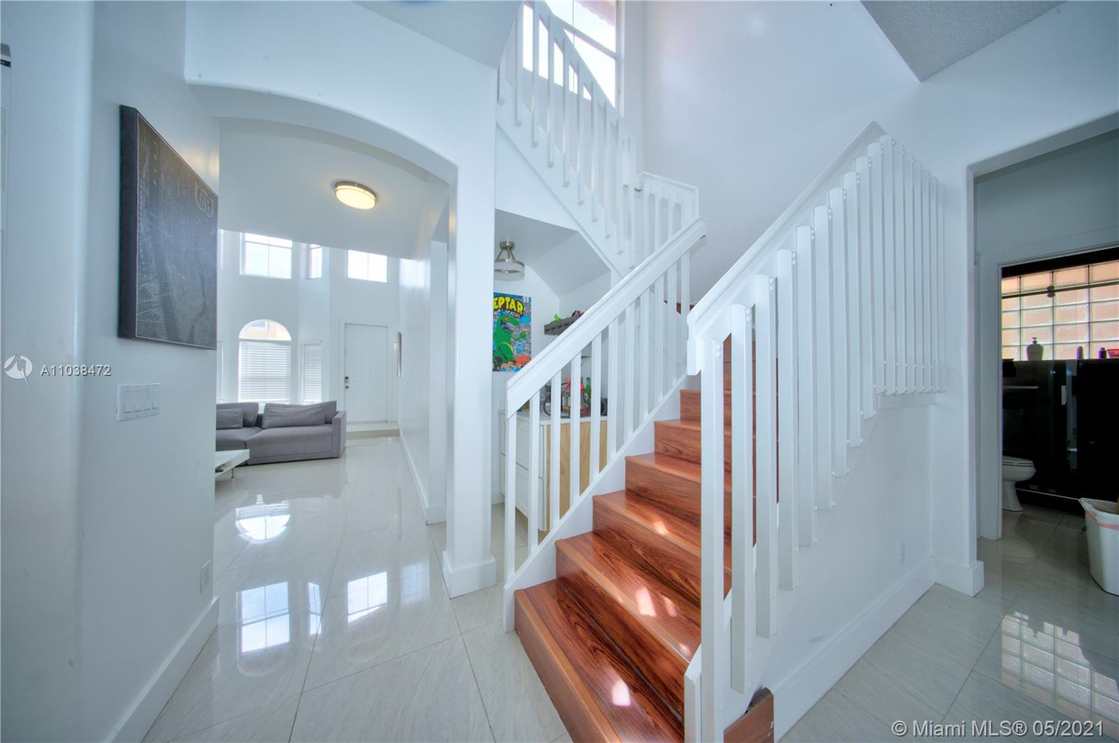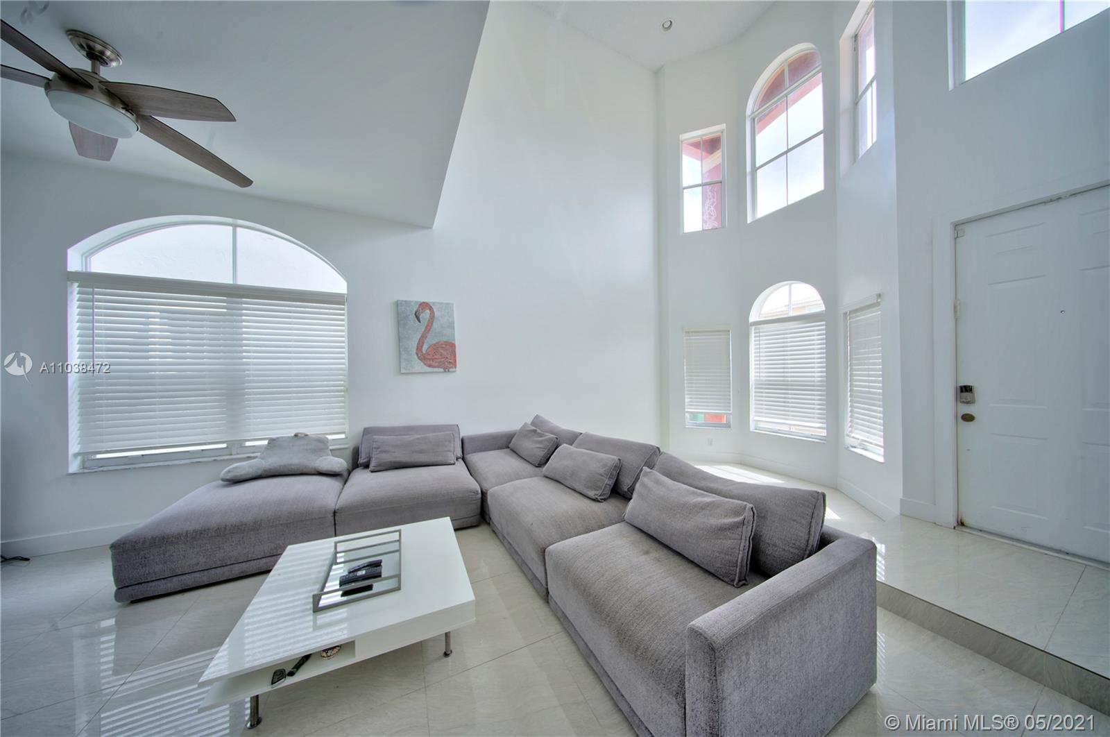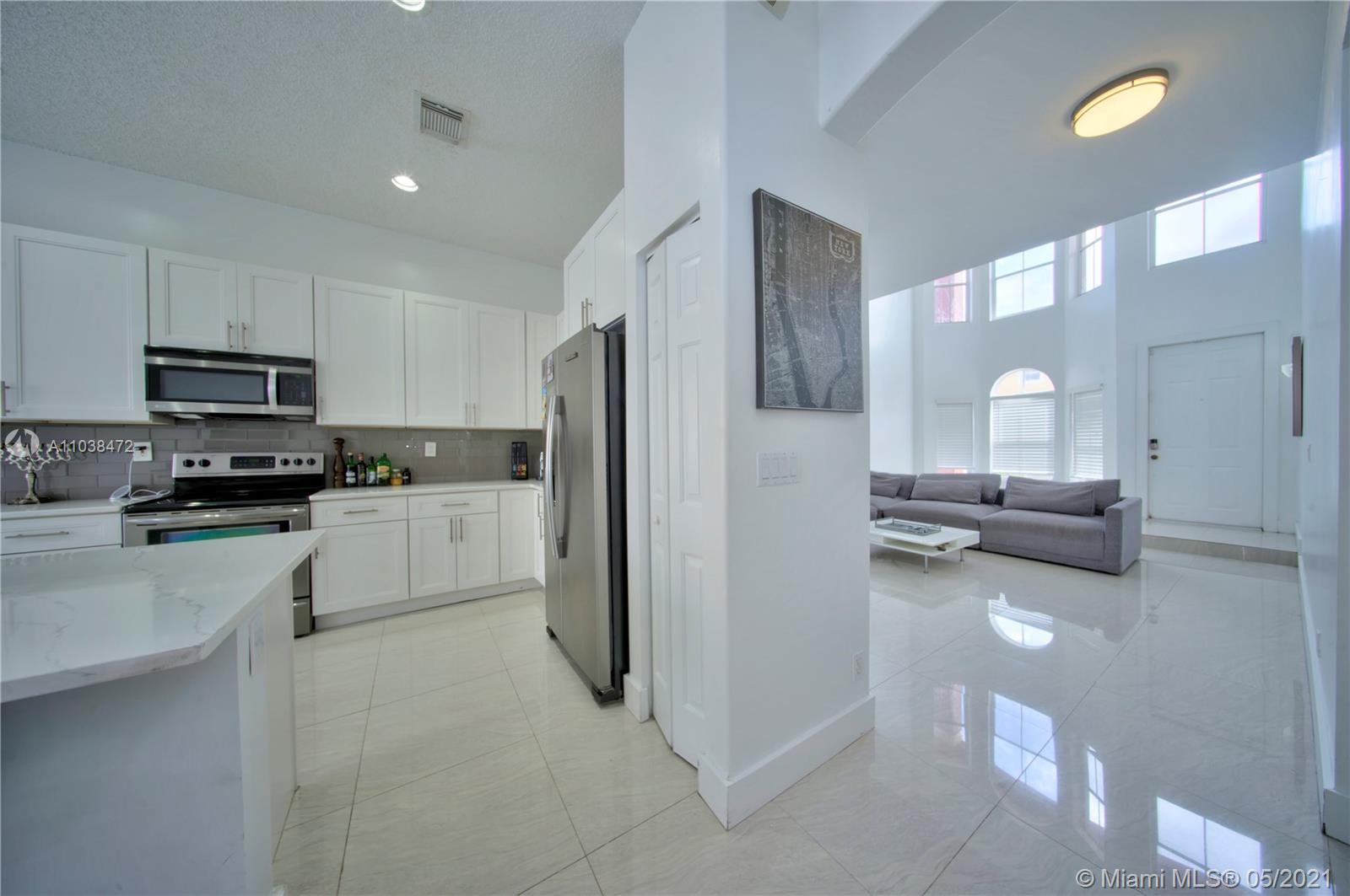 This is a must-see, Spacious two-story w/ garage 4 bedroom and 3 full baths Home in the Prestigious Mapleridge Gated Community. Upon entering this home you will be greeted by 20' high ceilings, an open foyer, along with a very spacious living room that leads into a formal dining room and kitchen. The entire home has been updated and modernized. Spacious and open with lots of natural sunlight. The floors and counters are amazing large rectangular porcelain tiles, Quarts countertops that compliment the floors, high-end finishes, and appliances throughout the kitchen and bathrooms. Solid wooden doors throughout. Updated A/c unit. Paved back patio area. The home is conveniently located within a short walking distance to houses of worship, the community pool, and the children's playground.