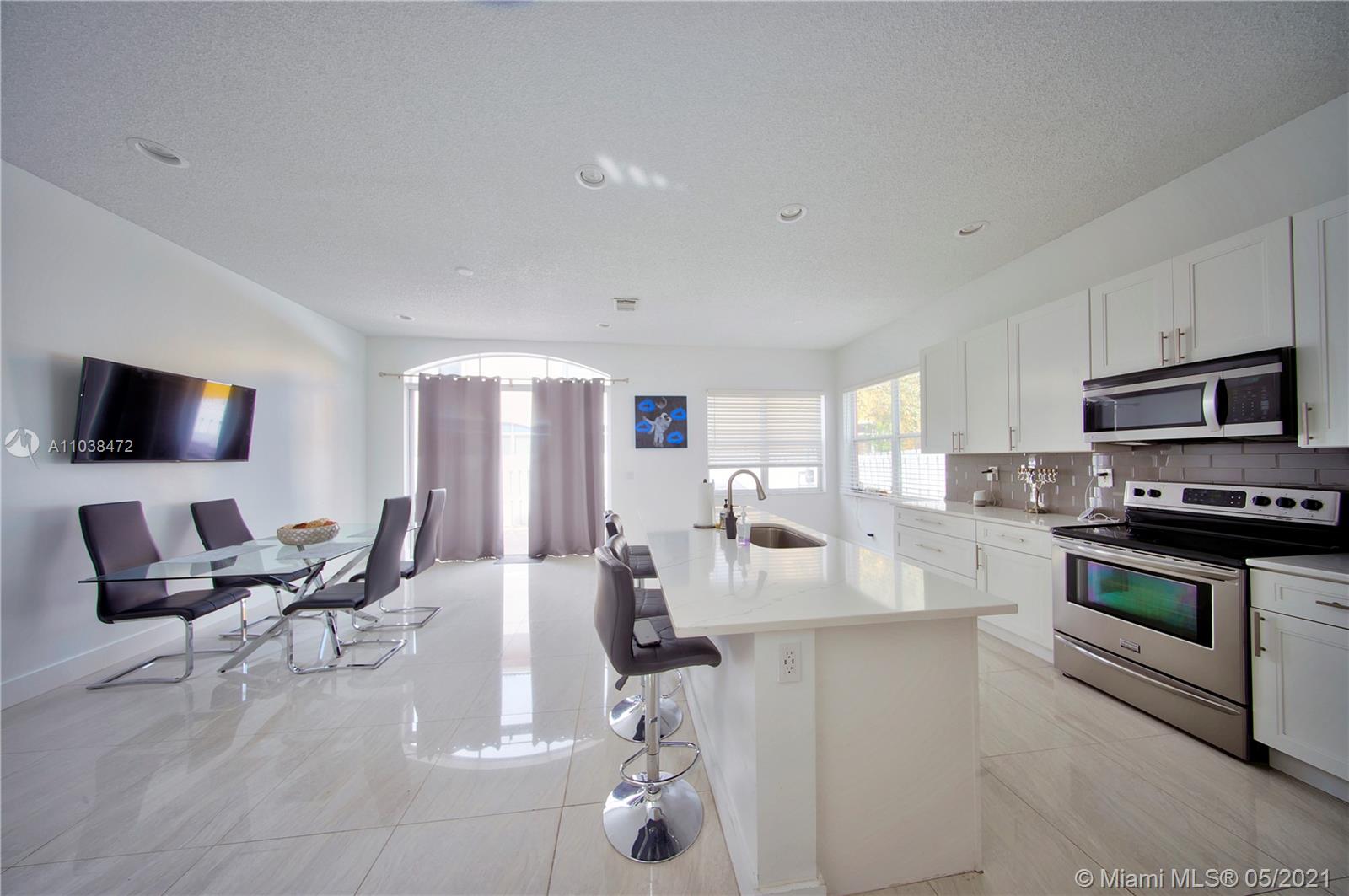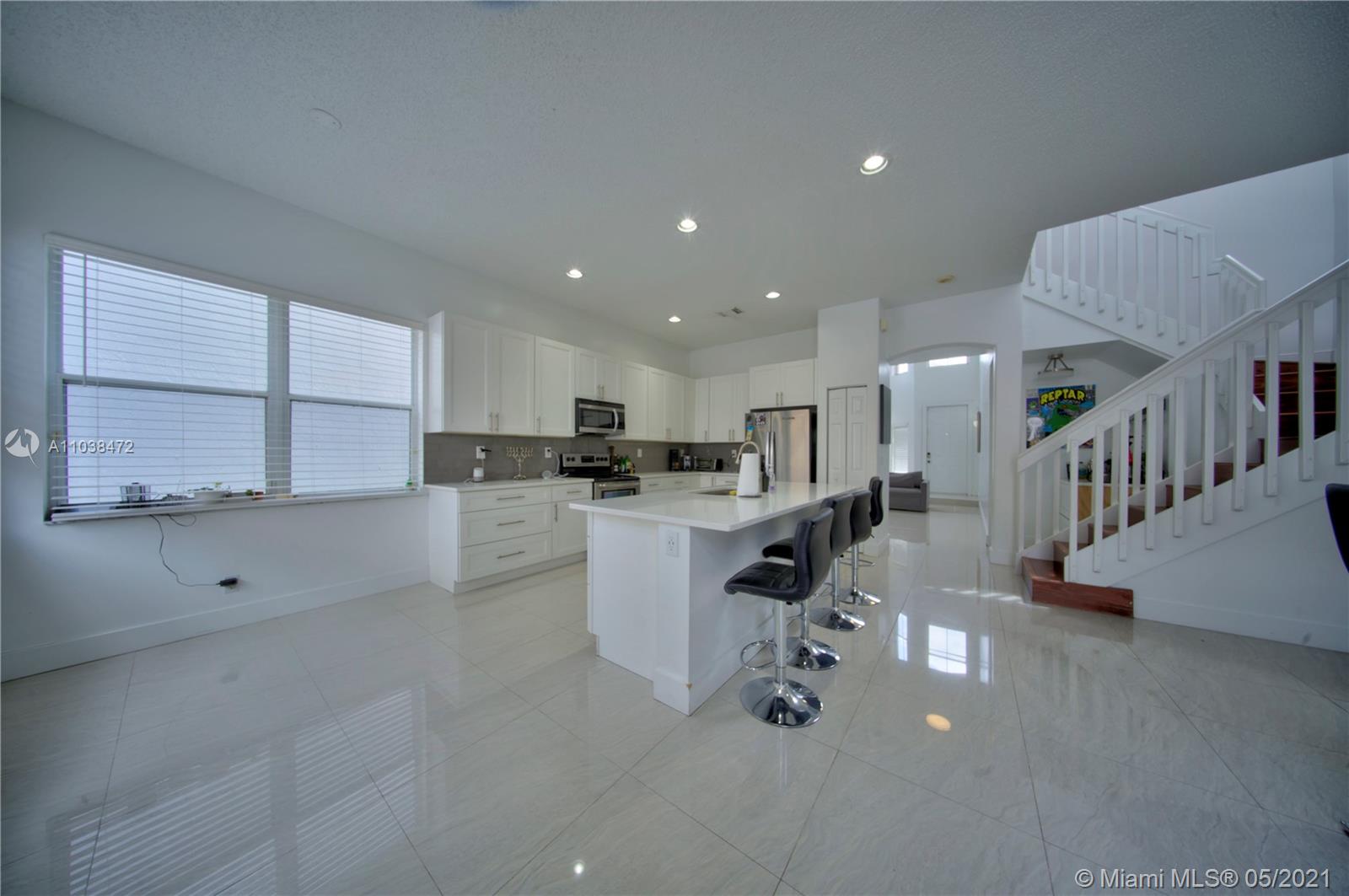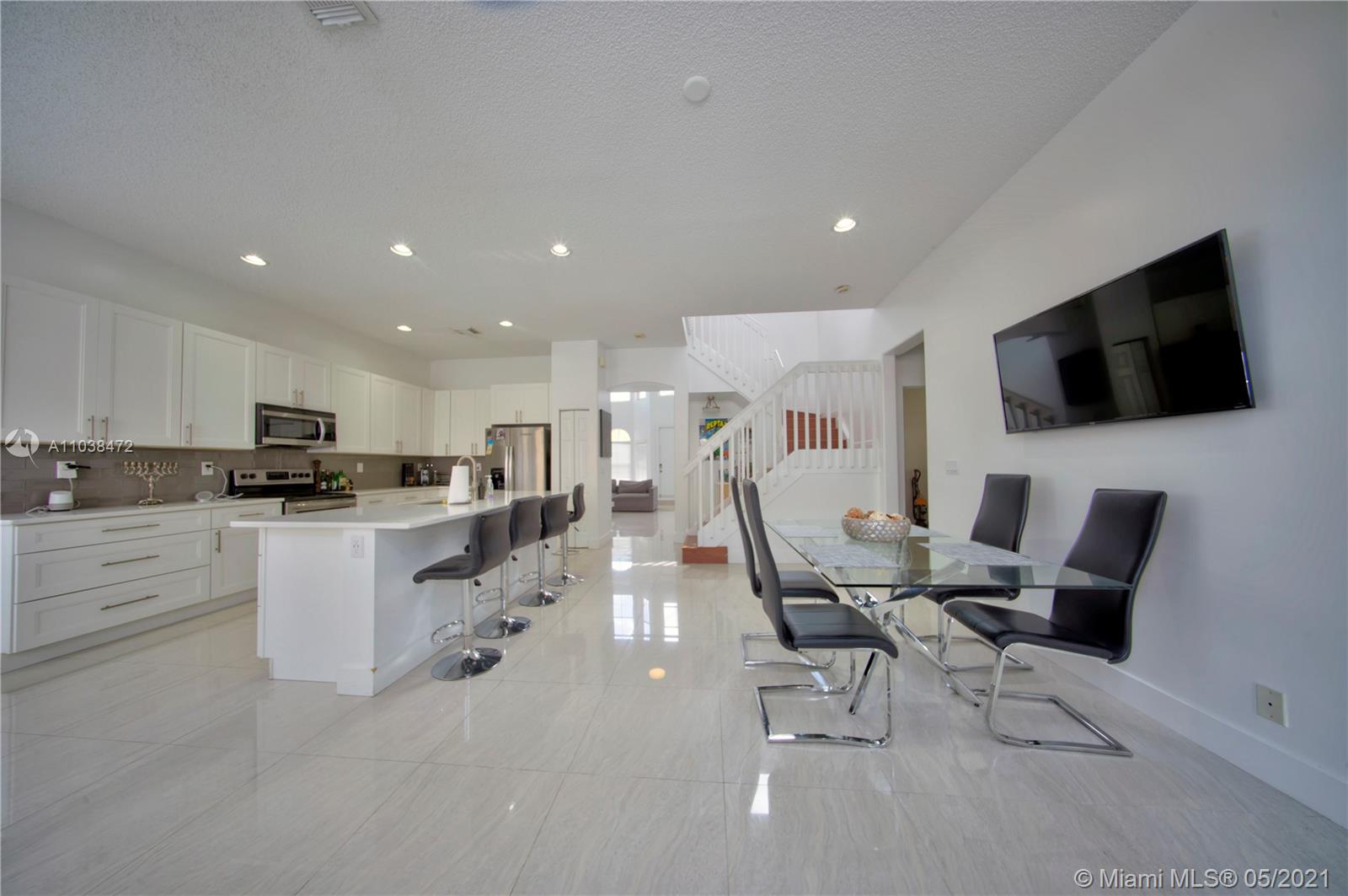 This is a must-see, Spacious two-story w/ garage 4 bedroom and 3 full baths Home in the Prestigious Mapleridge Gated Community. Upon entering this home you will be greeted by 20' high ceilings, an open foyer, along with a very spacious living room that leads into a formal dining room and kitchen. The entire home has been updated and modernized. Spacious and open with lots of natural sunlight. The floors and counters are amazing large rectangular porcelain tiles, Quarts countertops that compliment the floors, high-end finishes, and appliances throughout the kitchen and bathrooms. Solid wooden doors throughout. Updated A/c unit. Paved back patio area. The home is conveniently located within a short walking distance to houses of worship, the community pool, and the children's playground.
