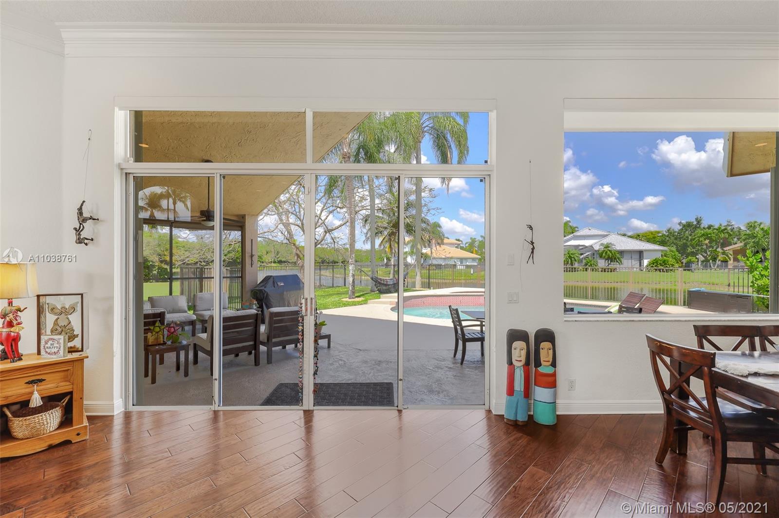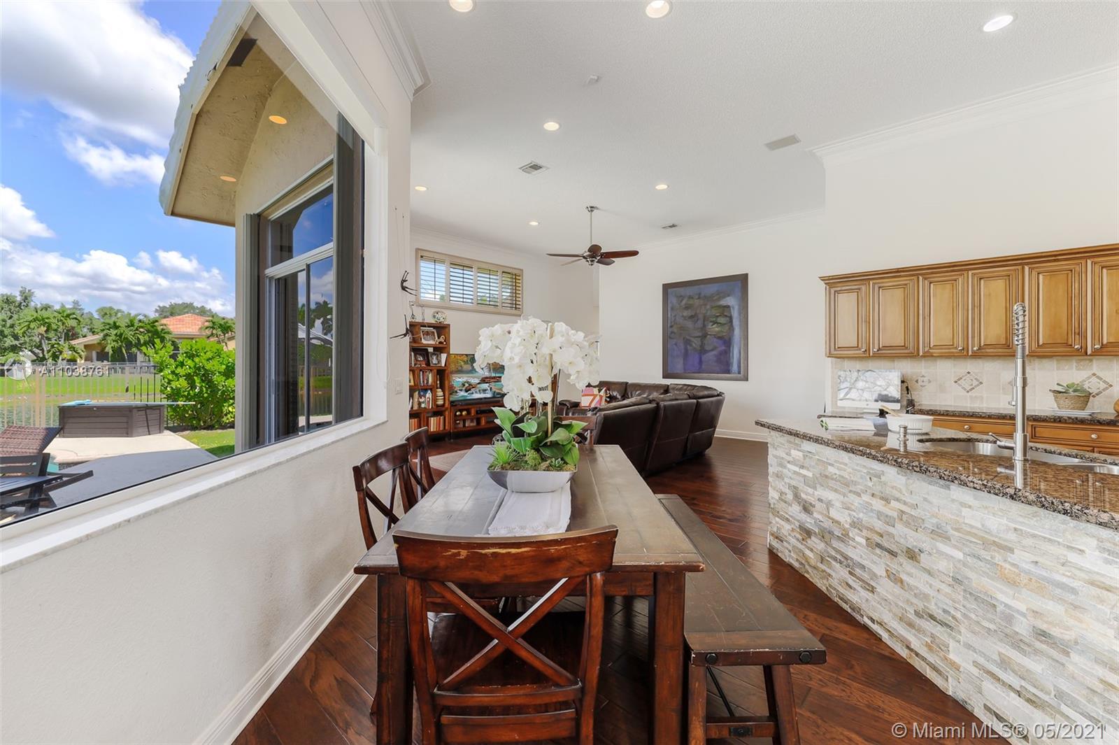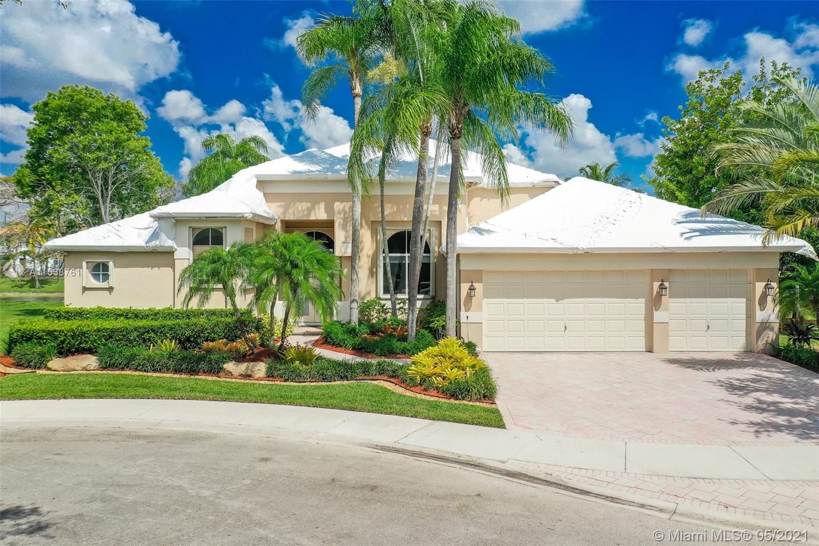 NEW ROOF. Welcome to this spacious and bright waterfront home. Premium pie shape lot and unobstructed waterview. 4 bedroom, 3 bathdroom. On a cul-de-sac in Weston Hills Country Club. Enjoy amazing views from kitchen and social areas. Engineered wood floors, SS appliances, granite countertops. Cabana bath nicely remodeled. Master bathroom with separate dual sinks, walk-in shower and tub. 3 car garage, open floor plan with volume ceilings, accordion shutters. Weston Hills is a picture perfect community with easy access of both I-75 and I-595.