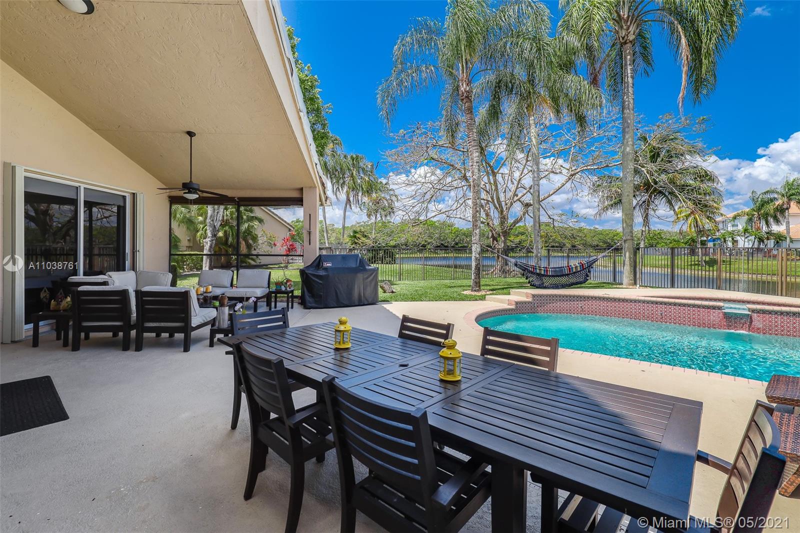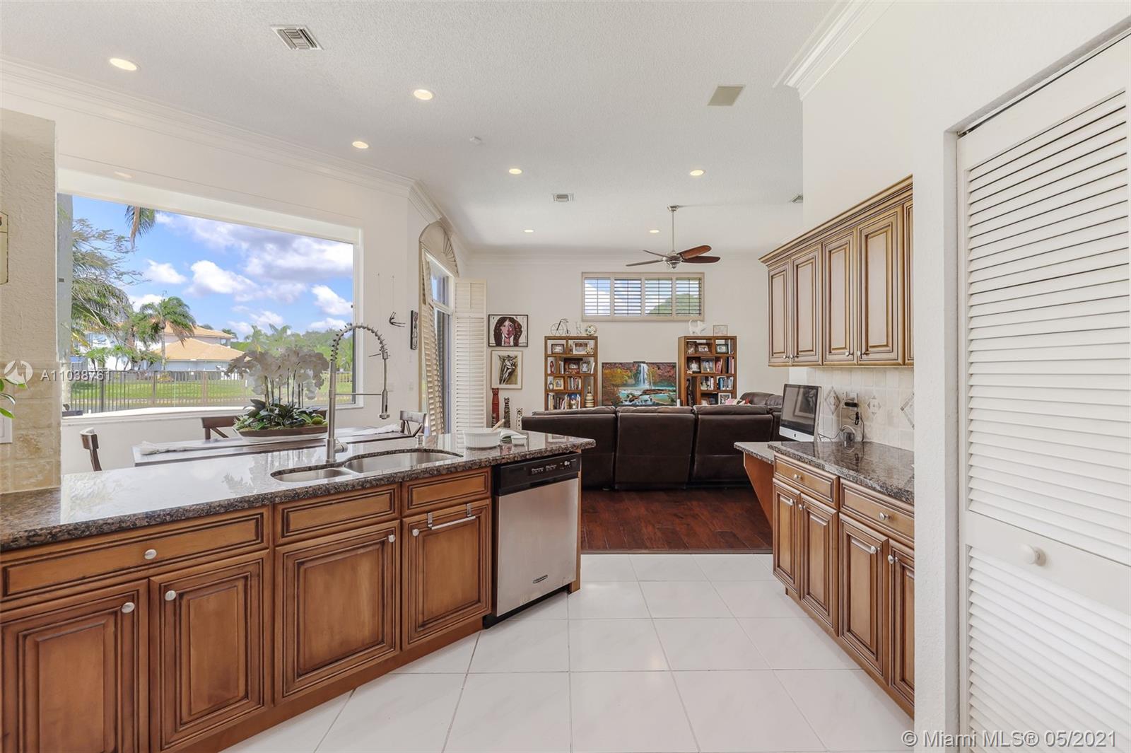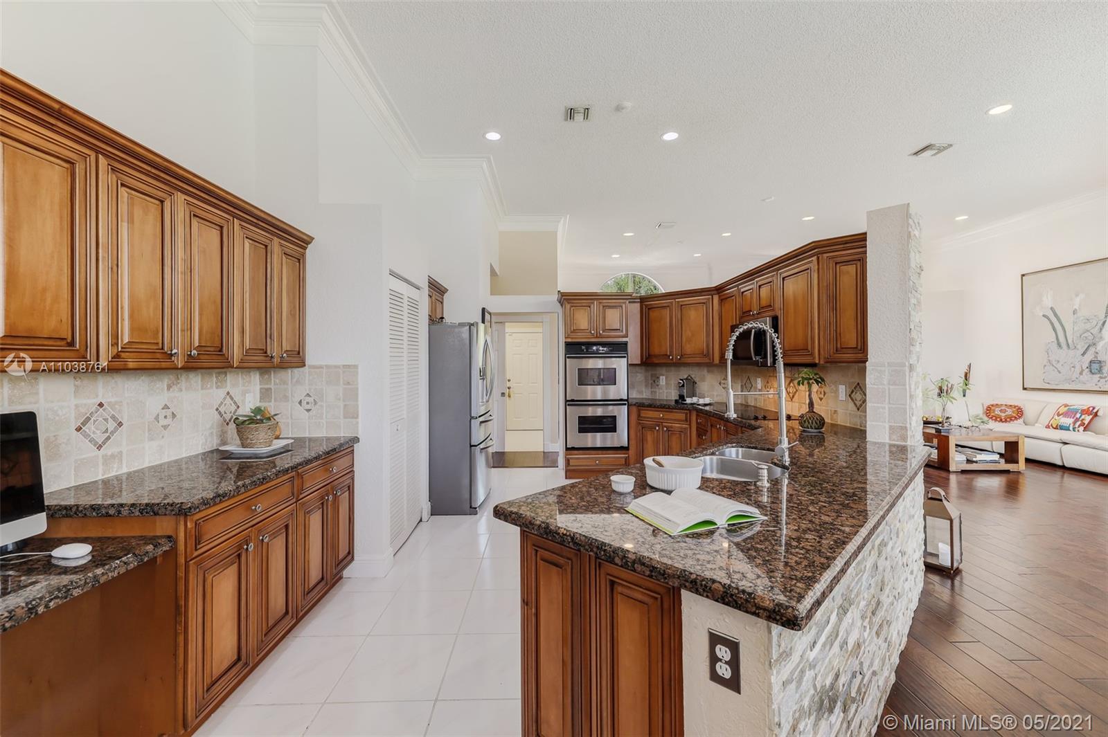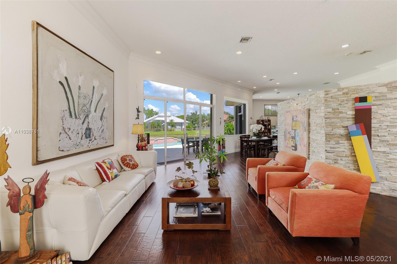 NEW ROOF. Welcome to this spacious and bright waterfront home. Premium pie shape lot and unobstructed waterview. 4 bedroom, 3 bathdroom. On a cul-de-sac in Weston Hills Country Club. Enjoy amazing views from kitchen and social areas. Engineered wood floors, SS appliances, granite countertops. Cabana bath nicely remodeled. Master bathroom with separate dual sinks, walk-in shower and tub. 3 car garage, open floor plan with volume ceilings, accordion shutters. Weston Hills is a picture perfect community with easy access of both I-75 and I-595.