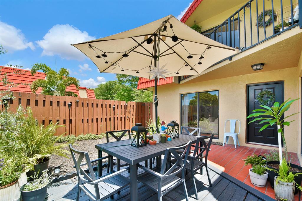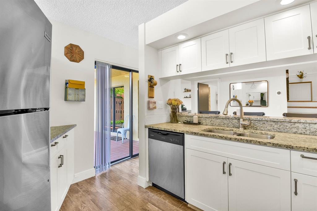 Beautifully updated townhouse in the heart of Boca Raton. This 2 bed/ 2.5 bath has beautiful woodgrain tile flooring throughout. Both bedrooms have their own full bath with a 1/2 bath downstairs. Kitchen has granite counter tops with beautiful wood cabinets. HOA is low in this pet friendly community with vast walking areas which include a serene lake a few blocks away.
