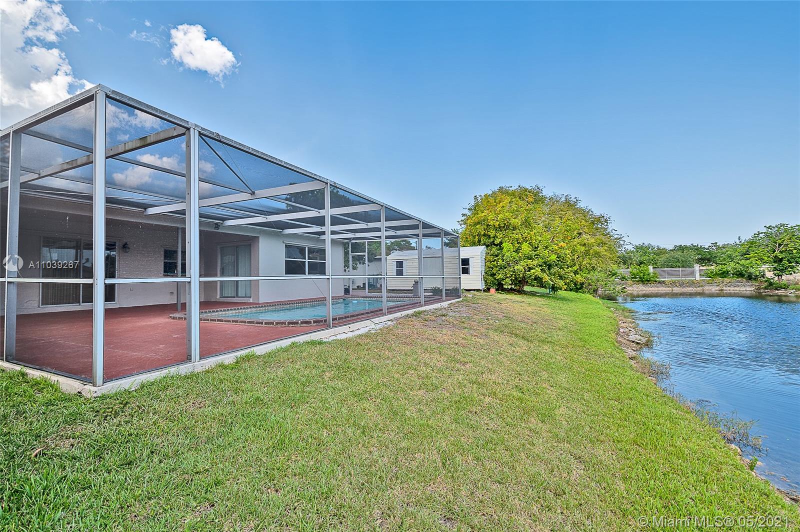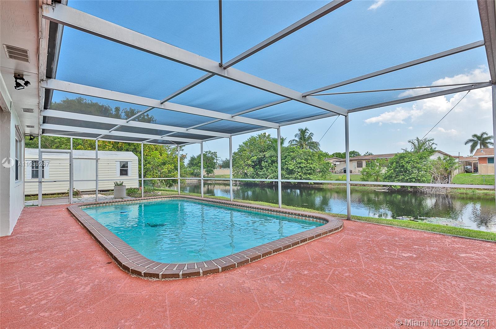 A gem is Sunrise! This is a 2 bedroom, 2 bath home with a den that can be converted to a 3rd bedroom. Features lake and screen enclosed pool and 1 car garage. The home has been freshly painted outside. Imagine the property with renovations to your own taste!