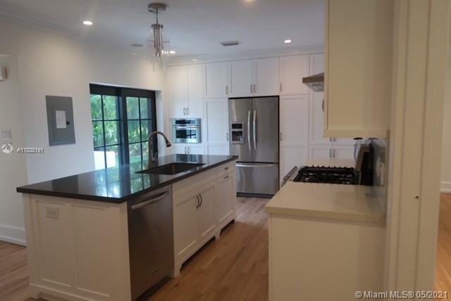 This 3-bedroom / 3-bathroom home offering old-world charm and modern design is near the University of Miami, Merrick Park, Coral Gables High, the Riviera Country Club, and much more. At approximately 2,200 square feet, the functional floor plan with a split bedroom layout where the master suite is in its own wing of the house is ideal of privacy and use of space. A gracious great room adjoined by a chefs-kitchen with stainless steel appliances, a gas range, custom cabinetry, quartz countertops, and storage for wine makes this home ideal for entertaining. The pristine hardwood floors, ample closets, and Cuban-tiled courtyard surrounded by two beautiful oaks are just a few of the other features that make this home so special. Impeccably kept and ready to move in.