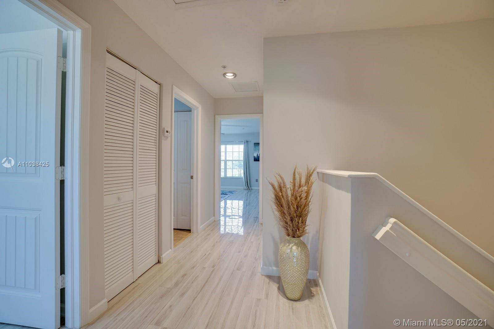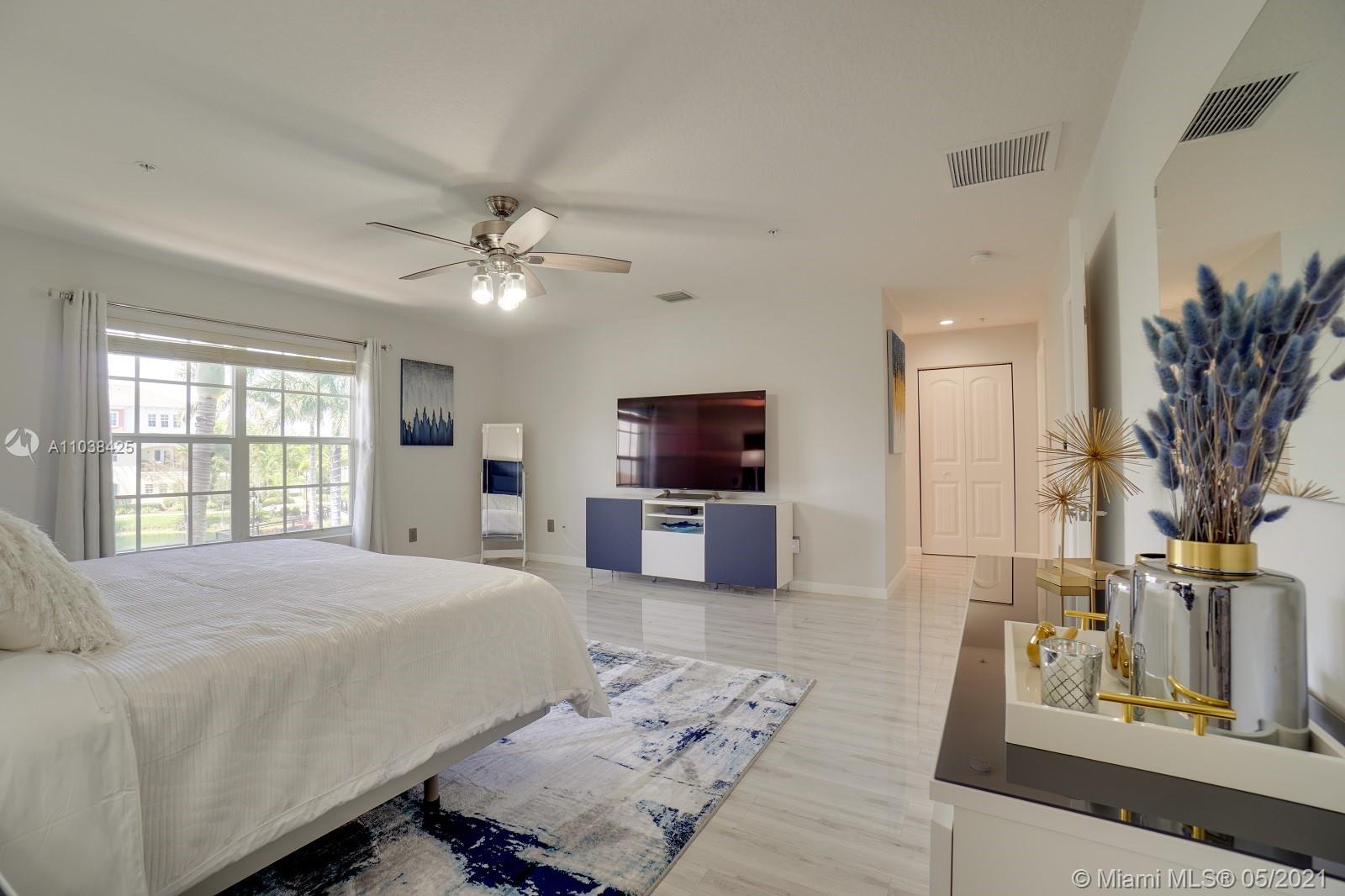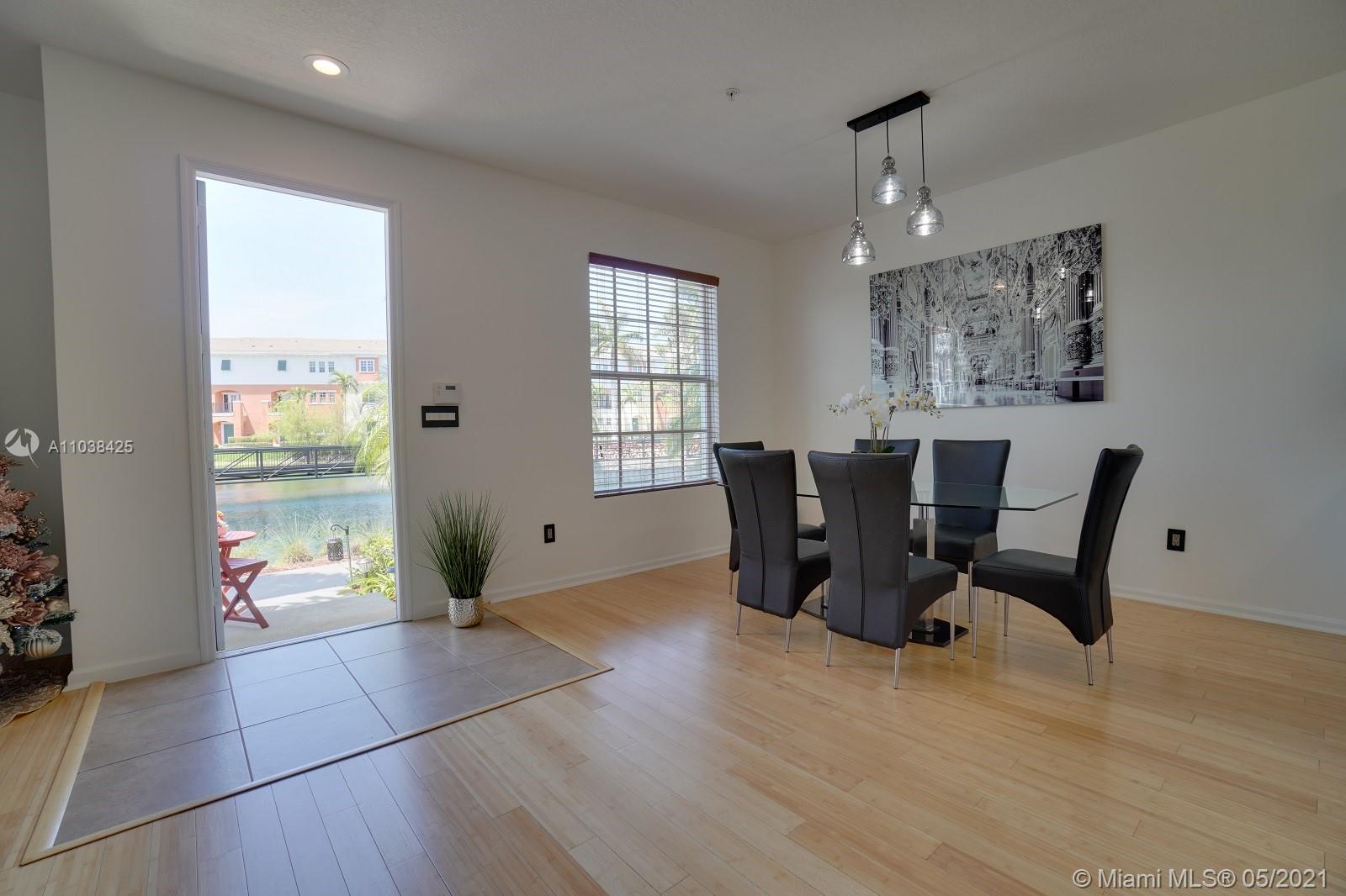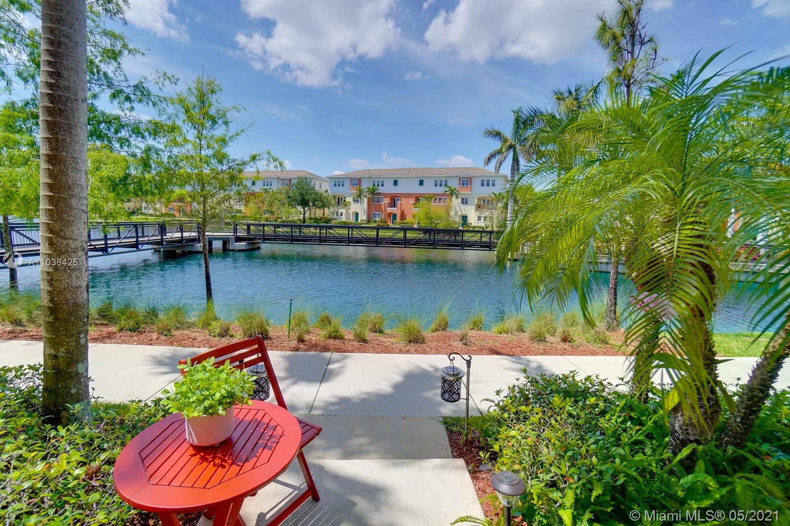 Luxury corner unit townhome with stunning water views. Watch the video! Over 2000 sqft of open and modern living space. Numerous impact windows. The open floor plan features a white kitchen with under cabinet lighting, stainless steel appliances, and granite countertops. Second floor has been tiled all throughout with gorgeous wood plank style tile. Unbelievable large master bedroom portrays dazzling water views. Master bathroom has been exquisitely remodeled with dual sinks, black marble countertops, walk in shower and rain head shower system, large tub, and beautiful Spanish style flooring. Two additional bedrooms. This townhome definitely feels like a two story single family home. Original outdoor AC unit was replaced with bigger unit to provide for better efficiency. Won't last!