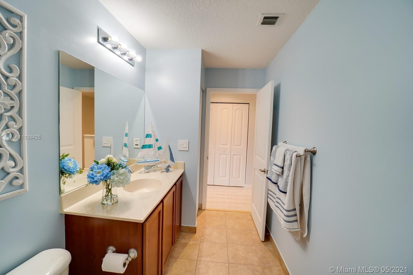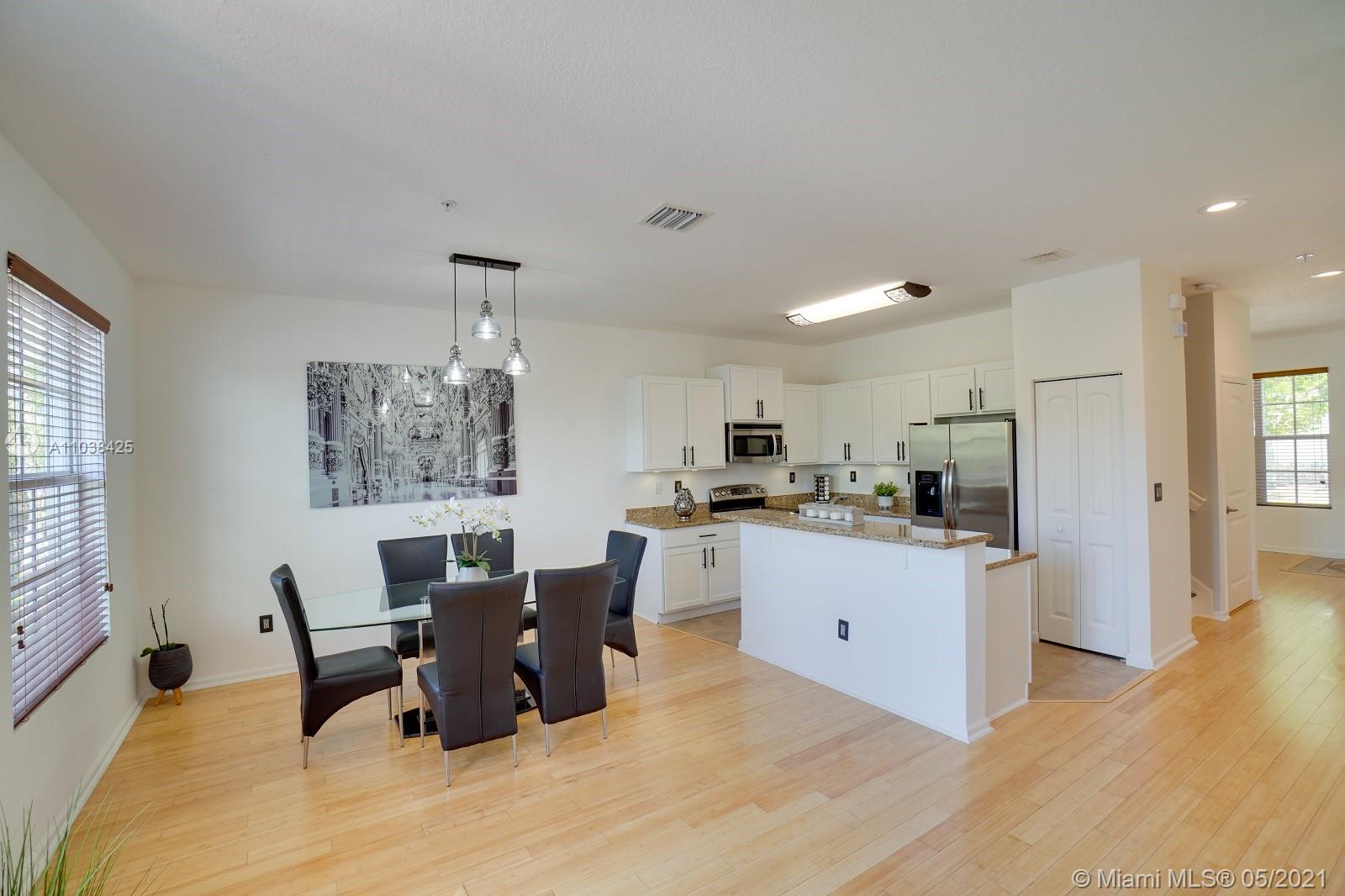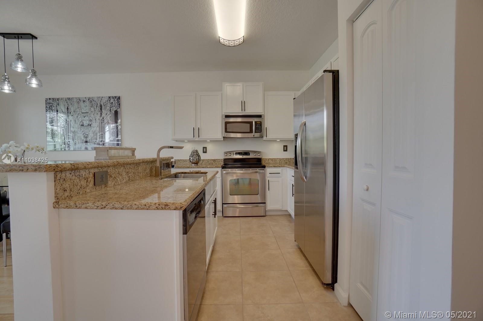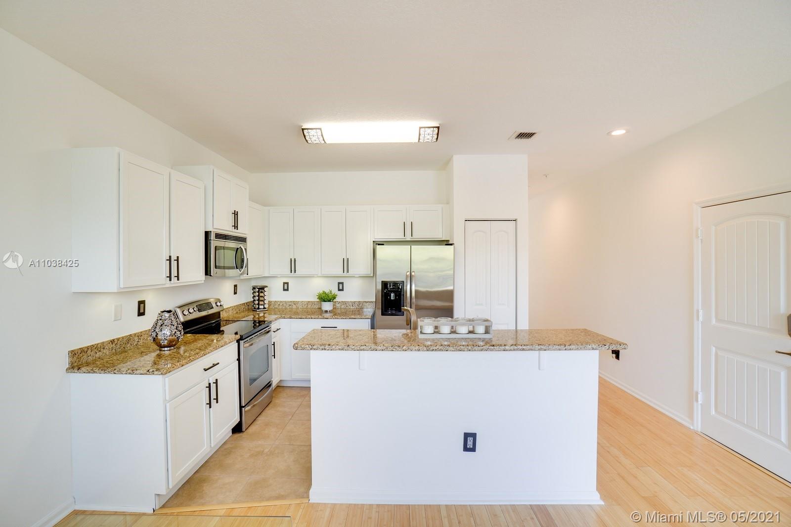 Luxury corner unit townhome with stunning water views. Watch the video! Over 2000 sqft of open and modern living space. Numerous impact windows. The open floor plan features a white kitchen with under cabinet lighting, stainless steel appliances, and granite countertops. Second floor has been tiled all throughout with gorgeous wood plank style tile. Unbelievable large master bedroom portrays dazzling water views. Master bathroom has been exquisitely remodeled with dual sinks, black marble countertops, walk in shower and rain head shower system, large tub, and beautiful Spanish style flooring. Two additional bedrooms. This townhome definitely feels like a two story single family home. Original outdoor AC unit was replaced with bigger unit to provide for better efficiency. Won't last!