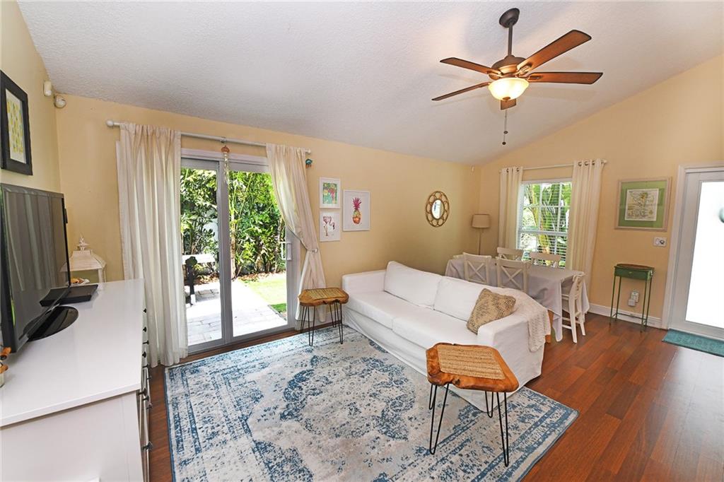 A Tropical Oasis for under $350K! Lovingly maintained 3/2 single family home on spacious south facing canal lot. 1100 light and bright sq ft + approx 100 sq ft. ensuite impact glass sunroom/office serves your work from home needs. Cathedral ceiling in open concept living area provides spacious feel. Master bedroom boasts his & her closets. Garage with deep back bay adds storage space even when parking a car. Low-E impact glass on every exterior window/door and custom solid core interior doors. Beautiful tropical views from all rooms. Private back yard with dining patio, lush landscaping and privacy fence overlooks prestigious golf club and wide canal for kayaking and fishing. No rear neighbors, easement on west side of house and tall hedges increase privacy. See supplemental remarks