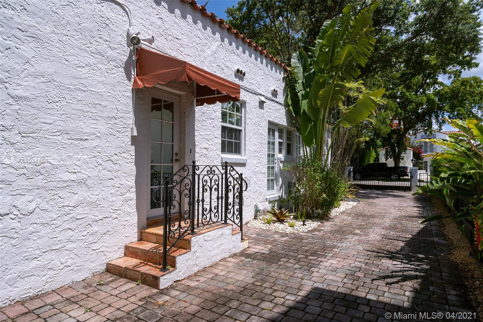 Gated 1920's Old Spanish villa situated on a historic tree-lined street in Coral Gables. Completely remodeled, this charming 4bed/3bath home sits on an oversized lot of 11,250. Hurricane impact windows and doors, dark oak flooring, new white kitchen,new flat roof, fireplace, library, and a custom walk-in wine cellar for 800 of your best bottles. Take a dip in the free form pool or dine al fresco on the oversized patio surrounded by beautiful mature trees and manicured landscaping throughout. Includes a detached large guest house with 1 bedroom, bath, kitchenette, living room, and private entrance. Walking distance to Granada Golf course, blocks from Biltmore Hotel, Downtown Coral Gables. Must see. 3319 soft as per arqutects measurements (attached)