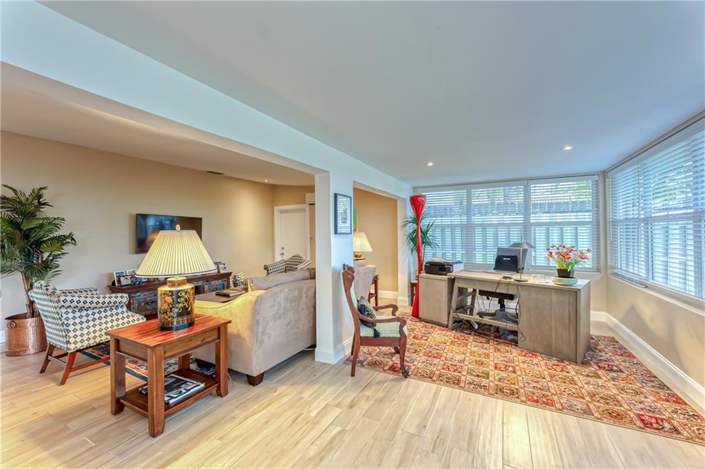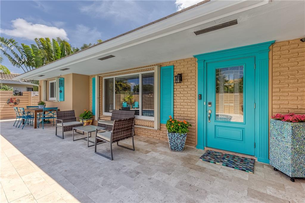 Large Open Contemporary Home in Coral Ridge Isles! Generous 4 bedrooms, 3 bath on a larger lot at 7,538sf. The newly resurfaced solar heated pool with attractive Travertine pavers greets you as you enter your gated compound. Truly open concept living, the kitchen is perfectly situated for entertaining - marble backsplash, quartz counter tops, all stainless steel appliances, cook island & wine cooler. Ceramic plank flooring throughout the house, new central AC system in 2019 with added AC mini split in the 2nd living area. House protected with mostly all impact windows & doors, easy accordion shutters for the back office corner. Two Bedrooms have en suite bathrooms, the other 2 bedrooms share a hall bathroom. Large indoor laundry room too. Welcome home to your private resort!