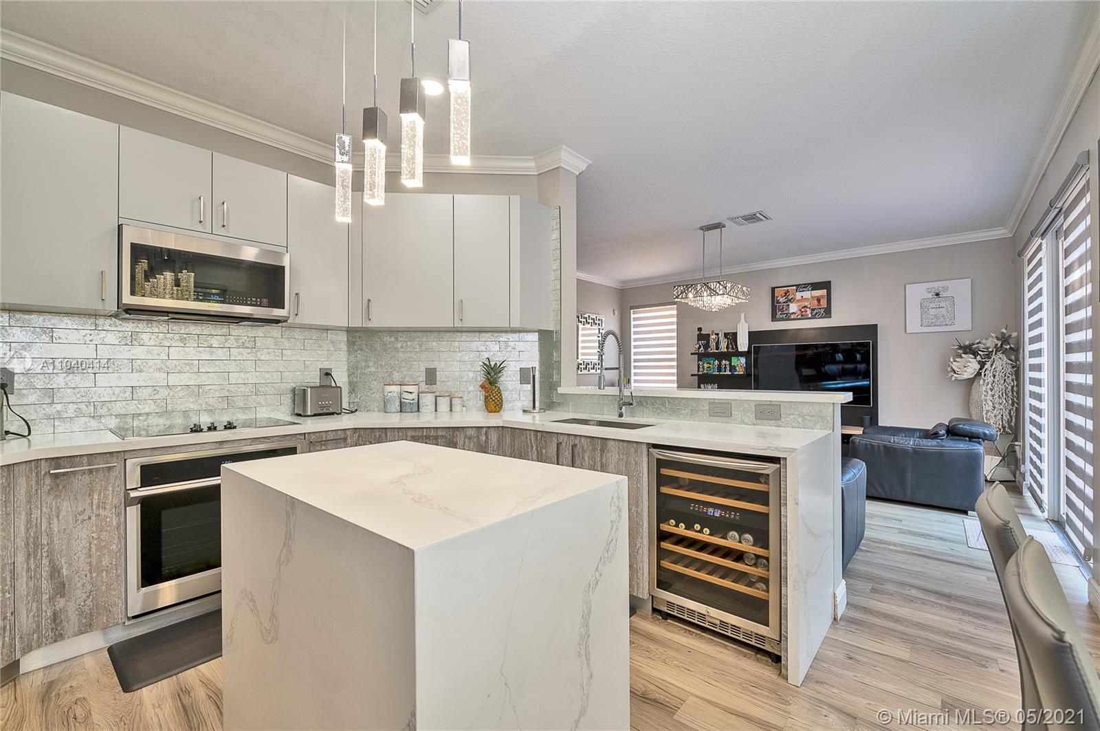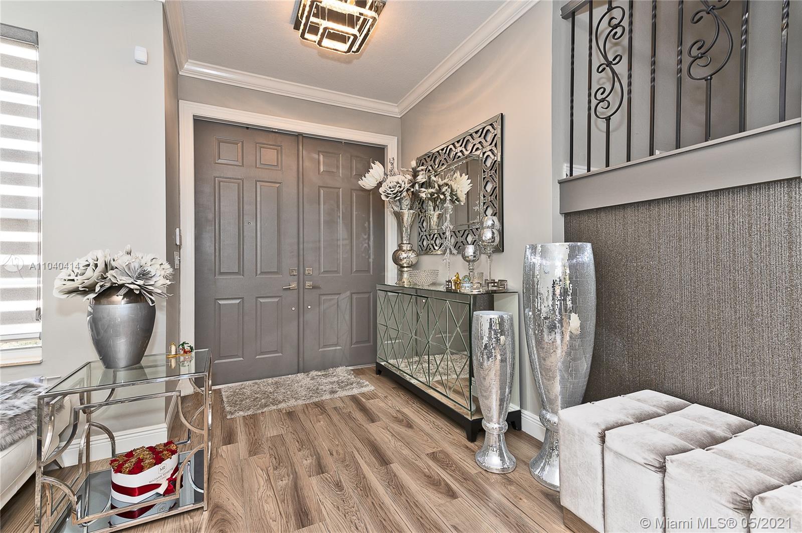 Located in the gated community of Sunset Falls you will find this beautiful 5 bedrooms, 3.5 baths, 3 car garage, pool home featuring: *New 2020 modern Kitchen with quartz counter tops, all new appliances with state of the art Samsung WiFi ready refrigerator with smart touch screen, *2 new renovated bathrooms with rain shower heads, *Modern vinyl floors down stairs and hallway + engineer wood in all bedrooms, *Upgraded doors, *Modern zebra blinds, *Modern light fixtures, *Upgrade stairs railings, *2019 A/C unit on 2nd floor, *2019 washer and dryer *Extended paved patio area with covered gazebo & wet bar *Baby guard fence pool system , *Garage with built in cabinets, storage room and porcelain tiles, *Accordion shutters, *Upgraded landscaping and more!