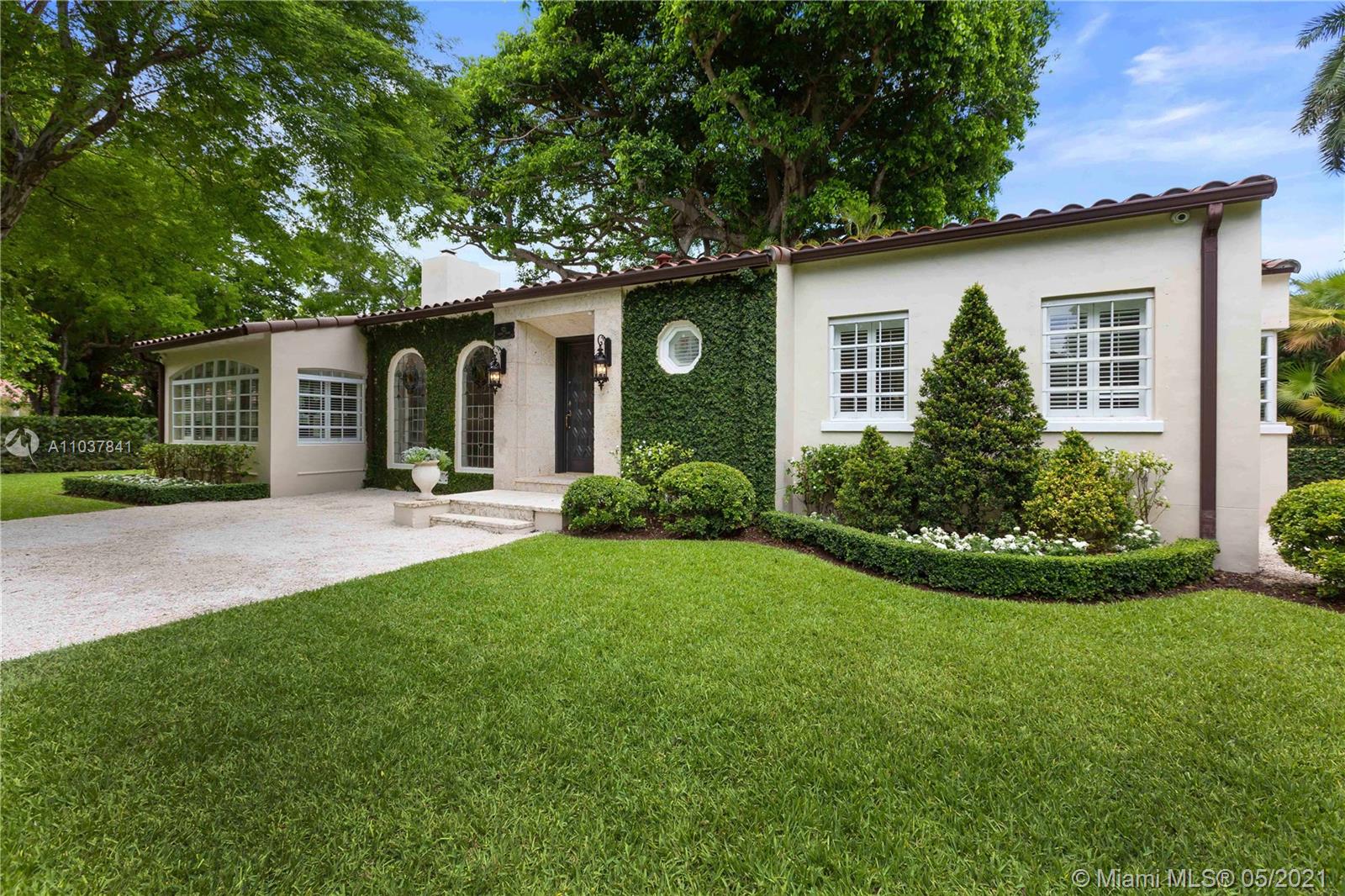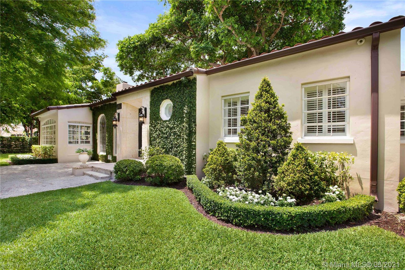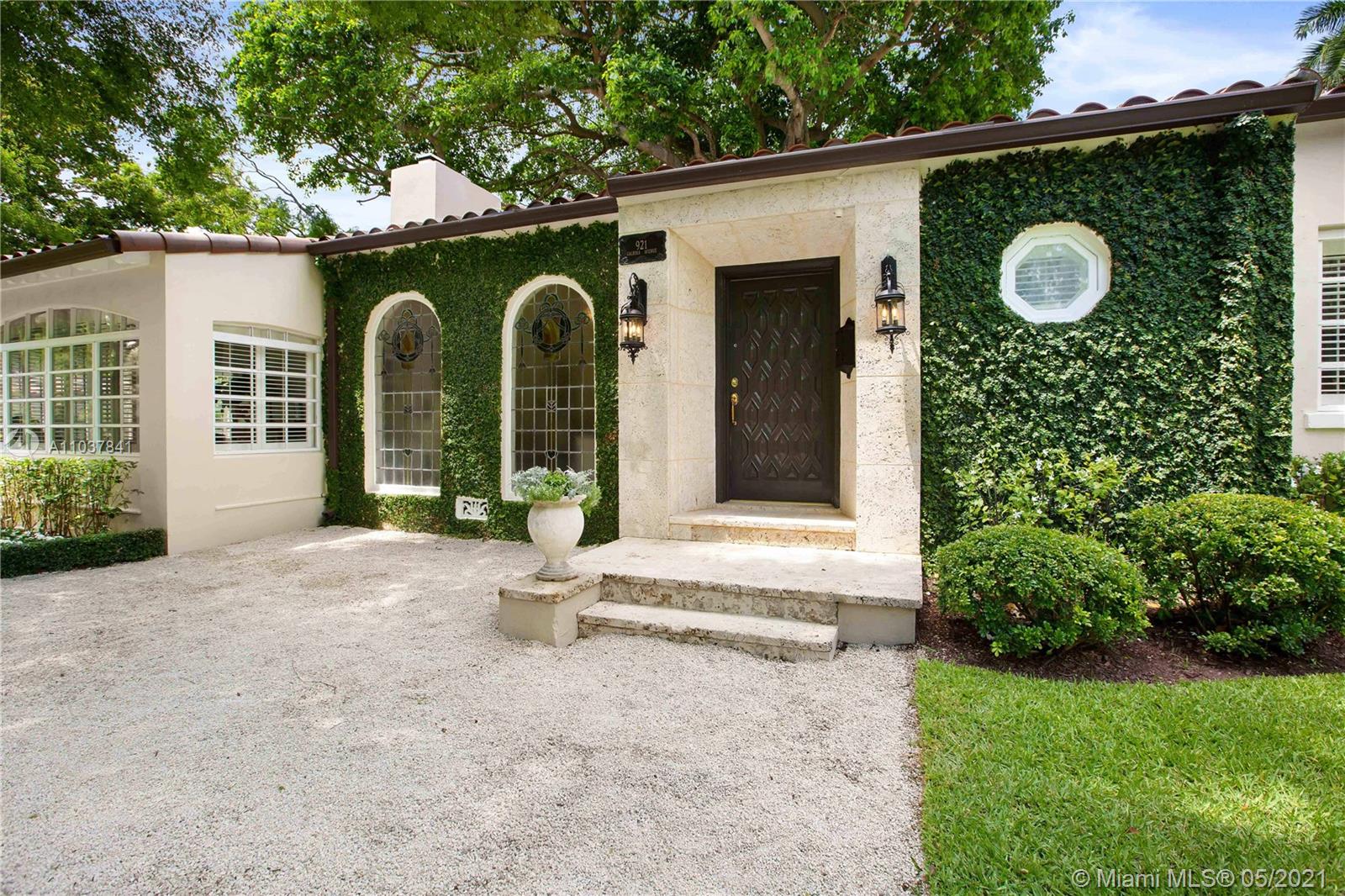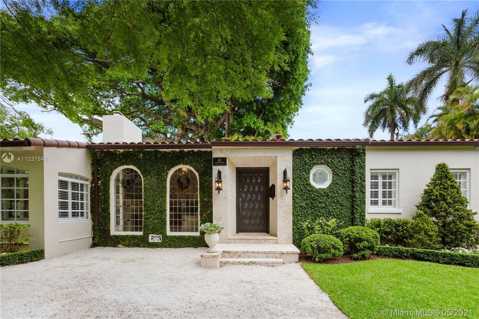 Fall in love with this Coral Gables home in the prestigious Golden Triangle neighborhood. 1,847sf (liv) per appraisal. Beautiful, charming and impeccably maintained Old Spanish. This Updated 3BR/3BA features authentic architectural elements, archways, hardwood/marble floors, crown moldings, stained glass. Gracious living RM with wood-burning fireplace & vaulted ceiling. Formal dining room, eat-in kitchen with high end finishes & appliances. Cozy sunroom that could function as a den/office/playroom. Situated on a beautifully landscaped large corner lot with wonderful outdoor patio spaces, ample room for a pool or add on. Quiet, low traffic, serene street. Absolute prime Gables location very close to Biltmore Hotel, parks, best schools, shopping, dining & more!