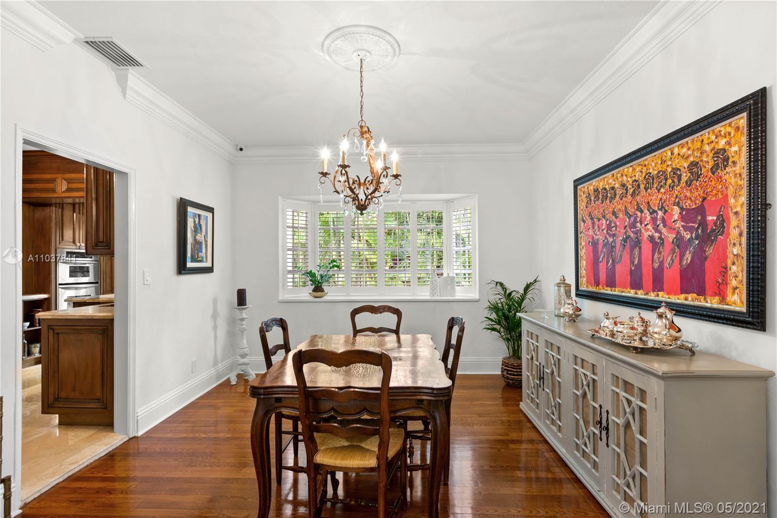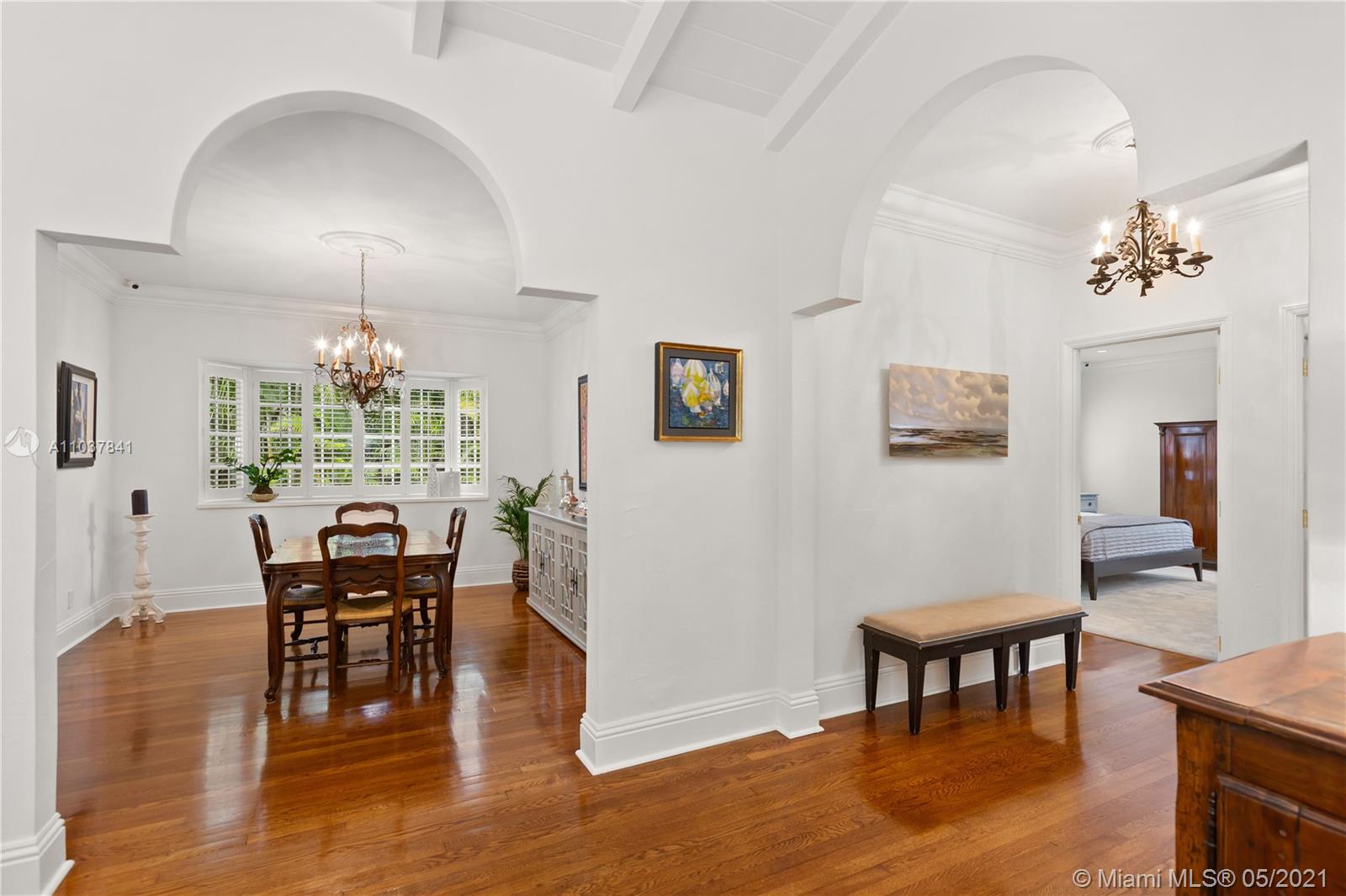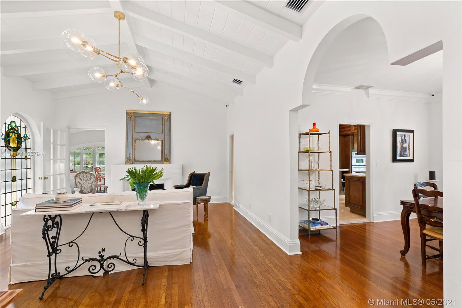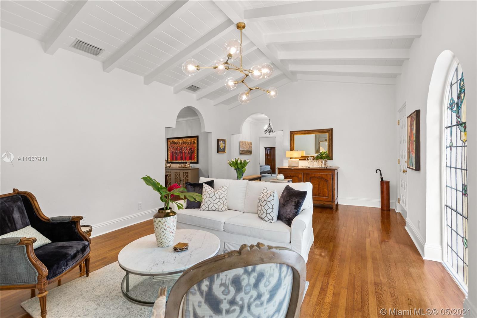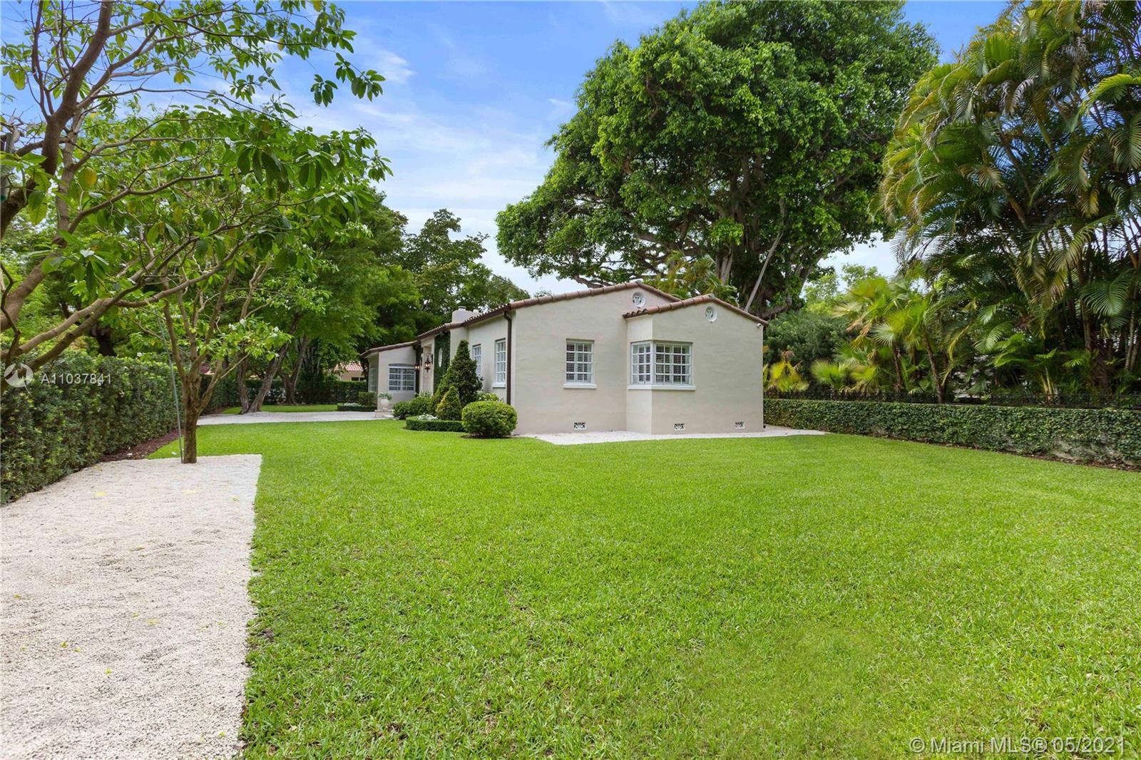 Fall in love with this Coral Gables home in the prestigious Golden Triangle neighborhood. 1,847sf (liv) per appraisal. Beautiful, charming and impeccably maintained Old Spanish. This Updated 3BR/3BA features authentic architectural elements, archways, hardwood/marble floors, crown moldings, stained glass. Gracious living RM with wood-burning fireplace & vaulted ceiling. Formal dining room, eat-in kitchen with high end finishes & appliances. Cozy sunroom that could function as a den/office/playroom. Situated on a beautifully landscaped large corner lot with wonderful outdoor patio spaces, ample room for a pool or add on. Quiet, low traffic, serene street. Absolute prime Gables location very close to Biltmore Hotel, parks, best schools, shopping, dining & more!