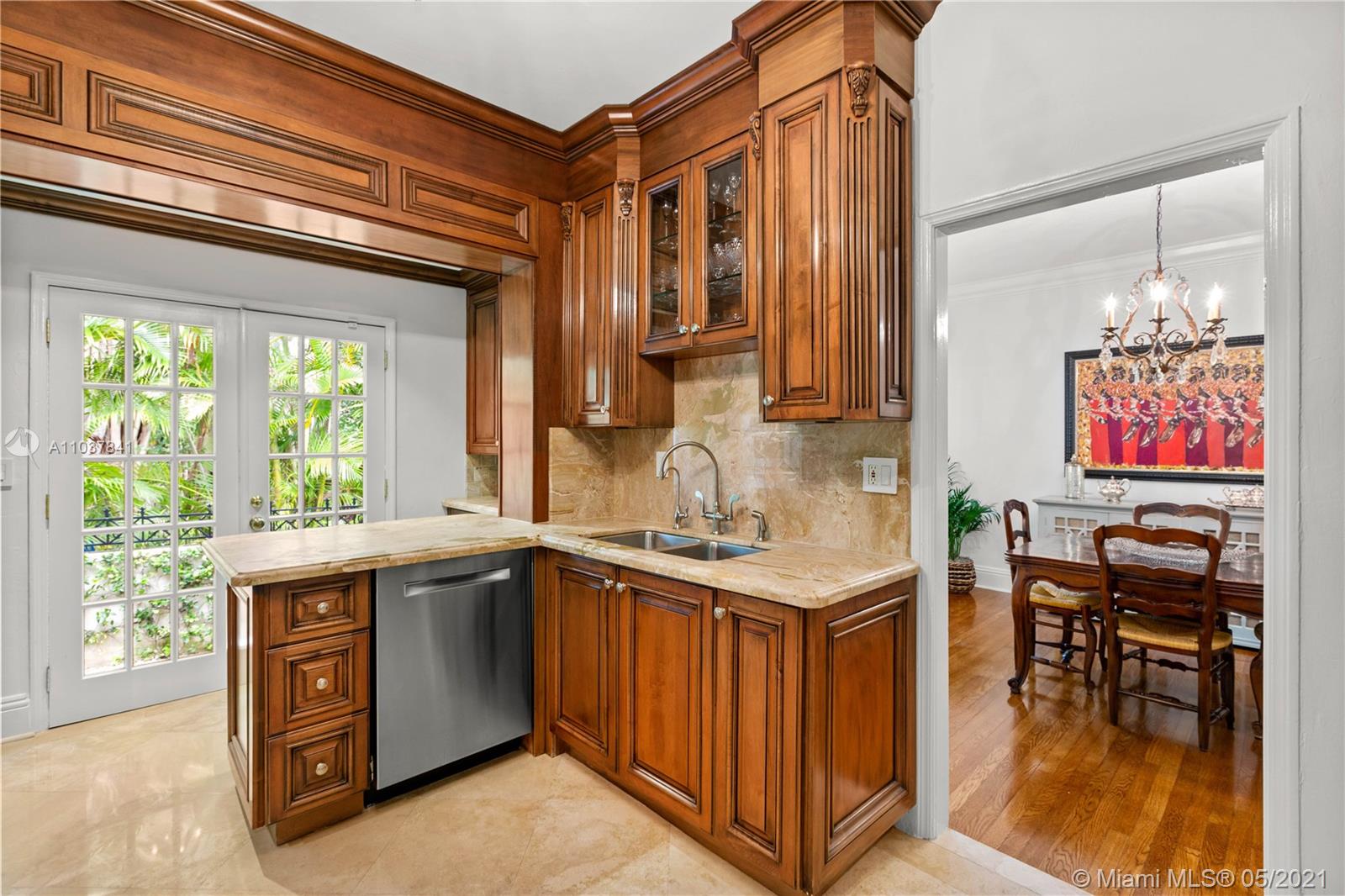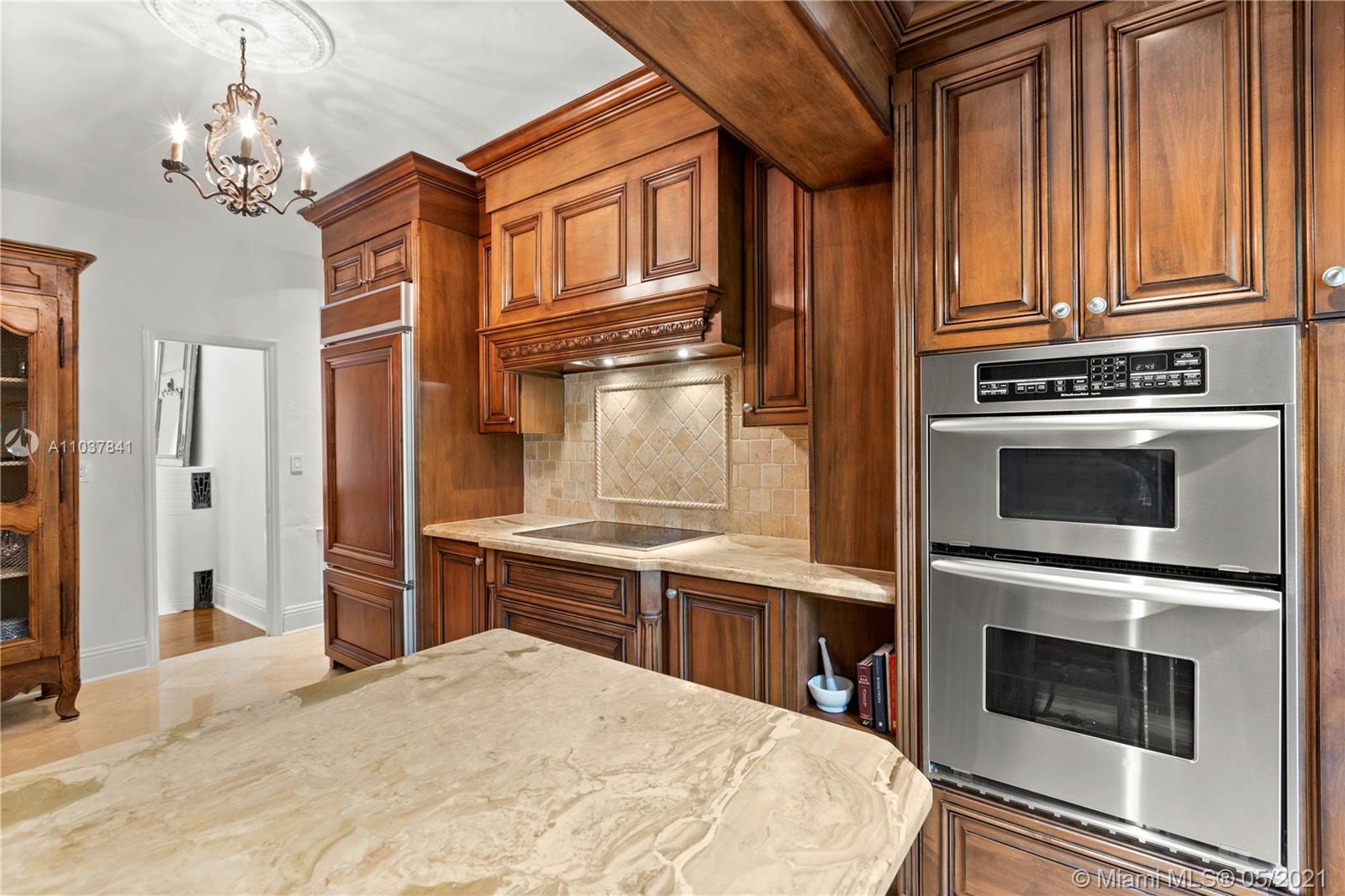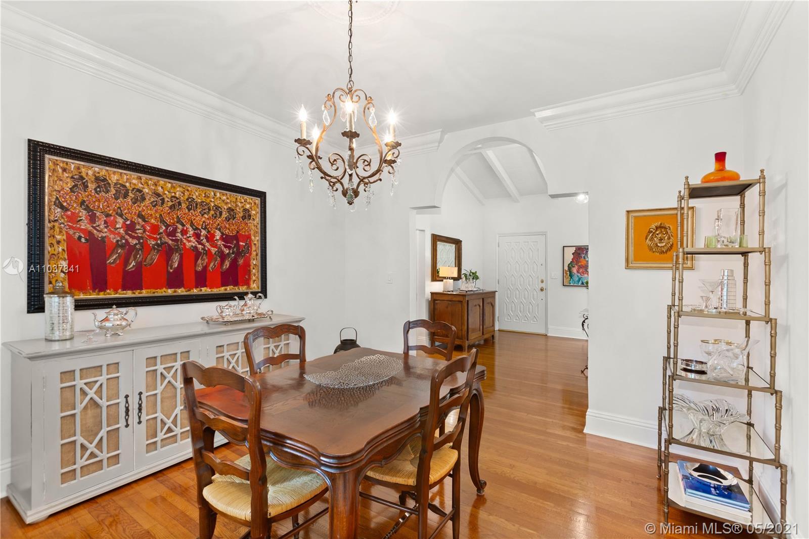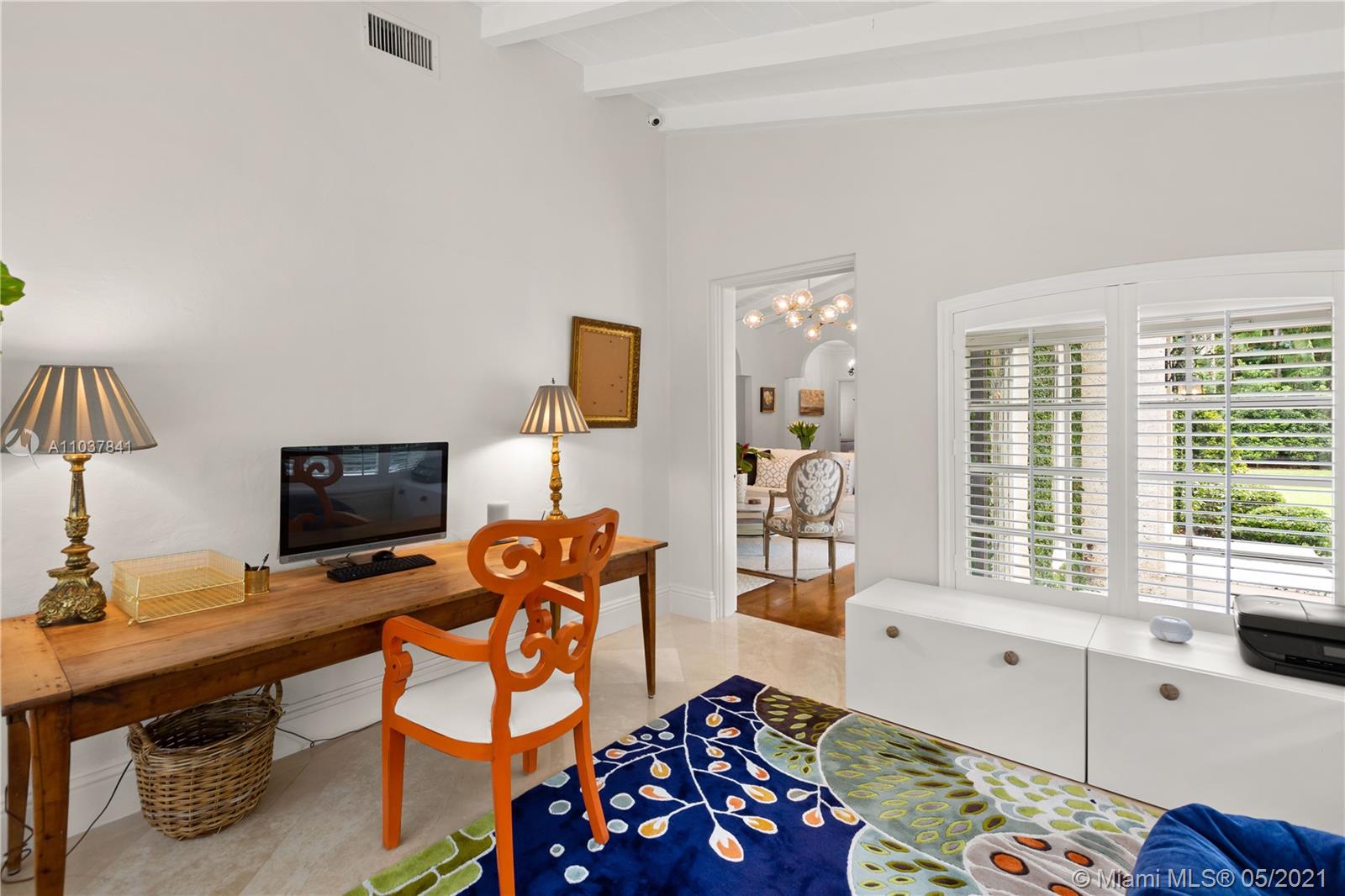 Fall in love with this Coral Gables home in the prestigious Golden Triangle neighborhood. 1,847sf (liv) per appraisal. Beautiful, charming and impeccably maintained Old Spanish. This Updated 3BR/3BA features authentic architectural elements, archways, hardwood/marble floors, crown moldings, stained glass. Gracious living RM with wood-burning fireplace & vaulted ceiling. Formal dining room, eat-in kitchen with high end finishes & appliances. Cozy sunroom that could function as a den/office/playroom. Situated on a beautifully landscaped large corner lot with wonderful outdoor patio spaces, ample room for a pool or add on. Quiet, low traffic, serene street. Absolute prime Gables location very close to Biltmore Hotel, parks, best schools, shopping, dining & more!