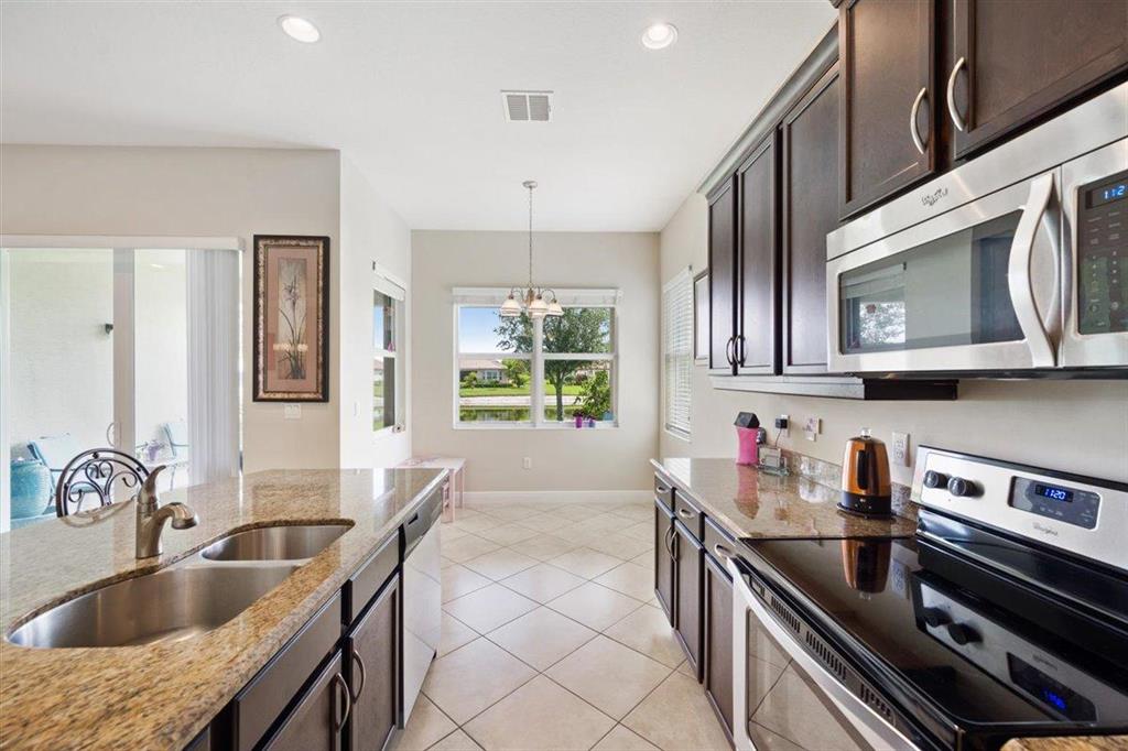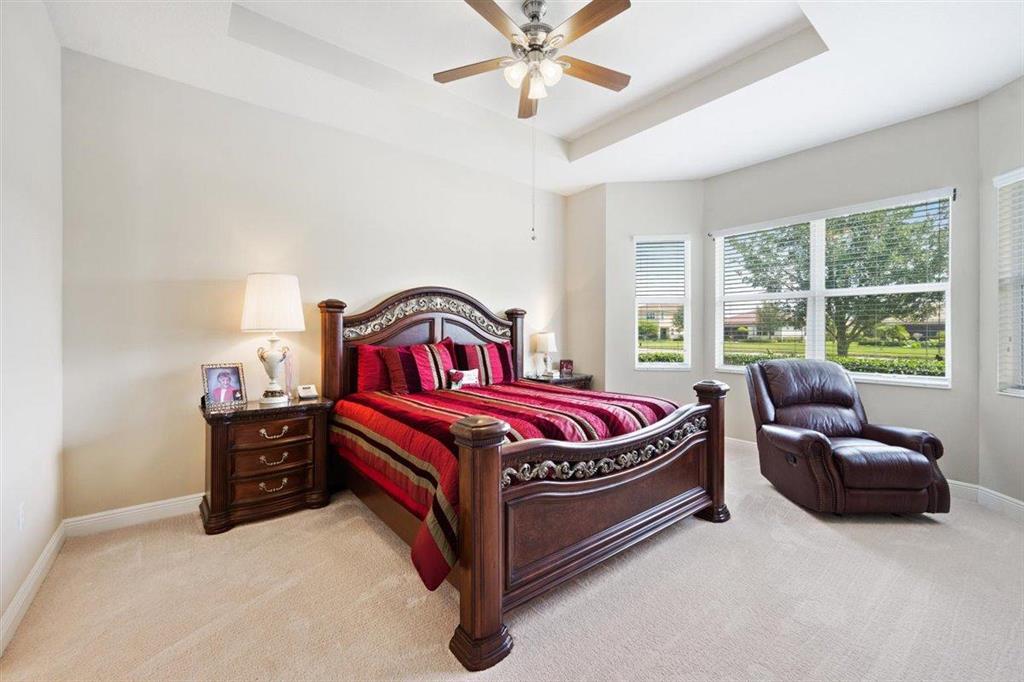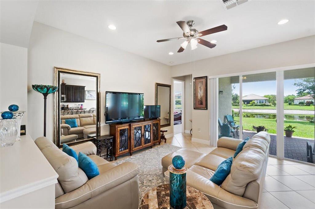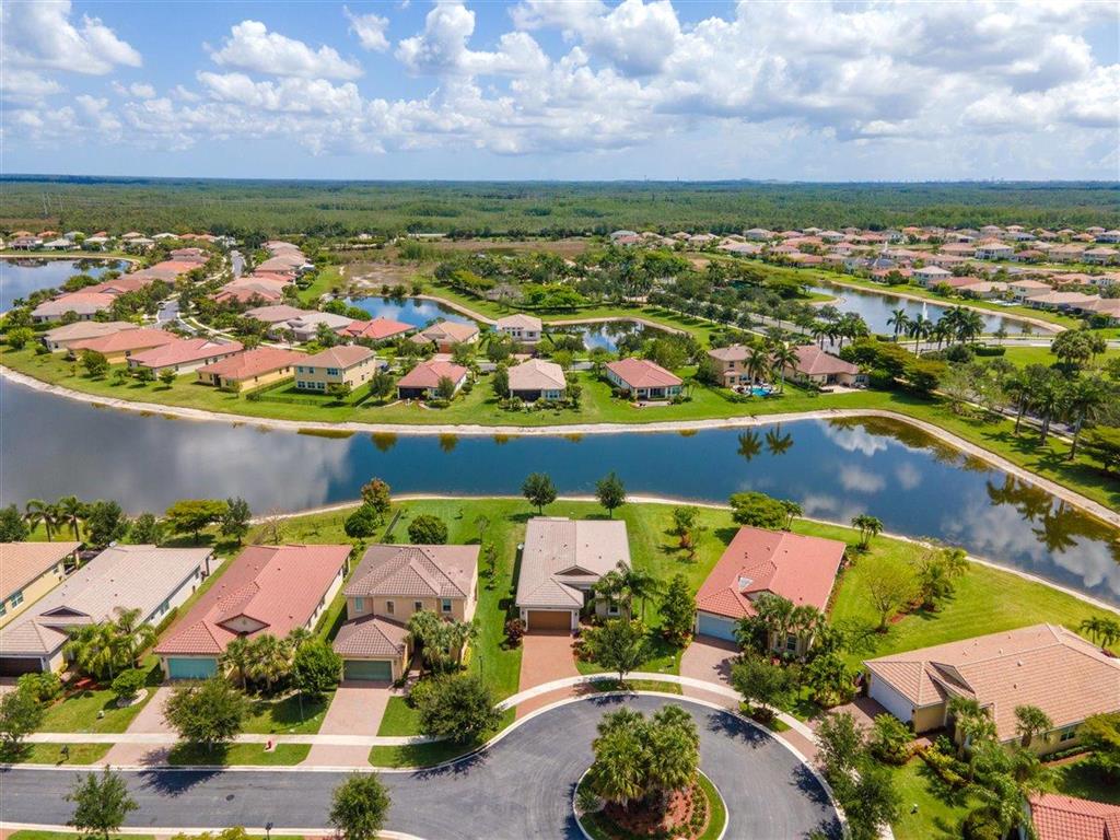 Beautiful lakefront, Barcelona Model, features 3 bedrooms 3 baths. Located on private cul-de-sac and sitting on one of the most beautiful lots in the community. Neutral ceramic tile laid diagonally throughout the main living area.Gorgeous landscaping and panoramic lake views surrounds this well maintained home with all ''impact glass windows, sliders and recently installed impact-glass entry double doors''. Gourmet kitchen features granite counter top center island (breakfast bar), nook and SS appliances. New high efficiency AC system installed July of 2020 and seamless gutters in 2019. The expanded driveway will give you plenty of additional parking and was resurfaced and sealed just about a month ago and offers a 2 year warranty. The home has gorgeous lake views from living room
