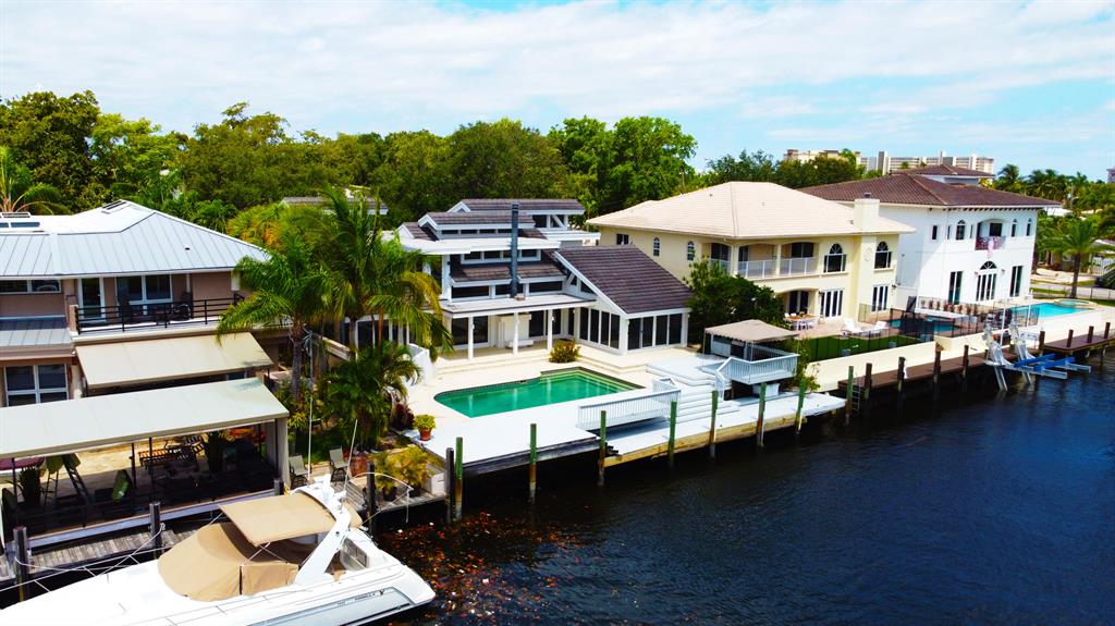 First floor living with 25 foot ceilings, impact windows throughout home and private 72 foot dock with NO FIXED BRIDGES. Outdoor area includes dockage, water views, summer kitchen, pool, jacuzzi, outdoor shower and covered patio. Second floor features two en suites with bonus room over looking the great room below. Flat roof above patio can be converted into a balcony. New roof 2014.