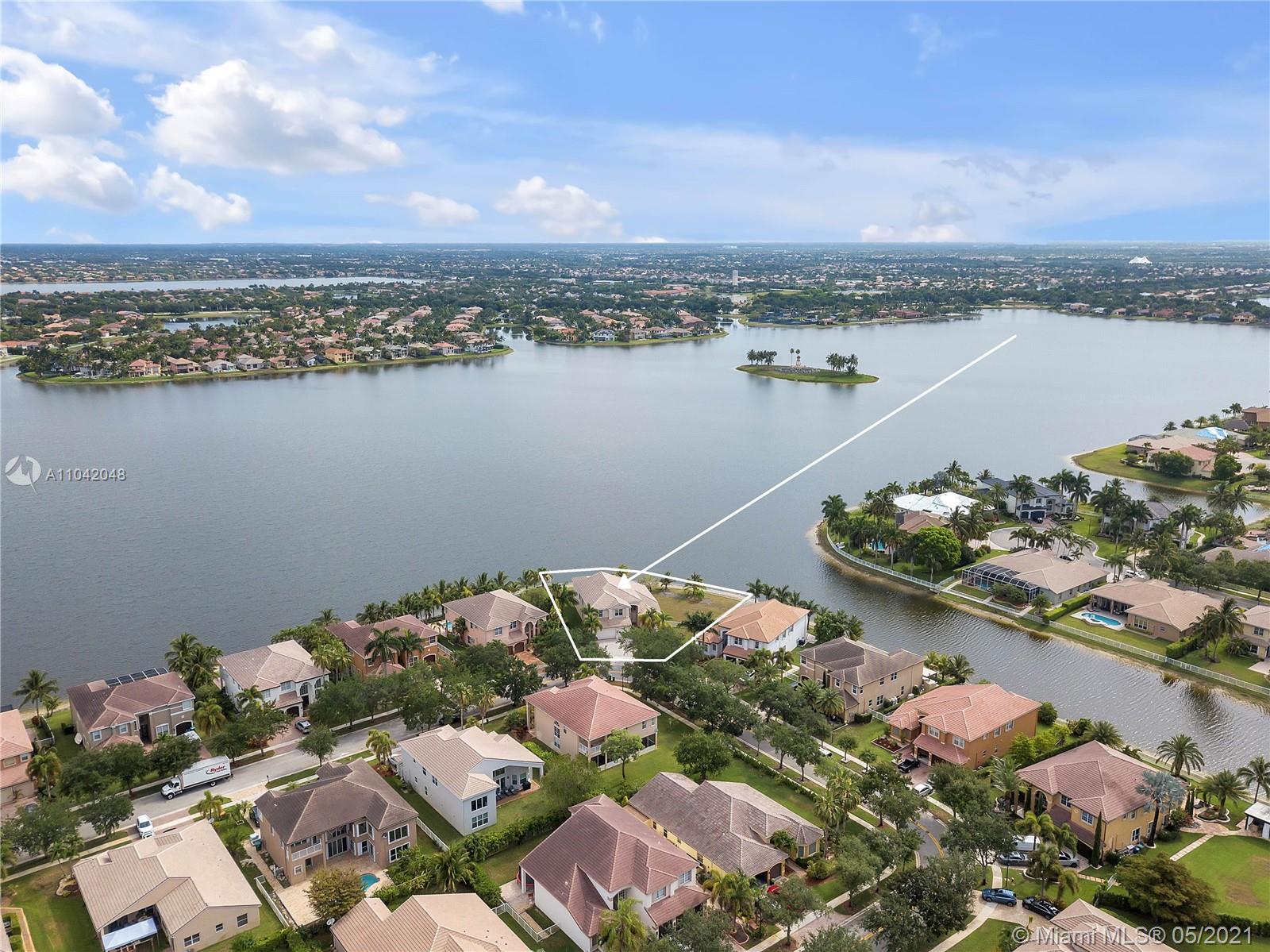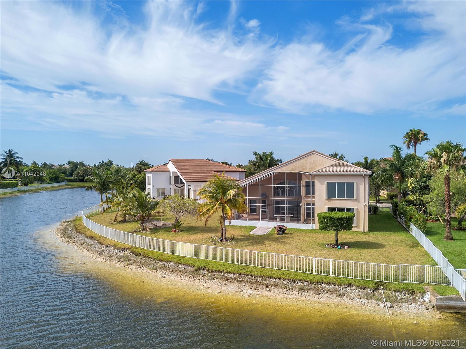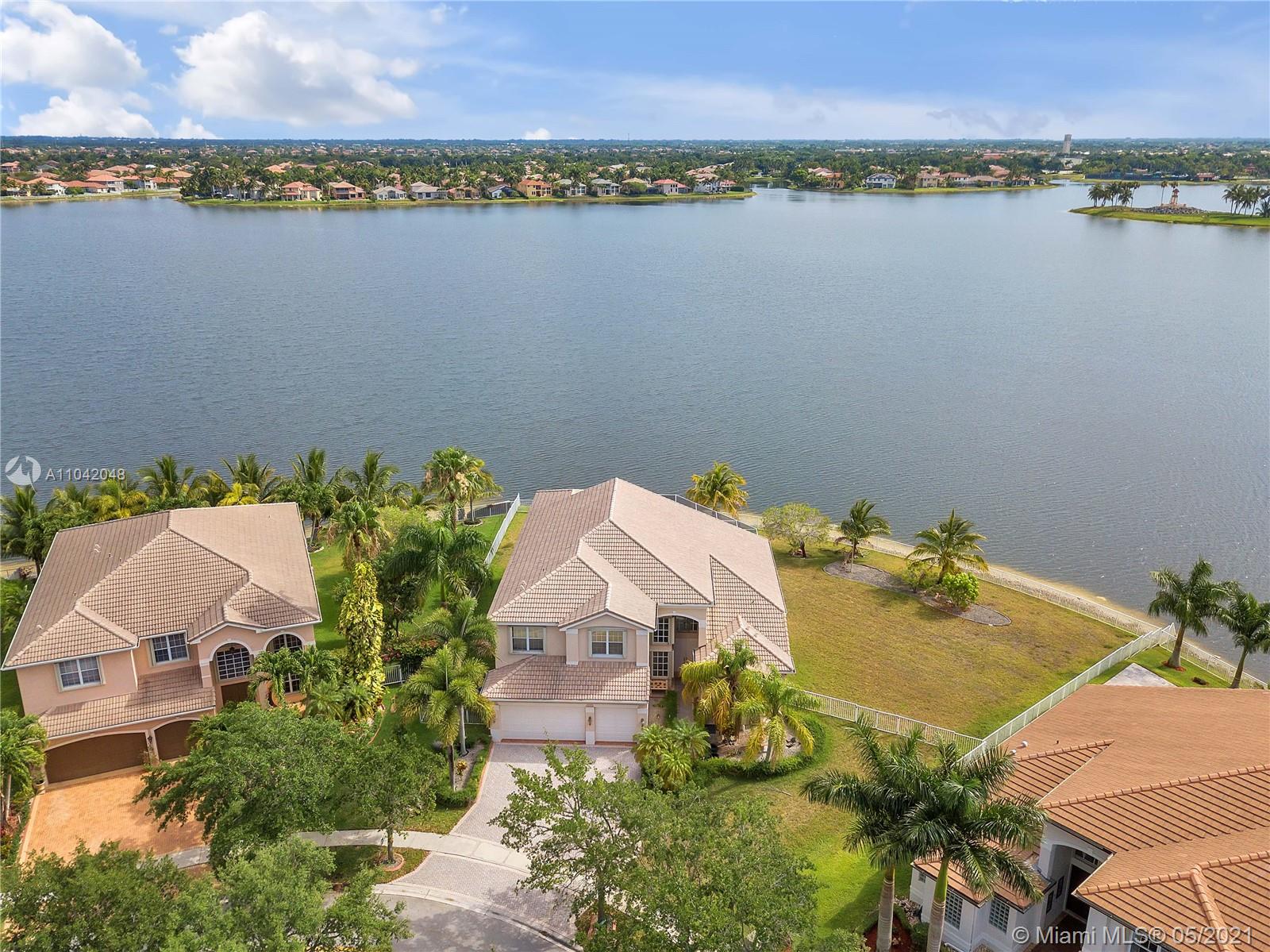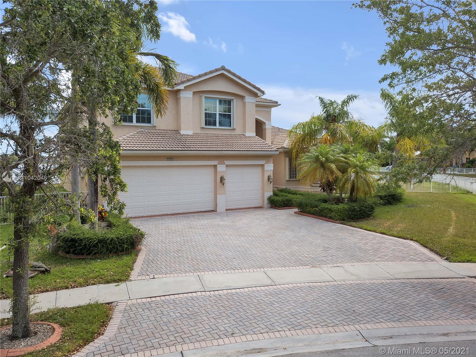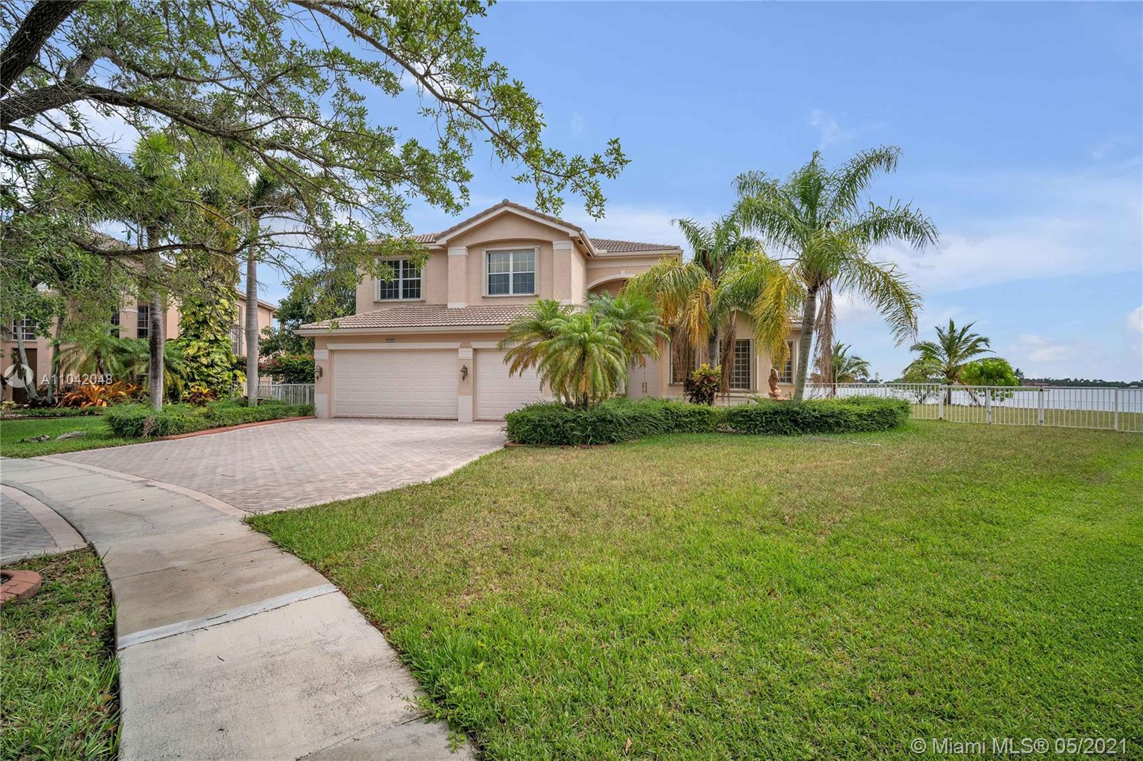 The LARGEST CORNER LOT in Miramar, Sunset Lakes! Well kept Gated community and near to top rated schools! Great commuting distance to Miami and close to shopping malls, restaurants, and entertainment. This home features a 5 Bedrooms, 5 Bathrooms with 3 car garage. Master suite and 1 bedroom with 3 full bathrooms downstairs. This home is very spacious with vaulted/volume ceilings, tile flooring, a large kitchen with center island, and wood cabinetry. A large Loft on the second floor; enough space to put an additional indoor gym or office room. Screened in porch with the most amazing, stunning views of the lake! Let this be your next tropical oasis from all the noise! UPCOMING SHOWINGS START OPEN HOUSE SAT 5/22: 12-4PM & SUN 5/23: 1-5PM