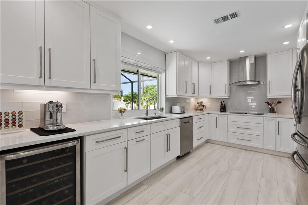 Beautiful Imperial Point pool home on an oversized corner lot! The sellers carefully planned out every detail in this full home renovation. New features include: roof (2020), fascia, seamless gutters, impact windows and doors, flooring, kitchen, baths, hybrid water heater, A/C, motorized shades, central vac, security cameras, garage door, screened enclosure, summer kitchen, synthetic grass and much more. The fresh white kitchen is complete with window over the sink and breakfast bar. Neutral porcelain flooring runs throughout the entire home. This home is in pristine condition and completely move-in ready!