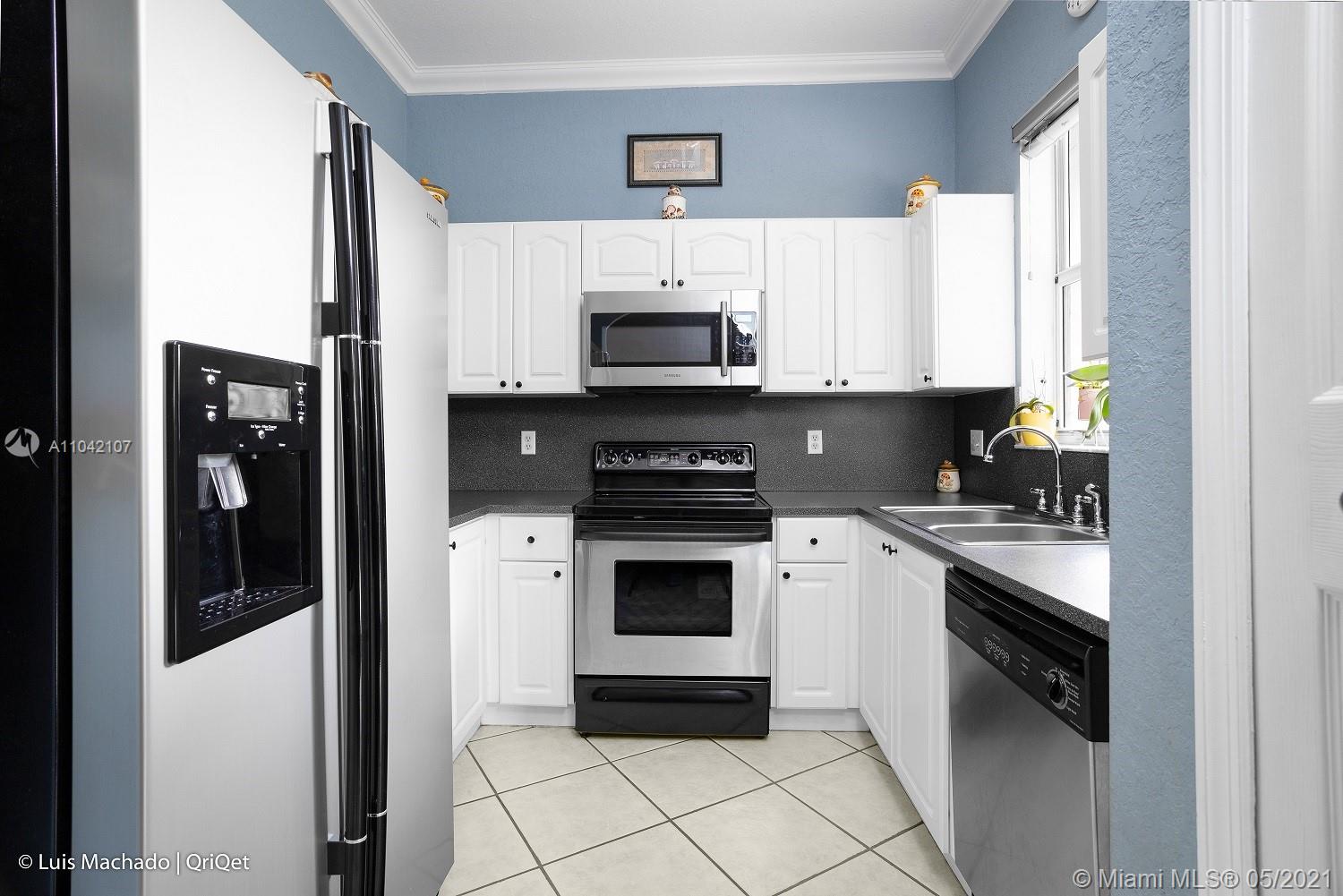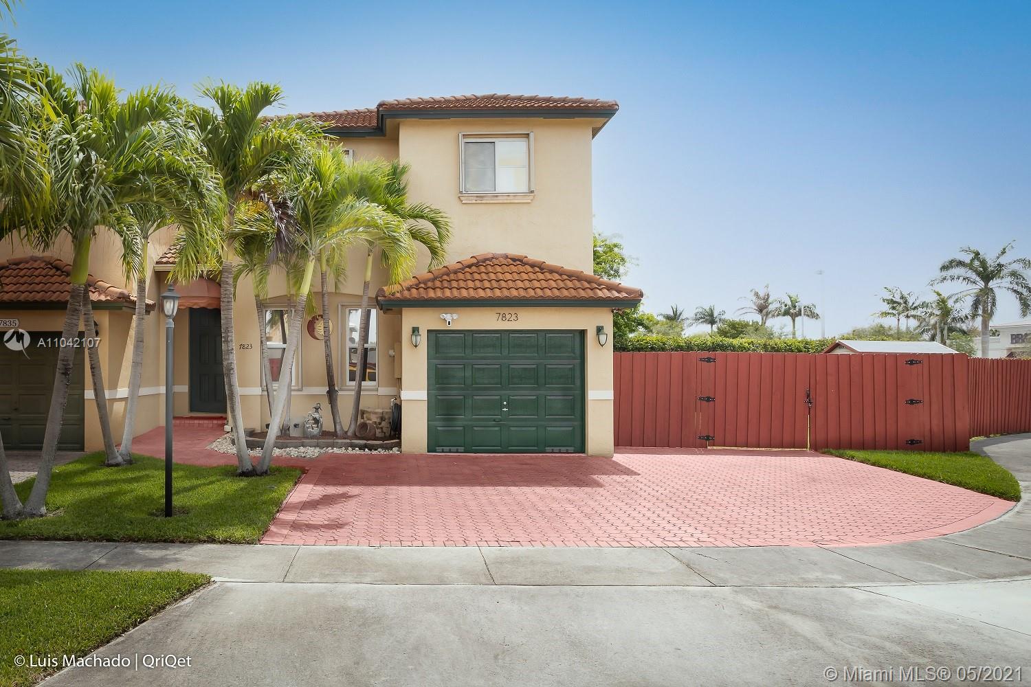 Truly one of a kind, spacious, meticulously maintained 3 bed, 2.5 bath, 1 car garage townhouse situated on oversized, ** 5,235 sf fenced lot with room to park a boat or additional vehicles ** Easy access to the back yard through a wide double gate. Extra wide driveway with room for 3 cars. The property features diagonal laid tile floors throughout the first floor, wood kitchen cabinets, stainless steel appliances, LED energy efficient lighting, crown molding, new wood floors on the stairs as well as the common area upstairs, carpet in the bedrooms, New A/C (May 2020), new rear fence (2020), new washer/dryer (2019), accordion hurricane shutters, sprinkler system. Excellent location close the I-75, Turnpike and 826, close to shopping, dining and entertainment.