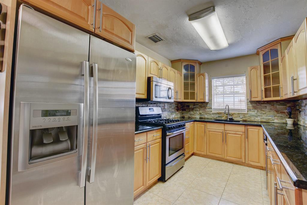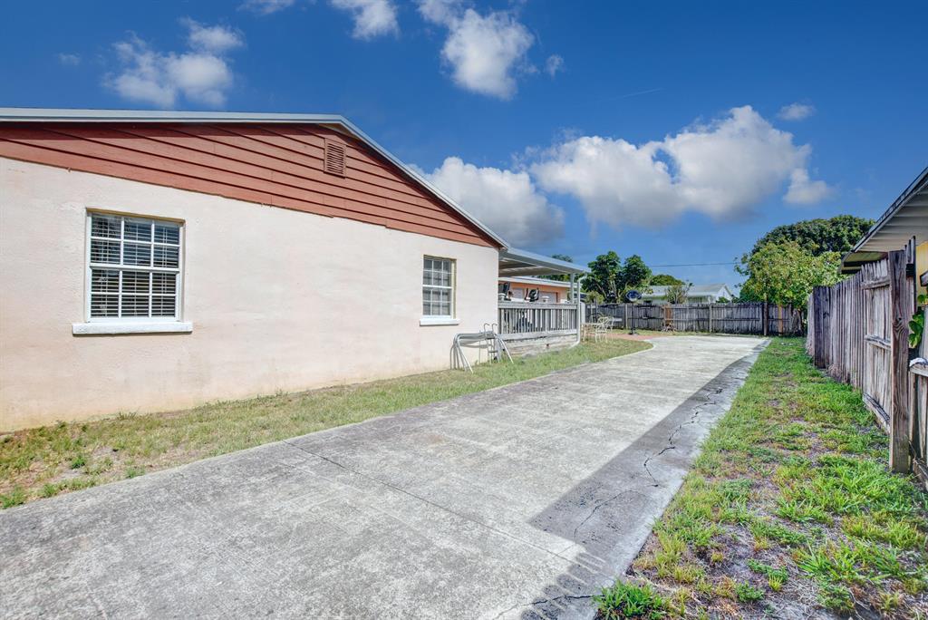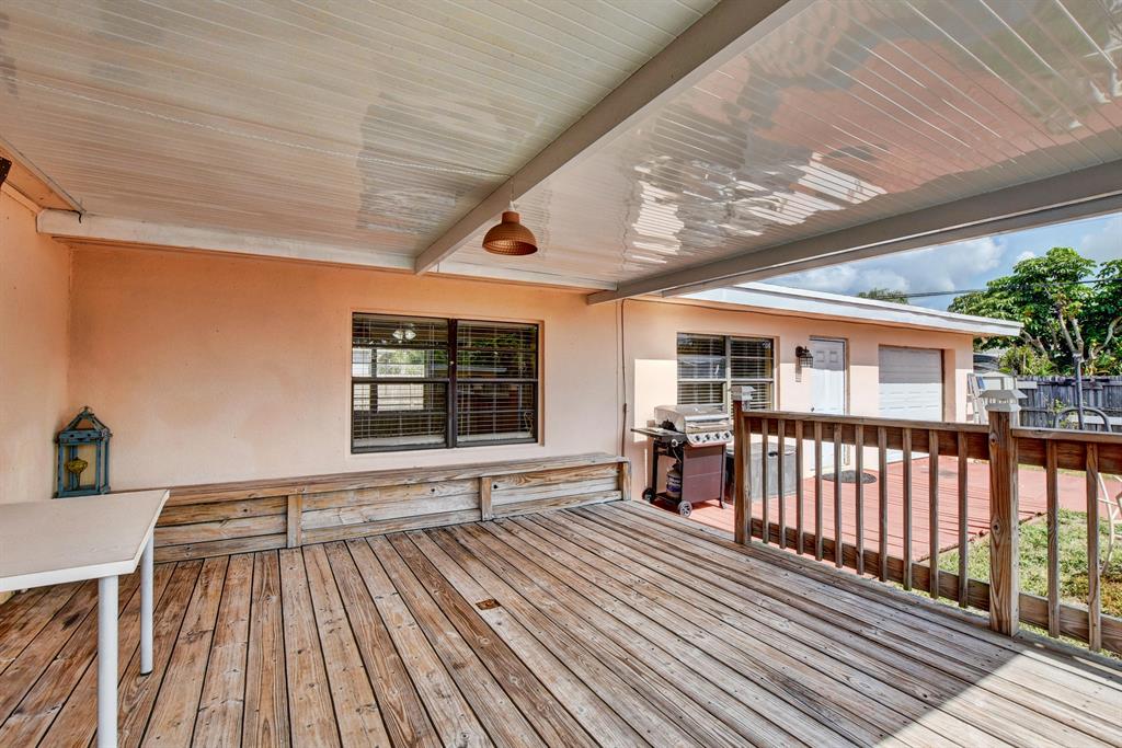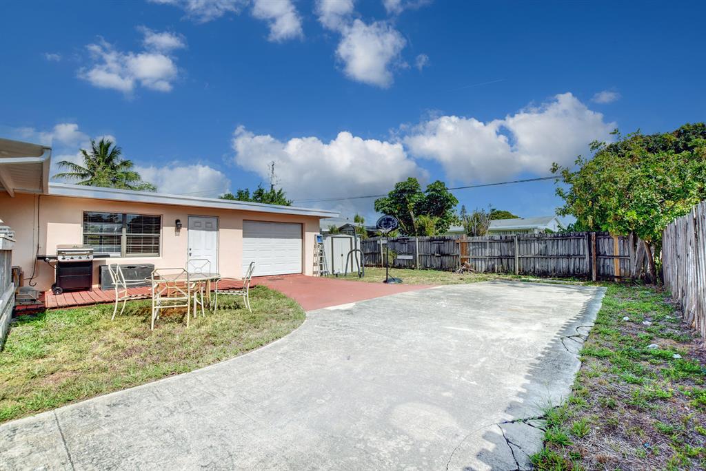 This spacious gem boasts 4 bedrooms, 2 bathrooms and a garage located in West Palm Beach. Spacious living areas including a large open living room and an updated kitchen with stainless steel appliances and wood cabinetry. Wood and tile flooring throughout. Gas stove and gas dryer powered by a new gas tank. Huge fenced in yard with covered and new built wooden deck, double door gated entrance and a storage shed. The lot has more than enough room for all of your toys, trucks, boats, trailers, and fruit trees. Centrally located- short drive to area beaches, I95, airport and shopping. Best part is NO HOA.