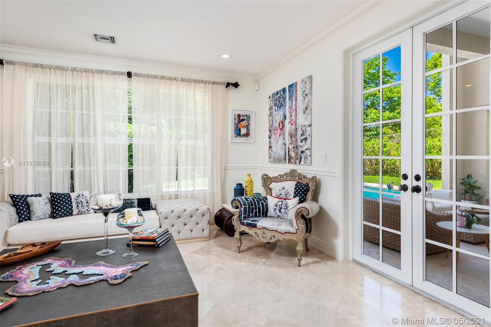 Gorgeously updated 5BR/4.5BA Pinecrest home on .5 acre in the Red Oaks gated community. Each room & bath are unique. Interior designer high end finishes, lighting, millwork & built-ins throughout, marble & wood floors, volume ceilings, impressive staircase, gourmet kitchen, huge closets,luxurious master bth. All impact glass. A true Chef's kitchen w/quartz countertops, spacious island & inviting breakfast rm. Master bdrm w/lg balcony, sitting area, 2 walk-in closets. 2car gar & laundry rm. Spacious landscaped yard, htd swimming pool & wraparound covered terrace perfect for entertaining. A very private setting in gated quiet cul-de-sac of only 5 residences. Well located in desirable NE Pinecrest near the best in Schools, Gardens, Marinas, Restaurants, Tennis, Community Events & Shopping.