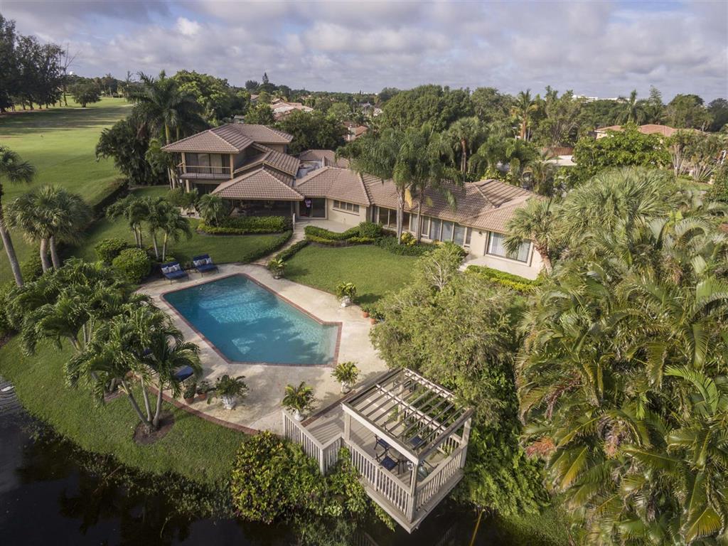 In a prime location in East Boca Raton, sitting on a 1/2 acre lot at the end of a cul-de-sac, overlooking the lake sits this once-in-a-lifetime opportunity! This sprawling estate has everything you have been looking for; 5 bedrooms, 4.5 baths and nearly 4500sqft under air. As you enter this home, it feels like your own private oasis, with golf course and lake views. Master bedroom is upstairs with a large walk in closet and huge master bath. Enjoy the expansive view of the lake & golf course from the master bedroom balcony. A three bedroom wing is on the opposite side of the home. Beautiful custom updated bathrooms and laundry room. The backyard is a private oasis complete with patio, oversized private pool, and waterfront gazebo. Call today for a private showing, this will not last long!
