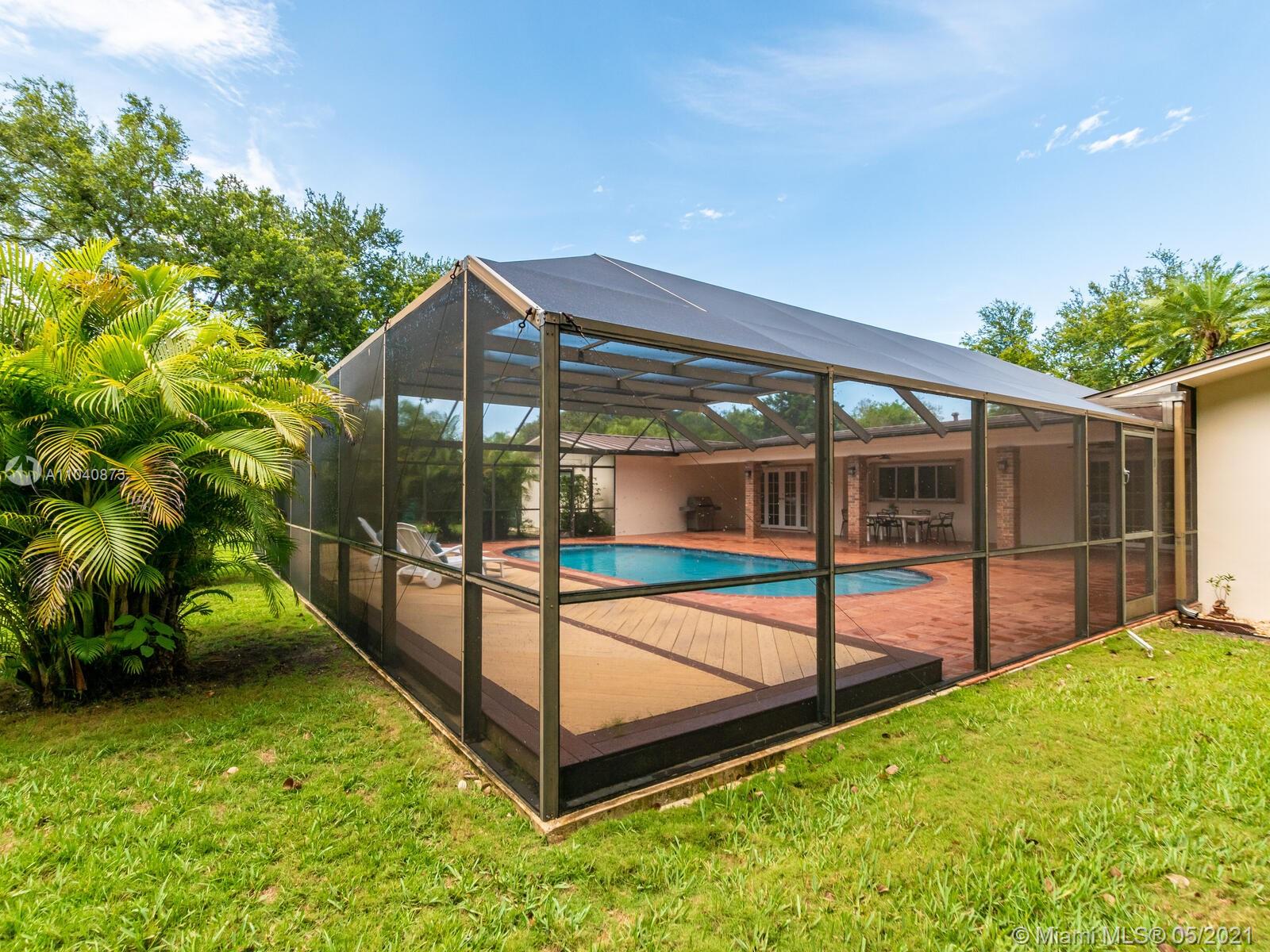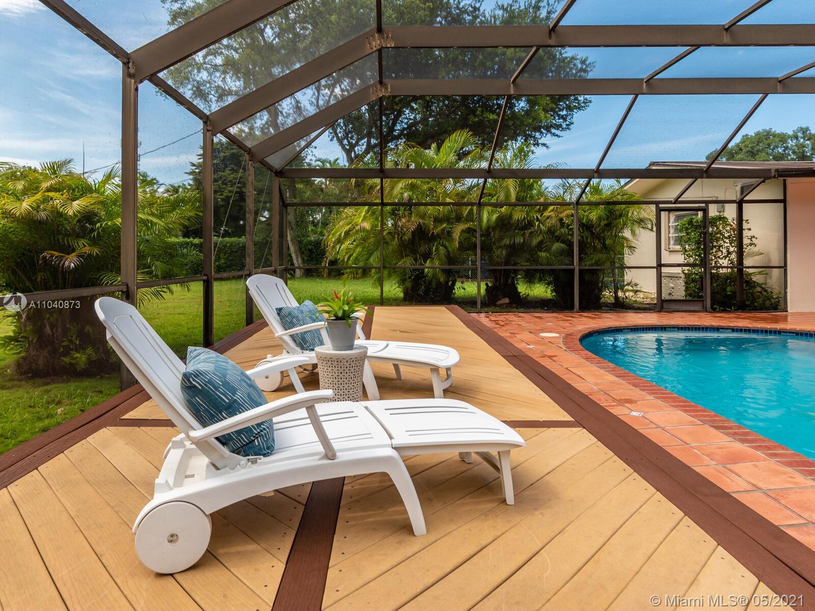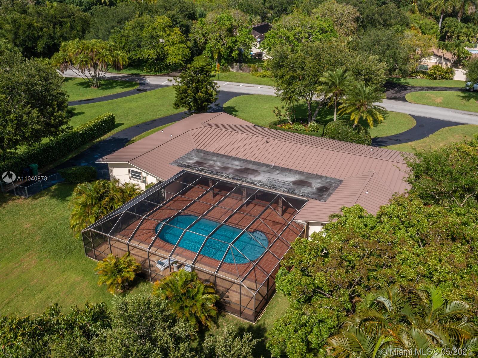 The perfect Pinecrest 4BD 3BA home plus office is set beautifully upon a deep .75 landscaped acre on a peaceful street surrounded by lovely properties. Functional split bedroom floor plan offers 2755 sf liv area with 3272 Adj sf. Light-filled French doors open from family & dining rooms to large, covered patio & dome screened pool offering a wonderful entertaining venue. Aluminum roof, accordian shutters, big circular drive, 2-car gar & separate laundry room. Bright white kitchen & breakfast area with big window views of the sparkling pool & expansive yard, lots of room to play! Within walking distance to the top-rated Palmetto & private schools, groceries, restaurants, cafes & shops. This lovely home has been meticulously maintained for by the same owners since 1987. Not in a flood zone.