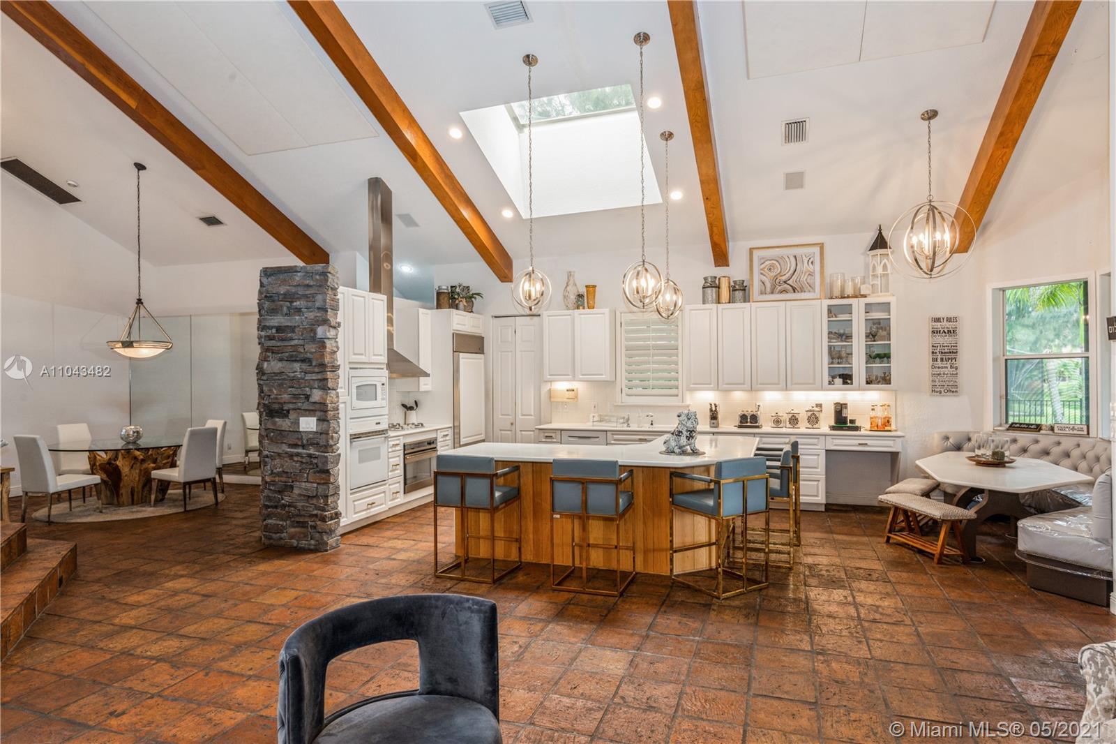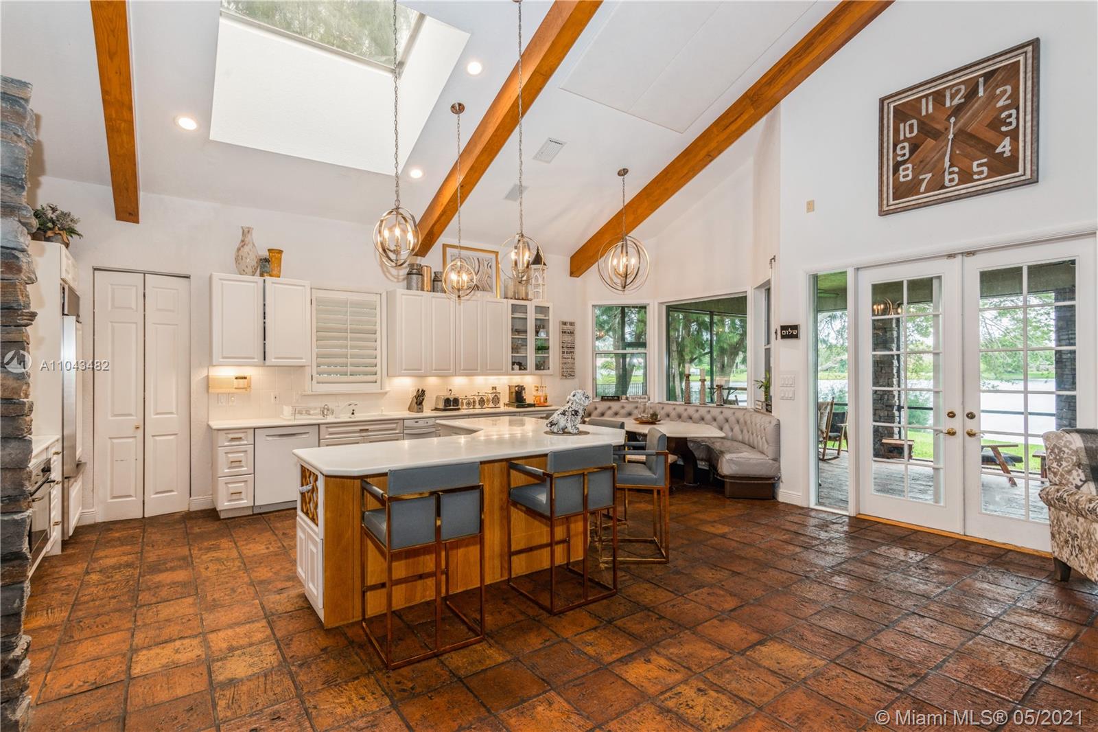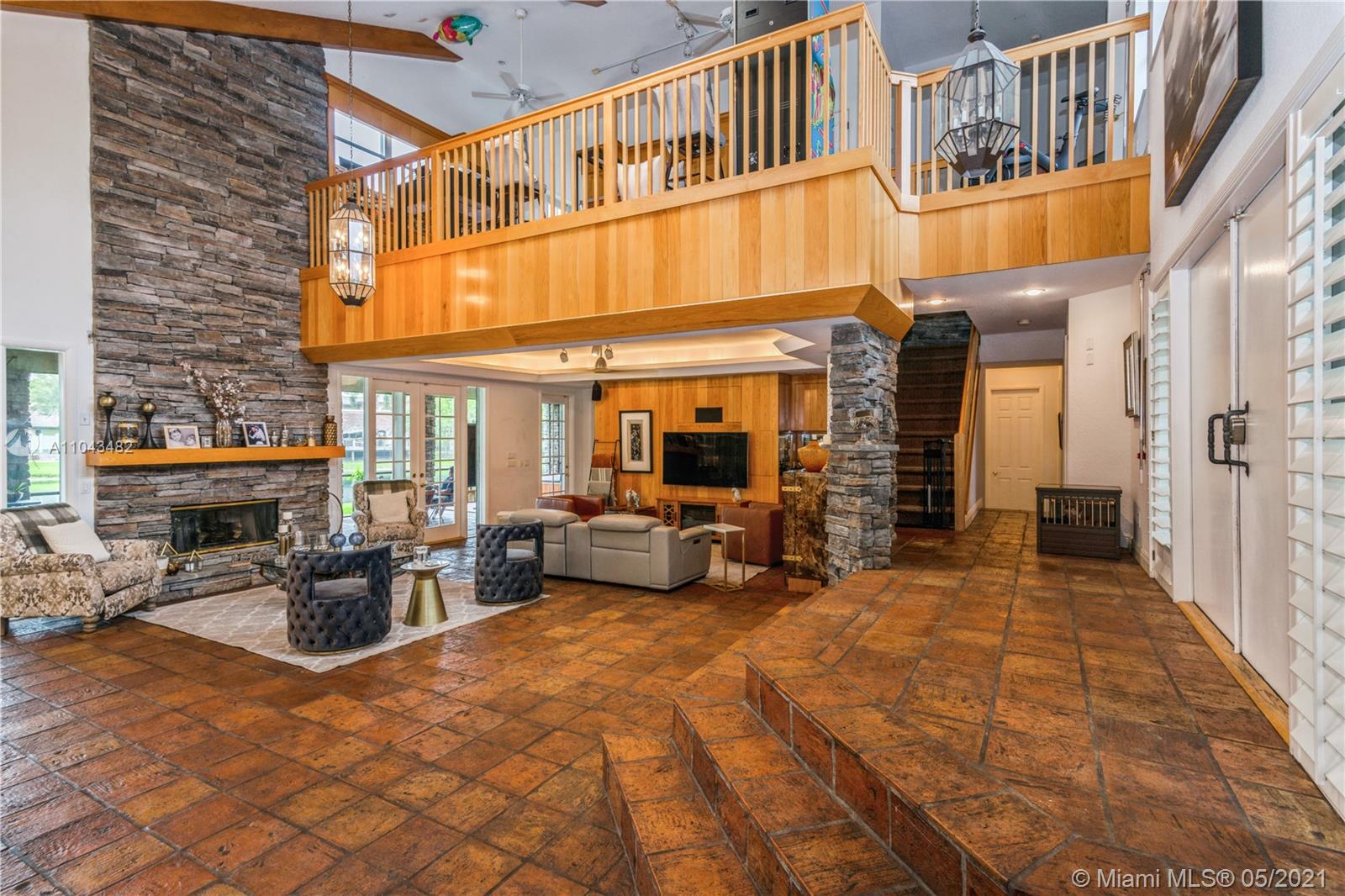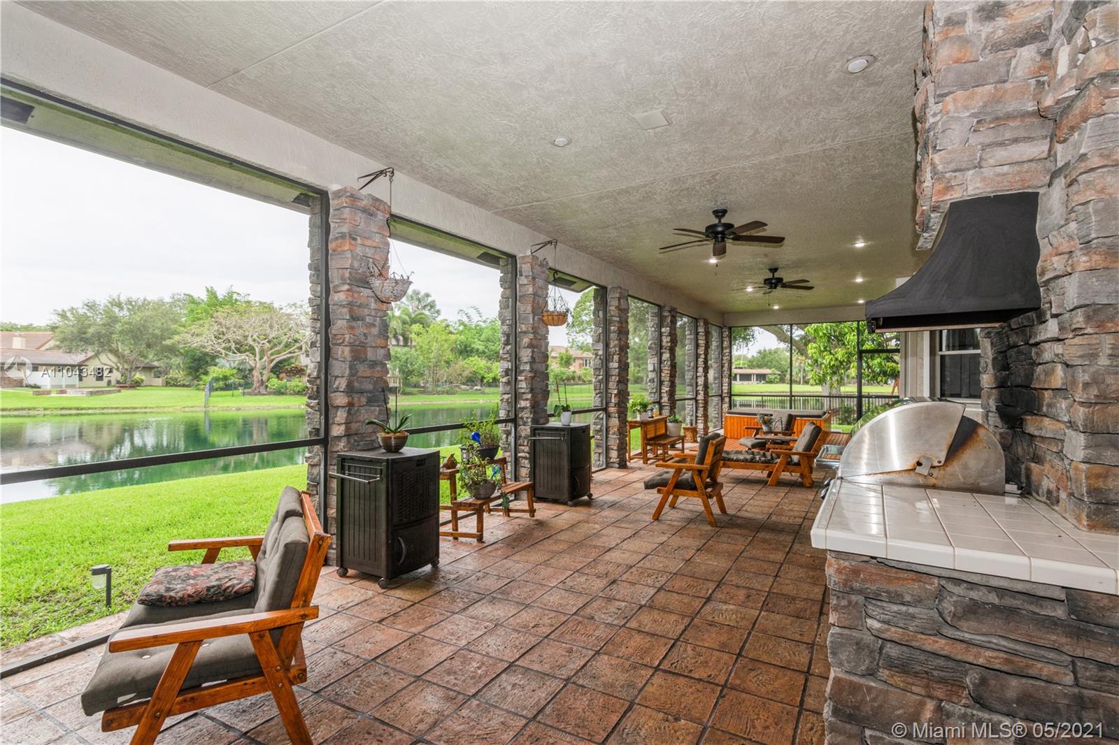 Custom Lakefront home on builders acre in Davie, Whispering Pines Community. 4 bedrooms and 3.5 bathrooms + Loft this home is perfect for entertaining & large gatherings. 3 car garage & enormous circular covered driveway. Double doors lead you into 4160 sq ft of living space featuring expansive living room, stoned fireplace & beamed vaulted ceilings. Entertainers kitchen with built in large breakfast nook, gas cook top, double ovens, and huge island with lots of seating! 3 bedrooms downstairs & Master Suite & loft upstairs. Elevator & beautiful staircase. Master features balcony that overlooks lake, bathroom with shower & Jacuzzi tub, sitting room, breakfast bar, & office. Wet bar downstairs. Screened patio with built in summer kitchen, roll down shutters, auto generator, and newer roof.
