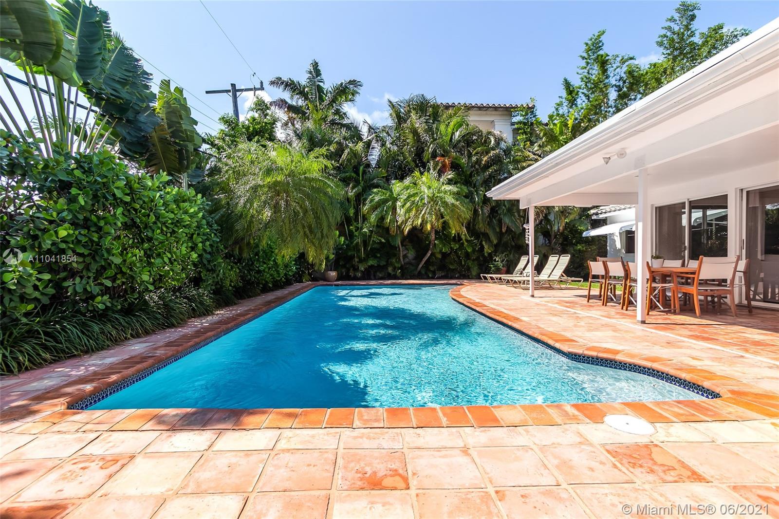 Charming 4 bedroom, 2½ bathrooms. House located on a quiet street with little traffic. Split floor plan with one bedroom en-suite bathroom. Spacious patio area surrounding an over-sized heated pool. Bright, well-maintained and ready to move in. According to Appraisal done in 1987, adjusted sq.ft. is 1939. Key Biscayne Beach Club membership available.