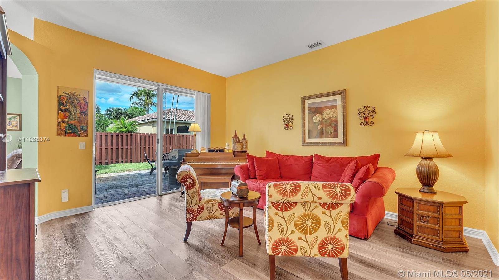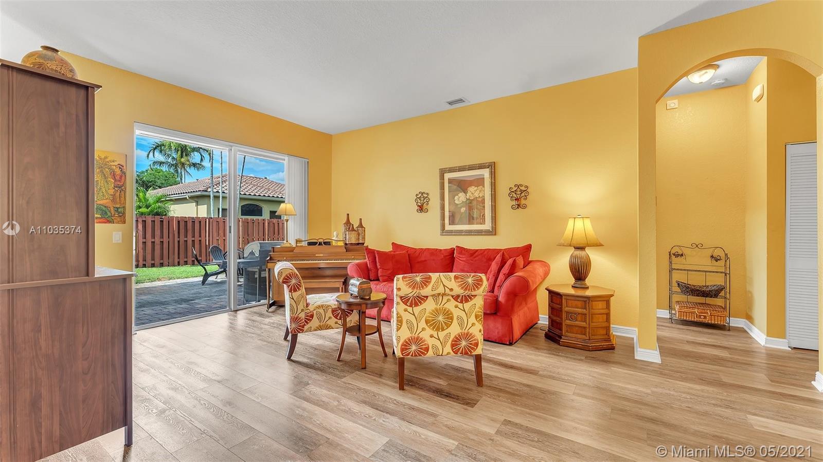 OPEN HOUSE Saturday-May 29, 11-3pm. Fabulous One story home with 3 bedrooms/ 2 baths ready to move in. Kitchen and floors have been updated with spacious family room, living room and dining area. Large backyard for Great entertainment activities! Beautiful Gated Community with Security. HOA Includes Home Alarm Security Monitoring, Common Area Landscaping, Pool, Gym & Clubhouse. **Please note, Taxes DO NOT reflect Homestead Tax Exemption.