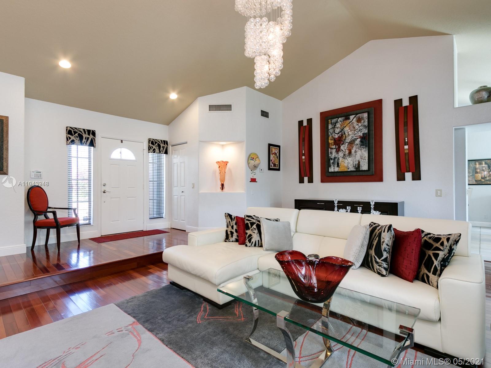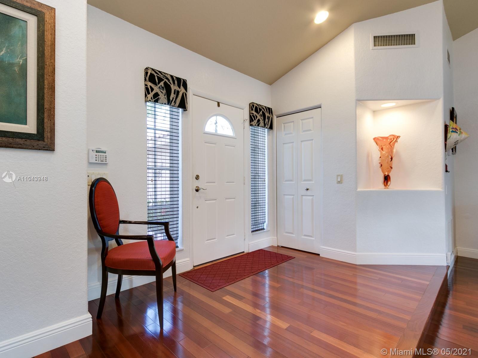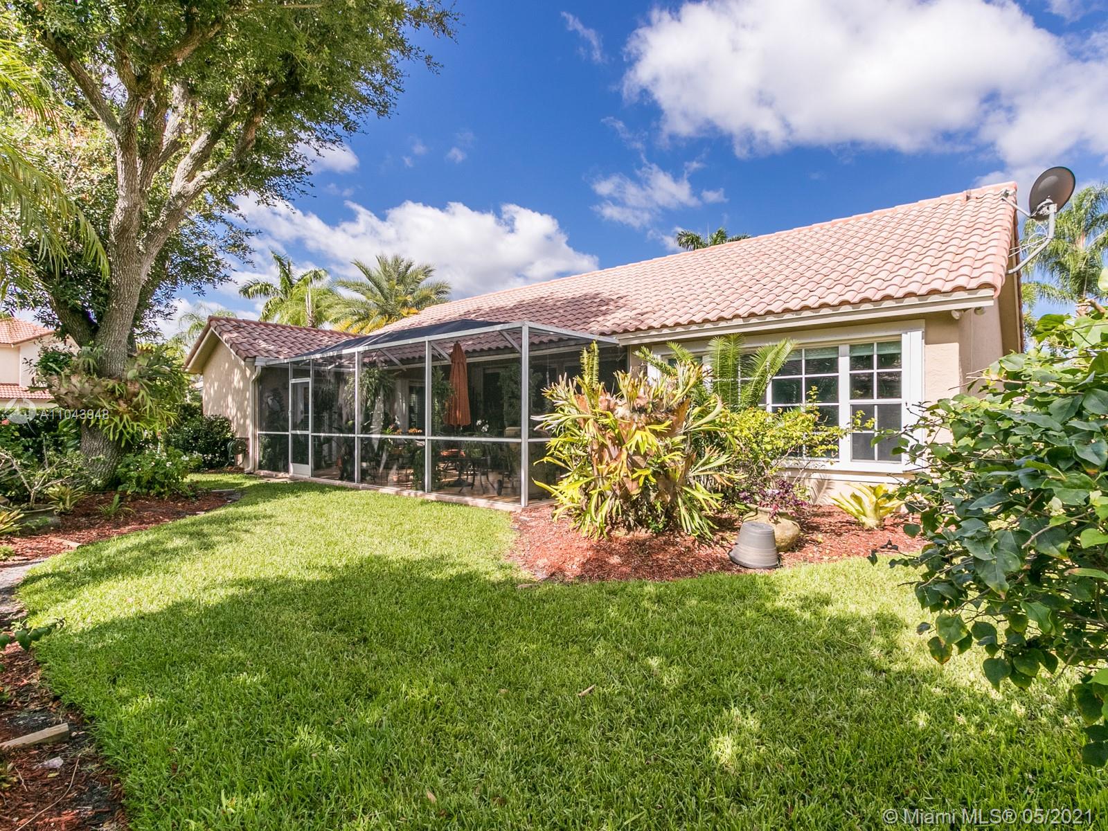 Well maintained 3 bedroom, 2 bath "Bianca" model -stacked bedroom floor plan. Remodeled Masterbathroom Upgraded kitchen cabinets, granite countertops & stainless steel appliances. A/C (2019) Water heater (2016) Roof (2006), According shutter. Hardwood floors throughout step-down Living room, tile in kitchen & family room, carpet in bedrooms. Large extended screened patio, sliding doors that opens completely which is ideal for entertaining. Home nestled in a cul da sac in Laguna Springs I, a gated subdivision with community pool & clubhouse. A-rated Weston schools.