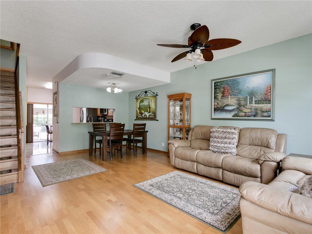 Wow-3 bedroom, 2 1/2 bath corner townhouse in desirable Coral Reef Club. Hardwood floors in living and dining areas. Laminate on steps and upstairs. Tile in kitchen. Renovated kitchen with maple wood cabinets, granite countertops, stainless steel appliances and tile backsplash. Half bath downstairs. All 3 bedrooms upstairs. Renovated master bathroom with shower. Two bedrooms have walk-in closets. Screened patio with private, fenced garden area. Accordion shutters upstairs and metal hurricane panels downstairs. Large pets and trucks allowed. Excellent schools close by. Close to major highways, shopping, and restaurants. Gated community with pool, basketball courts and children's play area. Low hoa fee includes roof, lawn, exterior, and common areas. This townhouse is in move-in condition.