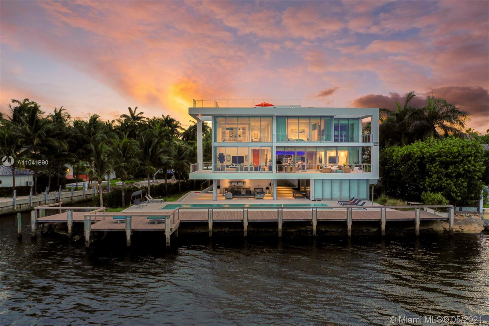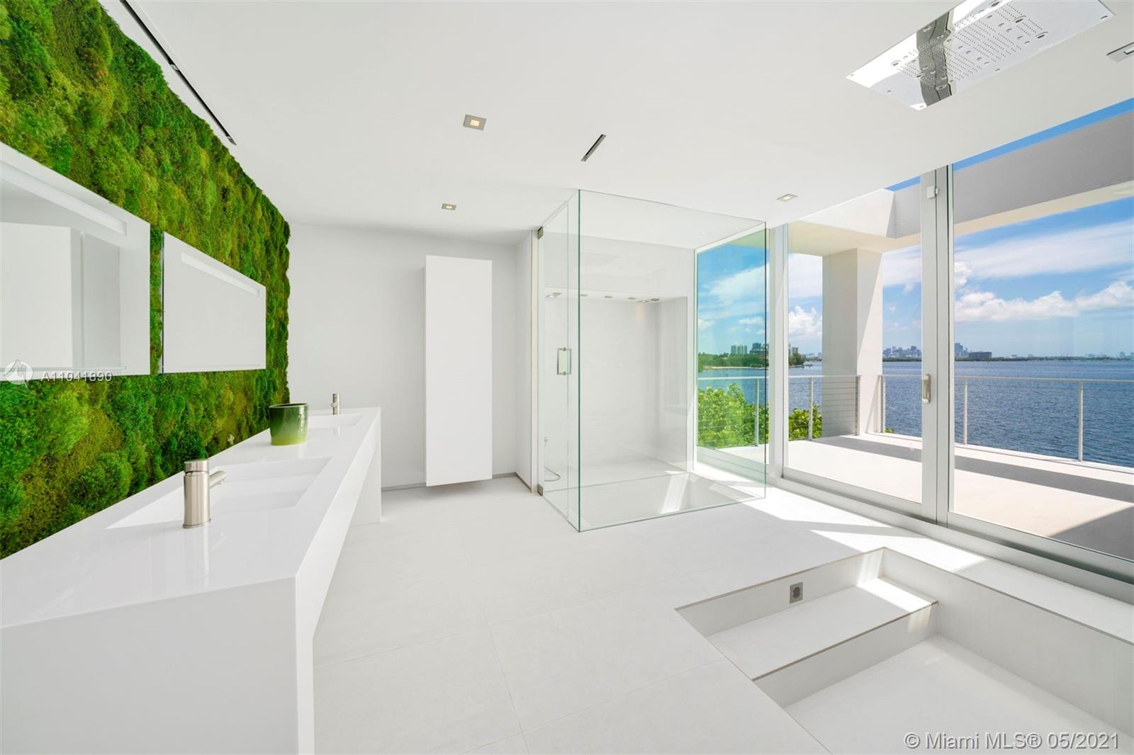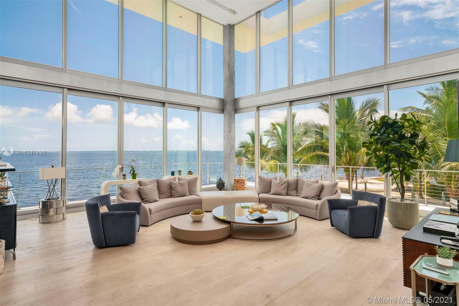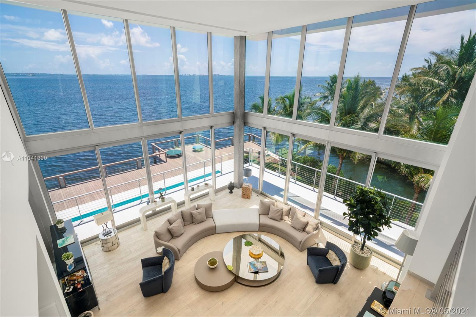 Magnificent 18,837 Sq. Ft. residence with 5 bedrooms, 5 full and 3.5 half baths, offering captivating views with 350 Ft of waterfront. Features include floor-to-ceiling impact windows and doors, elevator, media room, fitness room, and smart home technology throughout. Open-plan living spaces showcase exceptional design including a top-of-the-line Gaggeneau chef's kitchen. The main suite situated in a private wing is the ultimate hideaway, with a balcony and sleek bathroom with a glass shower and steam. A studio with a loft and wet bar provides an additional sanctuary. Outdoors, enjoy 2 pools including one on the rooftop with a viewing deck, alfresco dining area, and a 5-car garage. An architectural masterpiece with extraordinary views and amenities for an unmatched living experience.