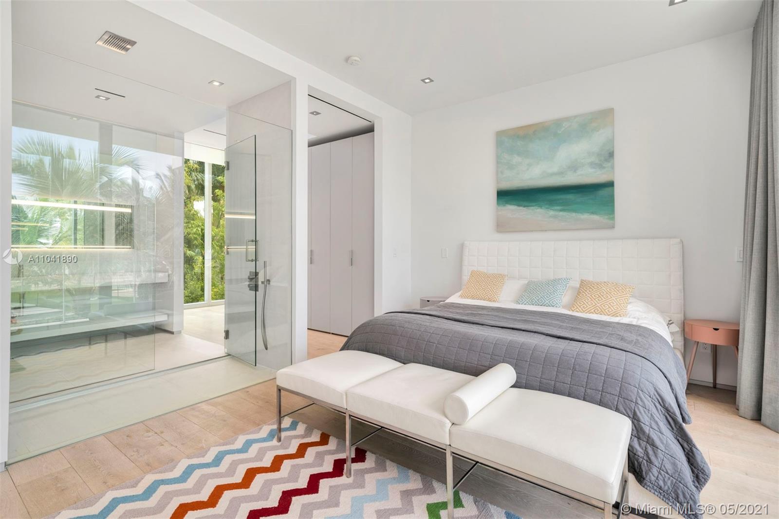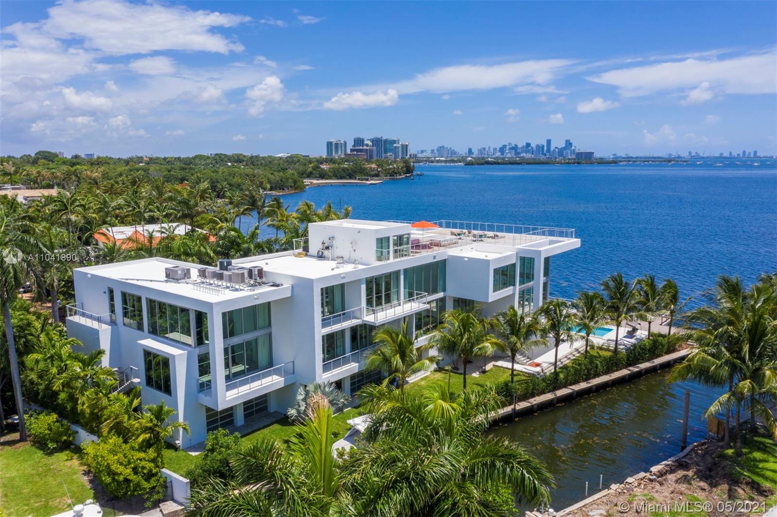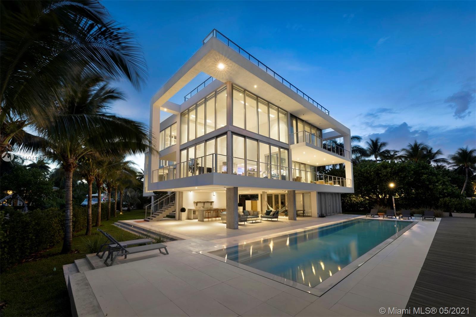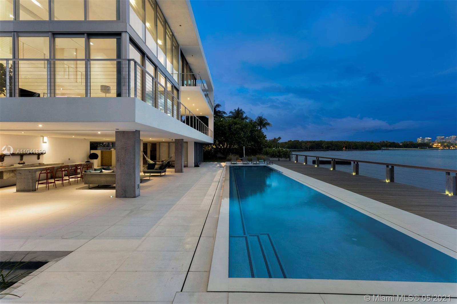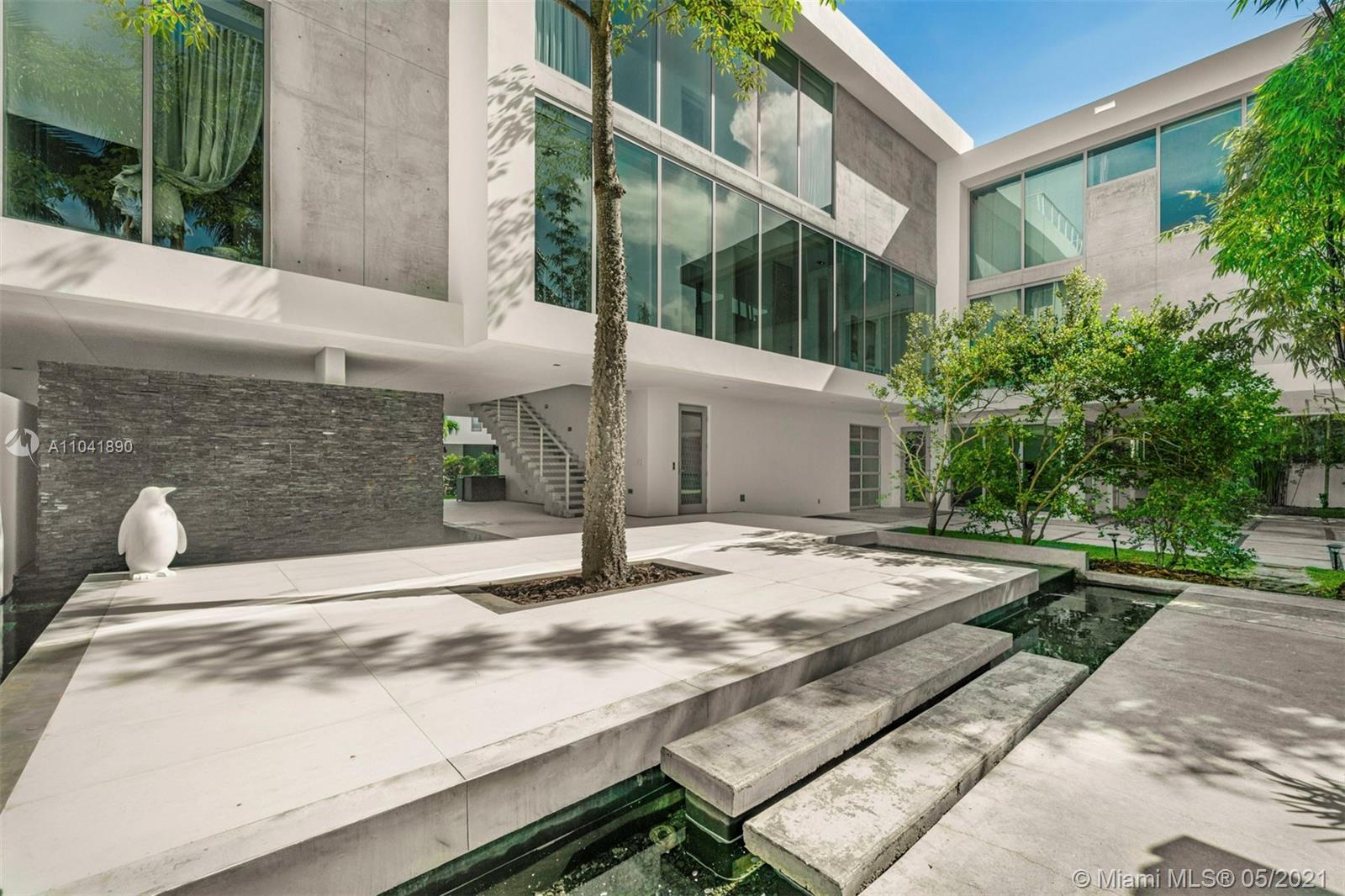 Magnificent 18,837 Sq. Ft. residence with 5 bedrooms, 5 full and 3.5 half baths, offering captivating views with 350 Ft of waterfront. Features include floor-to-ceiling impact windows and doors, elevator, media room, fitness room, and smart home technology throughout. Open-plan living spaces showcase exceptional design including a top-of-the-line Gaggeneau chef's kitchen. The main suite situated in a private wing is the ultimate hideaway, with a balcony and sleek bathroom with a glass shower and steam. A studio with a loft and wet bar provides an additional sanctuary. Outdoors, enjoy 2 pools including one on the rooftop with a viewing deck, alfresco dining area, and a 5-car garage. An architectural masterpiece with extraordinary views and amenities for an unmatched living experience.