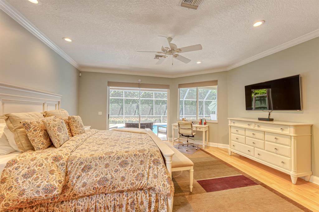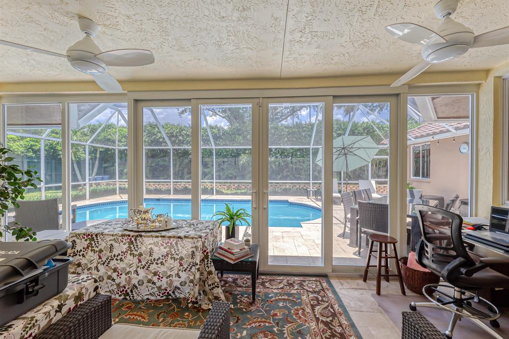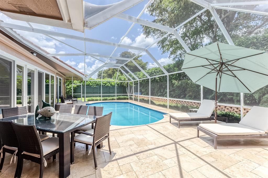 Rare Opportunity! Spectacular 5 Bedroom/4 Bath Home. Located in Central Boca Raton. 2 Car Garage with Tile Flooring. Circular Drive with Pavers. Enclosed Heated Saltwater Pool Redone 2019 with Travertine Pavers. Pool Pump 2020. Fenced in Private Backyard. All Bedrooms offers Bamboo Flooring. Plantation Shutters. This Home is Built for Entertaining, Formal Dining, Living Room with Electric Fireplace. In Addition, it offers an Informal Dining with Den. Kitchen has Granite Countertops and Stainless-Steel Appliances, Pantry with Pull-outs. Inside Laundry Room was just Redone with Quartz Counter Tops and New Front Load Appliances and Storage Cabinets. Crown Molding Throughout Entire Home. All Around Alarm and Security System Camera inside and Out. Part of the Patio has been Enclosed with