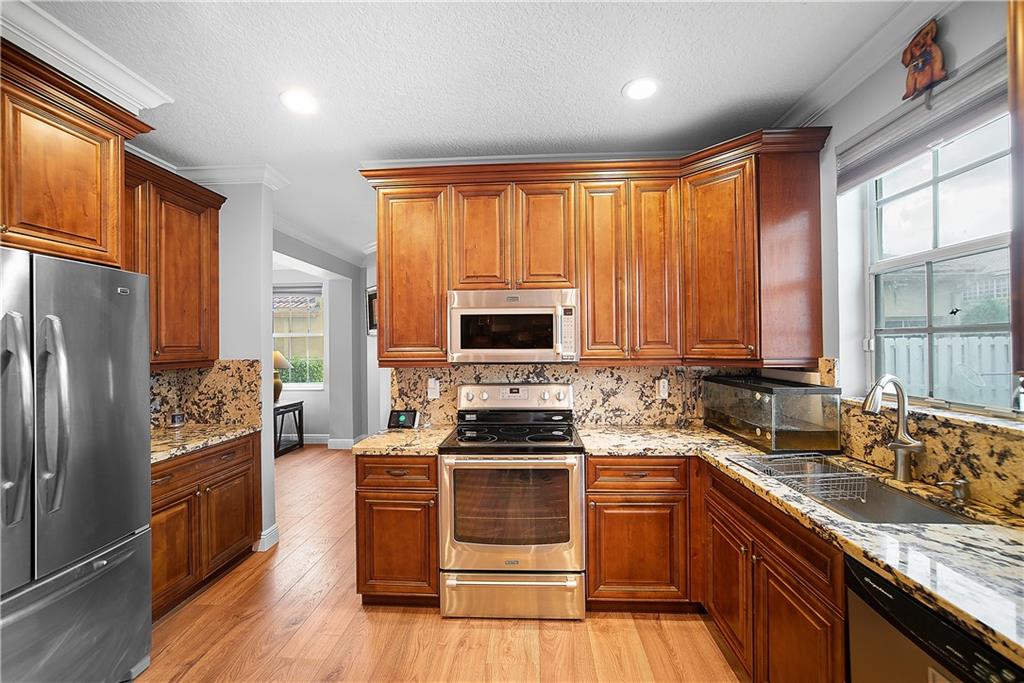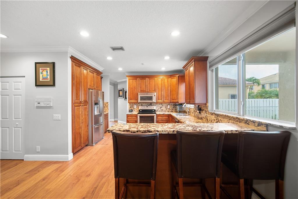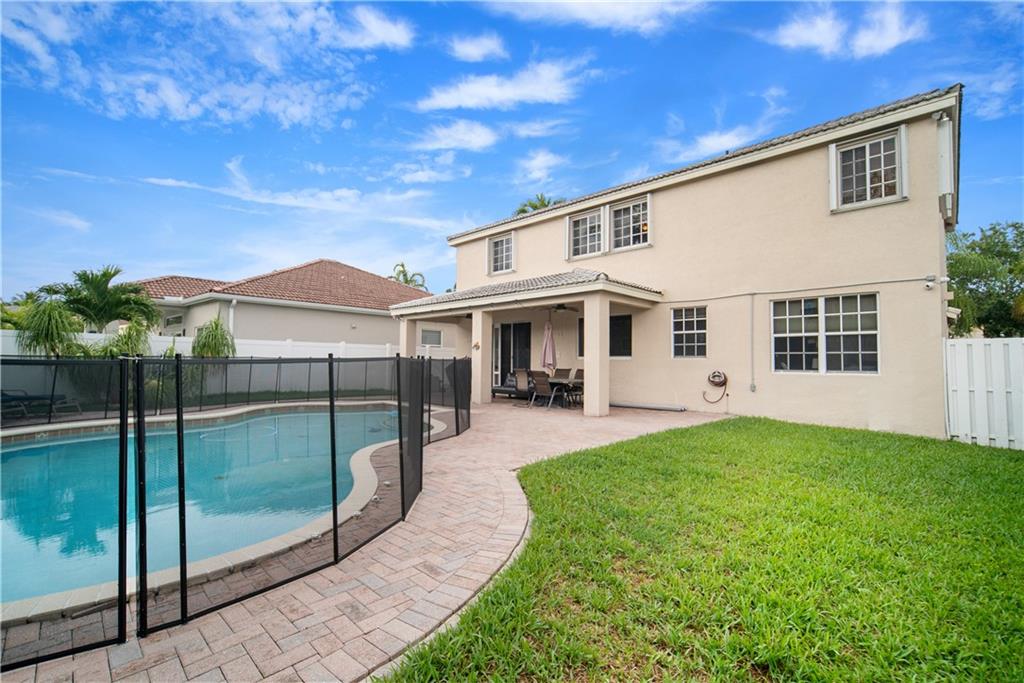 This Beautiful Mediterranean Style Home Features a Spacious Backyard with a Large Lagoon Shaped Pool, Tropical Landscaping, Fully Fenced Yard, Covered Lanai, Pavers and Grass Area Perfect for Your Family & Pets! Light & Bright Remodeled Kitchen Includes Granite Countertops and Backsplash, Stainless Steel Appliances, Lots of Cabinetry Space. Master Bedroom Has Two Huge Walk-in Closet & An Attached Den Used as an Office. First Floor 5th Bedroom Is Perfect for In-Laws & Guests. The Meadows is a beautiful 24 hour gated community in Weston, FL. It is located off Glades Parkway, directly across from Gator Run Elementary School. The Community is Easily Accessible to Grocery Stores, Banks, Hair Salons, Weston's All A-Rated Schools and all Other Entertainment Near I-75 and Interstate 595.