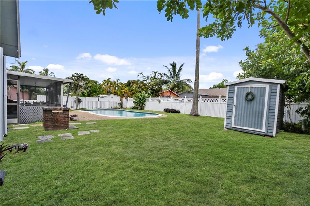 Beautifully maintained and loved home nestled in Sunrise, FL. 3 bed, 2 bath with converted garage and volume ceilings in the open living area. Updated kitchen with granite countertops brand new A/C unit, washer/dryer, dishwasher, and appliances. Expanded stamp concrete 4 car driveway, updated bathrooms, freshly painted and in A+ school district. This lovely pool home has an expansive yard and a spacious screened-in porch. Store your toys in the fully functioning shed and grill out on the bulit in BBQ. Cozy and well maintained. This home has all the charm you could ask for and has been loved by the same owner for over 26 years.