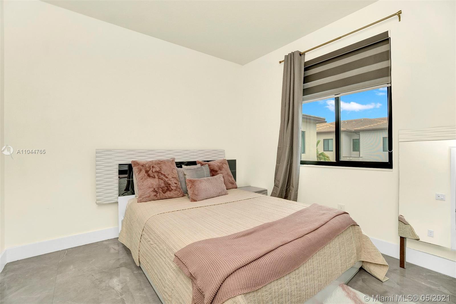 Modern, open concept layout townhome in the newest community in Doral. This newly built home has beautiful porcelain floors throughout and wood on stairs. The stair railings have been upgraded to a sleek glass design. Window coverings are all professionally done with zebra blinds. One car garage permits the parking of one inside and one car outside. Impeccable home and no detail has been spared. This home is close to all of the restaurants and shops that Downtown Doral has to offer. New state of the art clubhouse is a must to see. Contact me for showings.