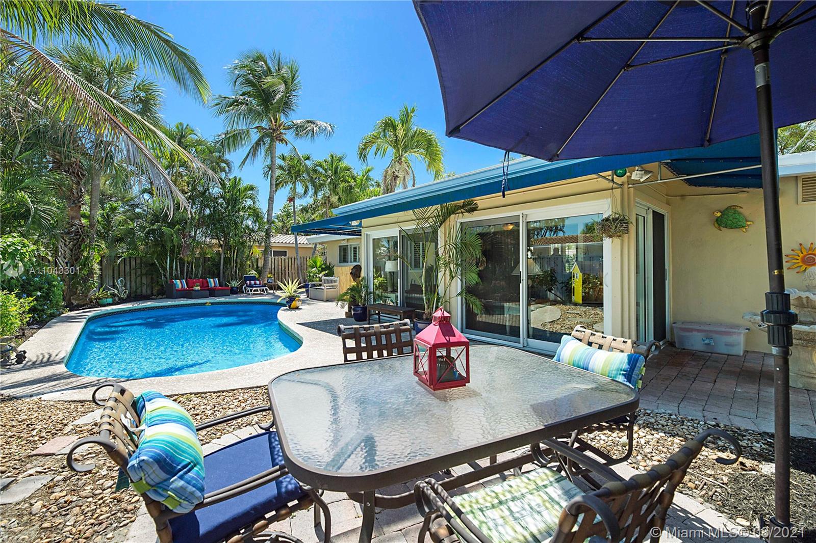 This impeccable 2/2 pool home w/ carport in Imperial Point is situated on a large tropical landscaped lot w/ over 7,000sqft. The half circular paver driveway leads you to the covered carport & front porch. Once you enter through the front doors your immediately greeted by the natural light & captivating views of the pool. This open concept floor plan is perfect for entertaining. The kitchen has been tastefully upgraded w/ real wood cabinetry w/ soft close & pull outs for pantry/spice rack and garbage. Large bedrooms. Updated bathrooms. Master suite features walk-in closet. Plantation Shutters. Impact windows/sliders. Crown molding. New A/C, WH. Interior laundry room w/ storage. Florida room lined w/ sliders lead out to the tranquil pool area w/ outdoor speakers, built-in shed & much more!