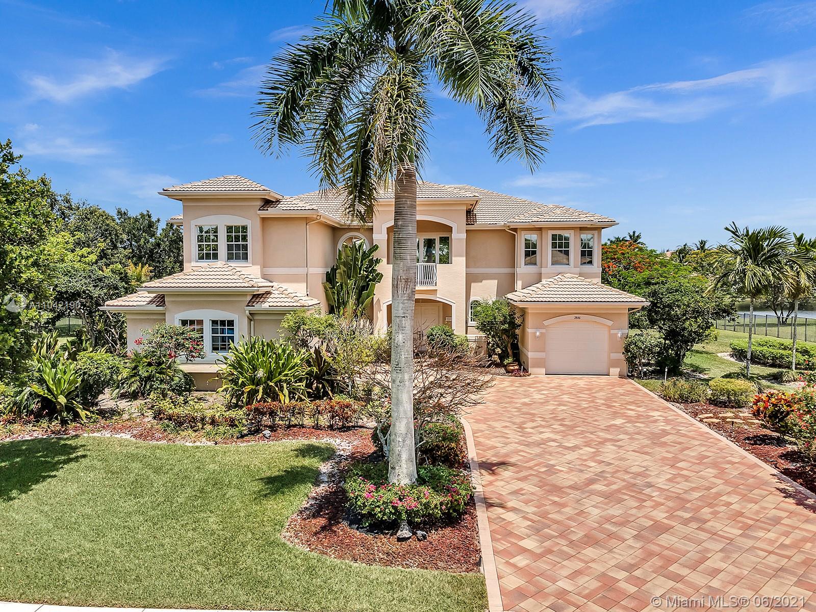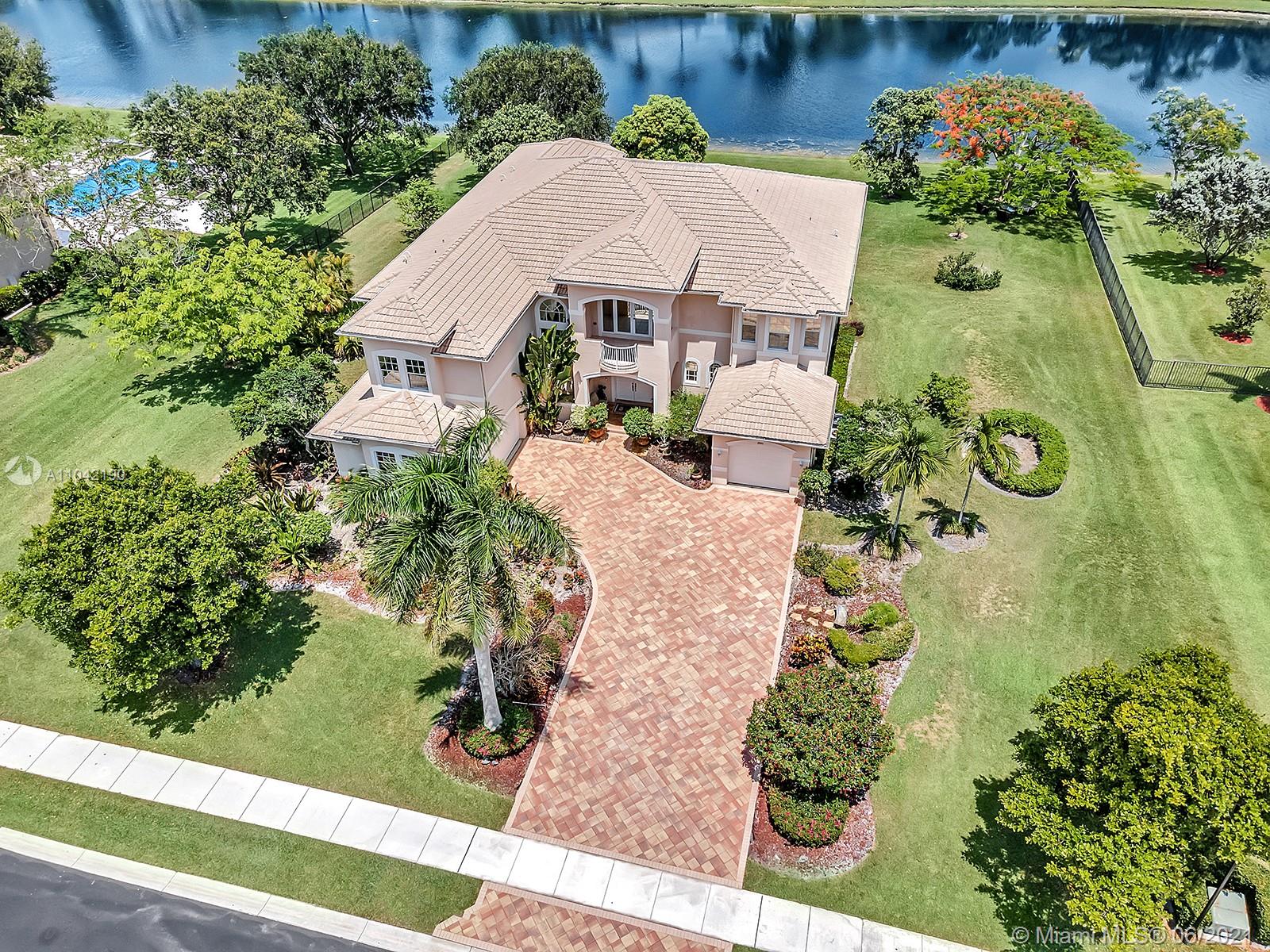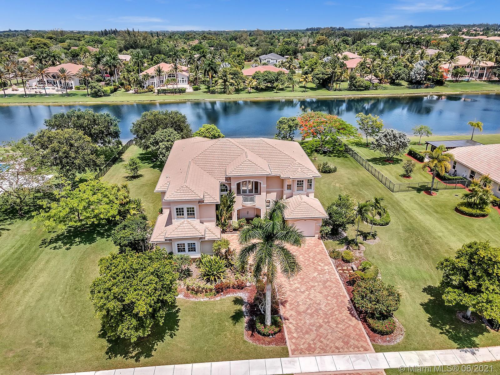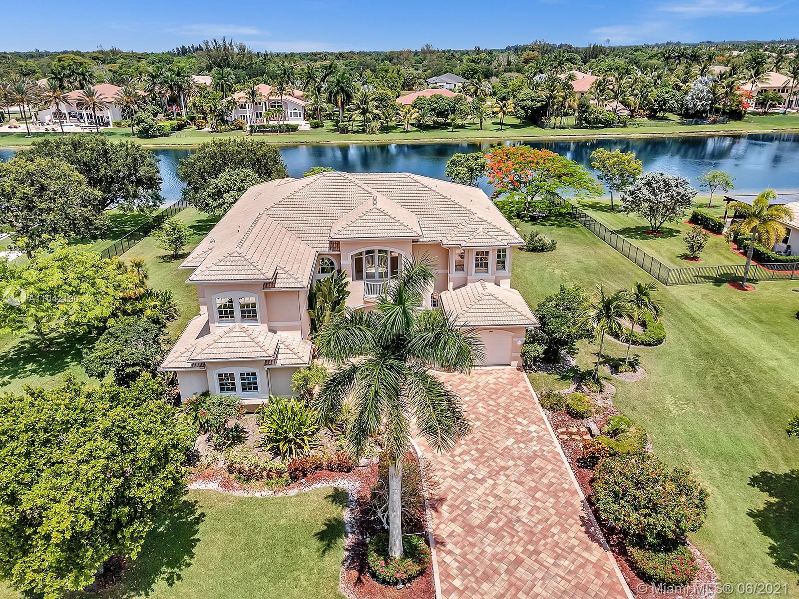 Live on a premium lot in guard-gated Long Lake Ranches West! The unspoiled acre yard on 175' of lakefront is just waiting for your dream pool, ball or tennis court. Traditional Mediterranean extended Van Gogh model. This home has a large island kitchen with both a butler and walk-in pantry, a Rain Soft water system, and reverse osmosis system. One bedroom plus an office downstairs. Upstairs off the rotunda is a Juliet balcony. The Main bedroom with a large sitting area is upstairs, with walk-in dual closets and a massive master bath with a whirlpool tub. Three other bedrooms, bathrooms and a loft with a large balcony are also upstairs. The living room has a wet bar for entertaining. The community has a club house with a gym, tot lot, tennis and basketball courts. Long close preferred
