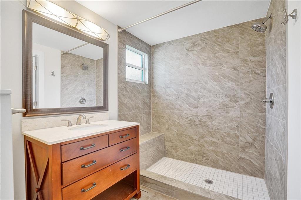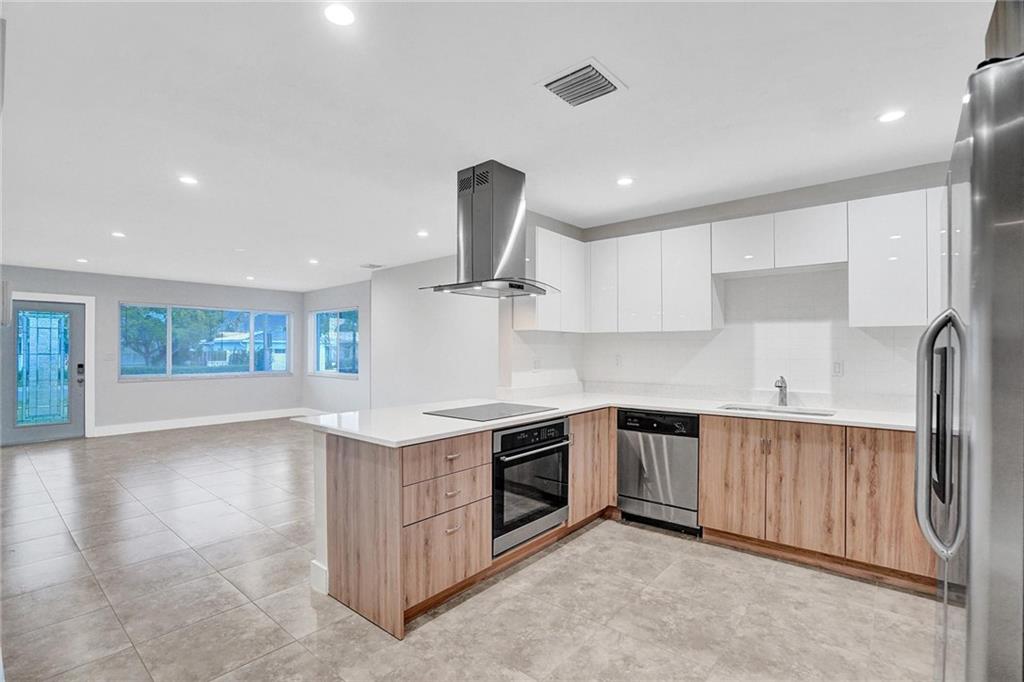 Totally remodeled Poinsettia Heights home. New A/C, New Bathrooms, New European style Kitchen, New Quartz Counters, New Appliances including Washer and Dryer, Induction Range, New Drywall, New Doors, New Hurricane Impact Windows and Doors, Living Room, Dining Room, Florida Room, Covered Back Porch. Huge fenced back yard. Lowest Priced 3/3 in Poinsettia Heights. Easy to see.