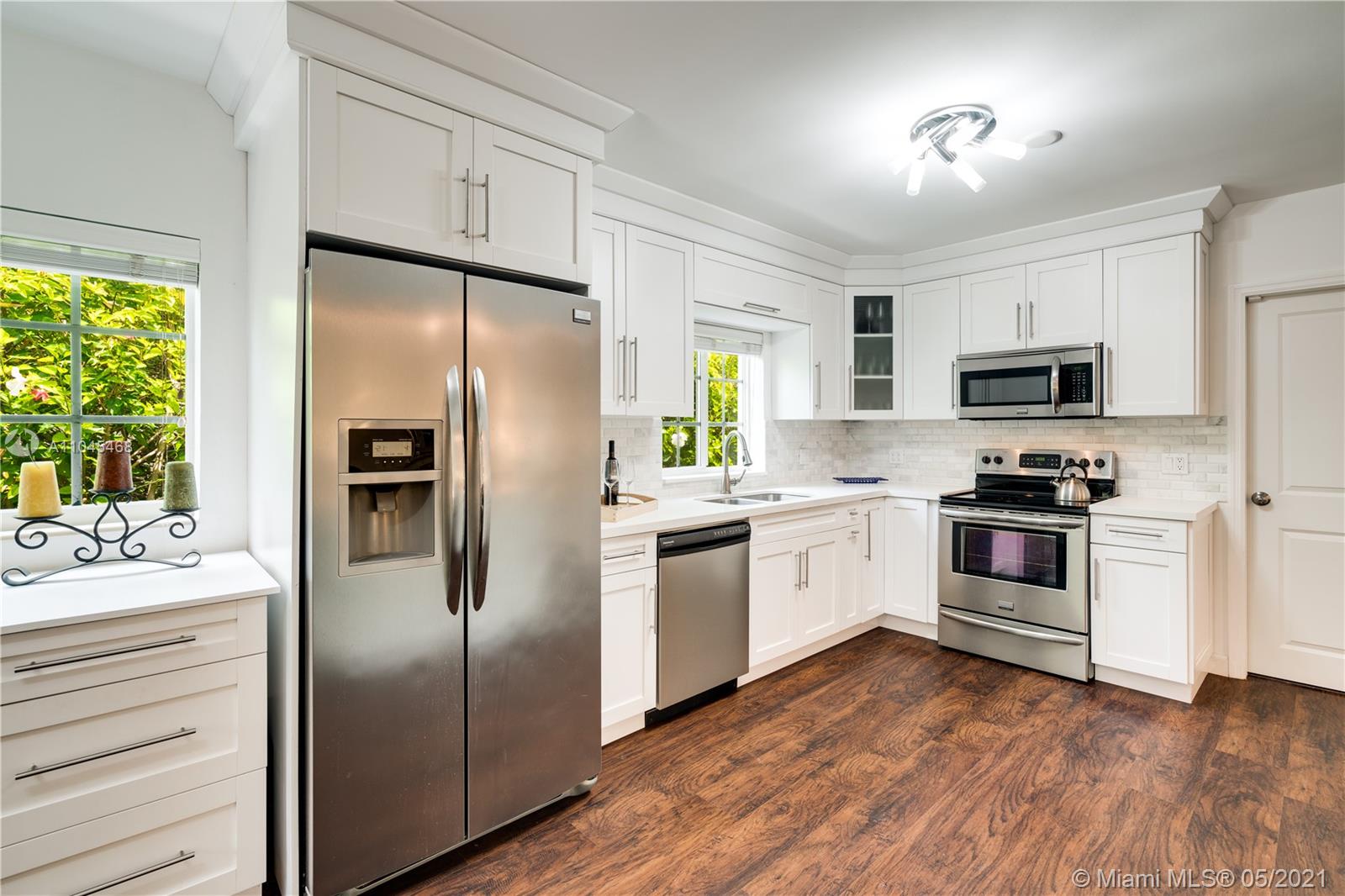 Enchanting curb appeal greets you as you arrive at this charming Coral Gables home on the quietest tucked away street of Costado. 2034 sf per seller. The darling porch framed w/colorful flowering plants is like a welcoming smile. Impact glass & doors gives you peace of mind as you step inside. The sizable & striking kitchen has been attractively updated w/quartz countertops & white cabinetry. Clearly designed to be the star of the show, the kitchen is open to the living areas offering true, usable living space. In keeping with the rest of the home, the patio is low-maintenance while packing a punch-both for its potential & easy living style. Spacious 4 bedrooms, newer a/c, new water heater, new exterior lighting/wiring & new brick driveway make this home very appealing. A Very Special Home